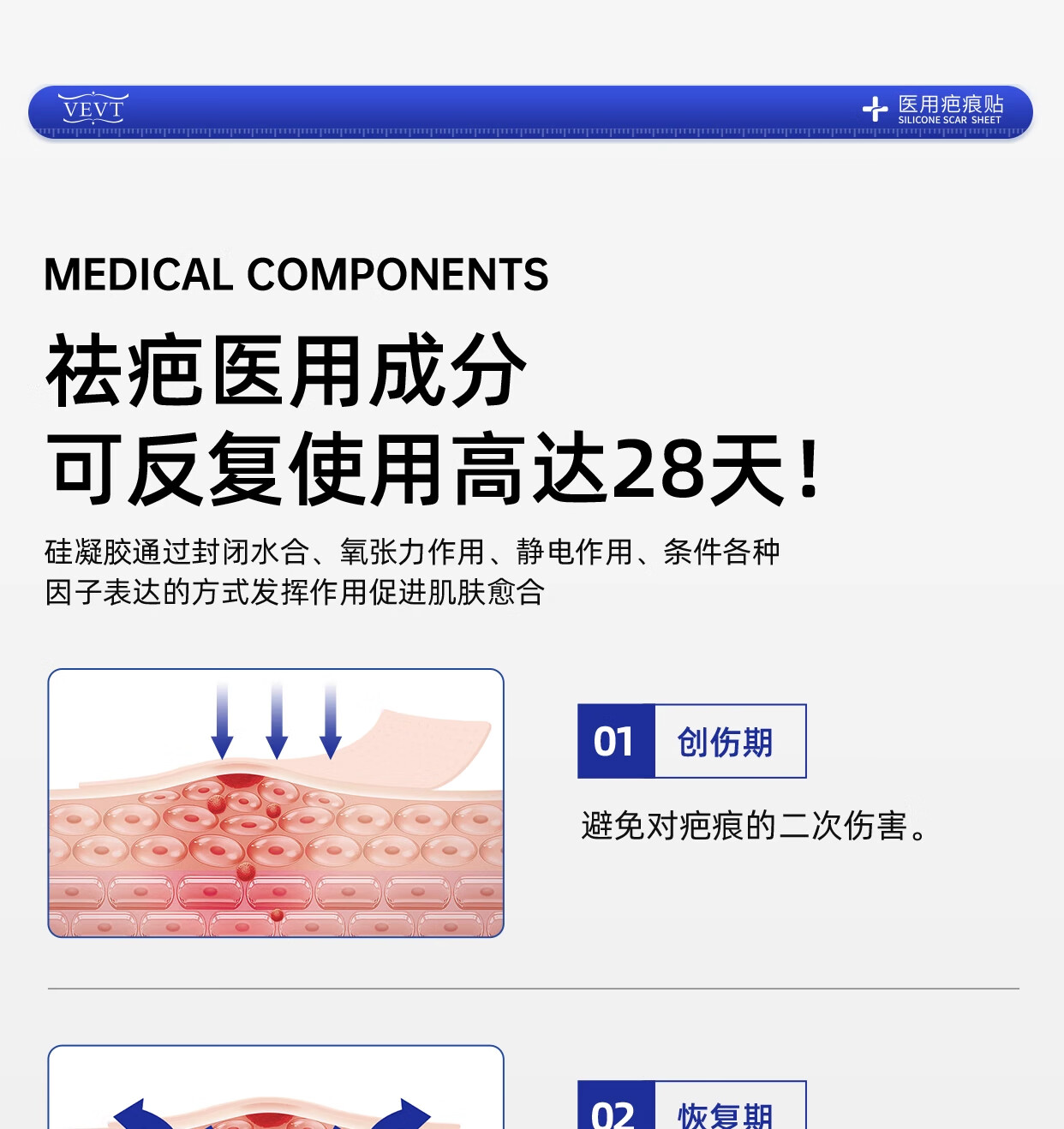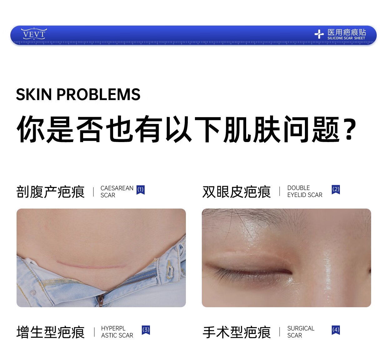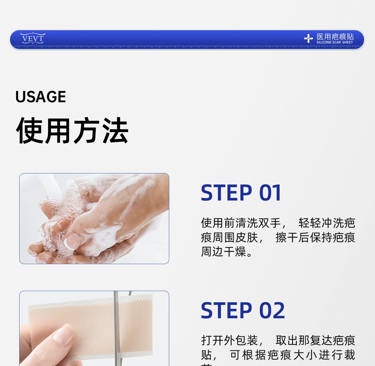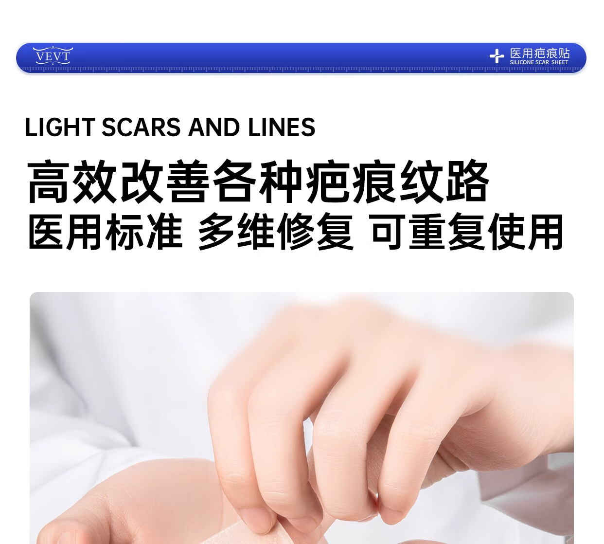 VEVT疤痕贴VVT硅酮贴EVT小蓝板剖腹产疤痕贴硅酮改善疤痕 一盒装(新生疤痕)