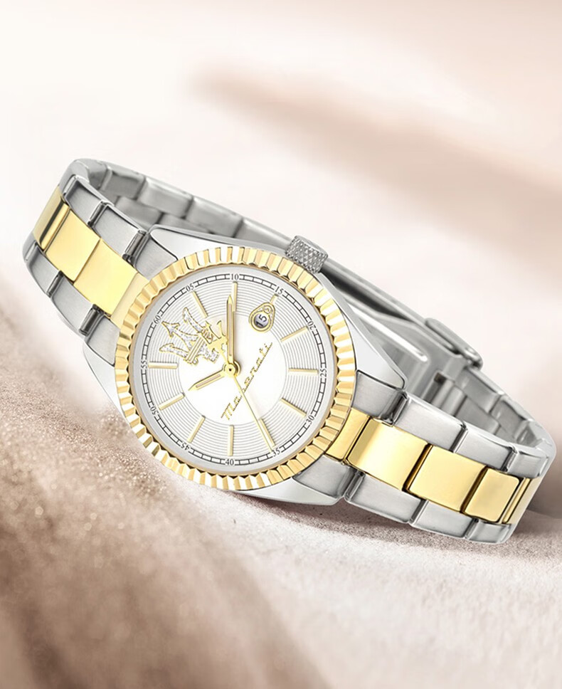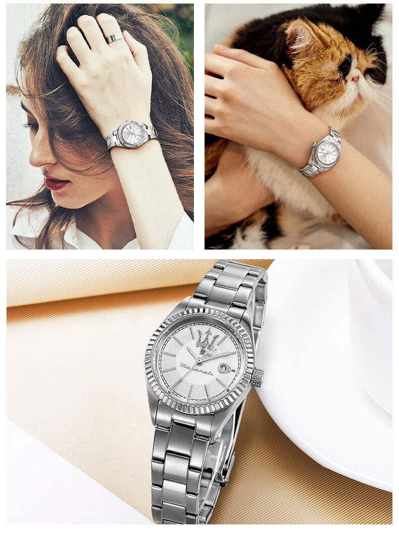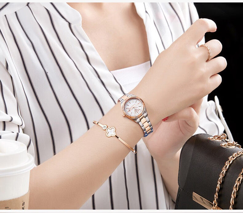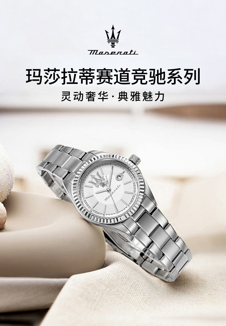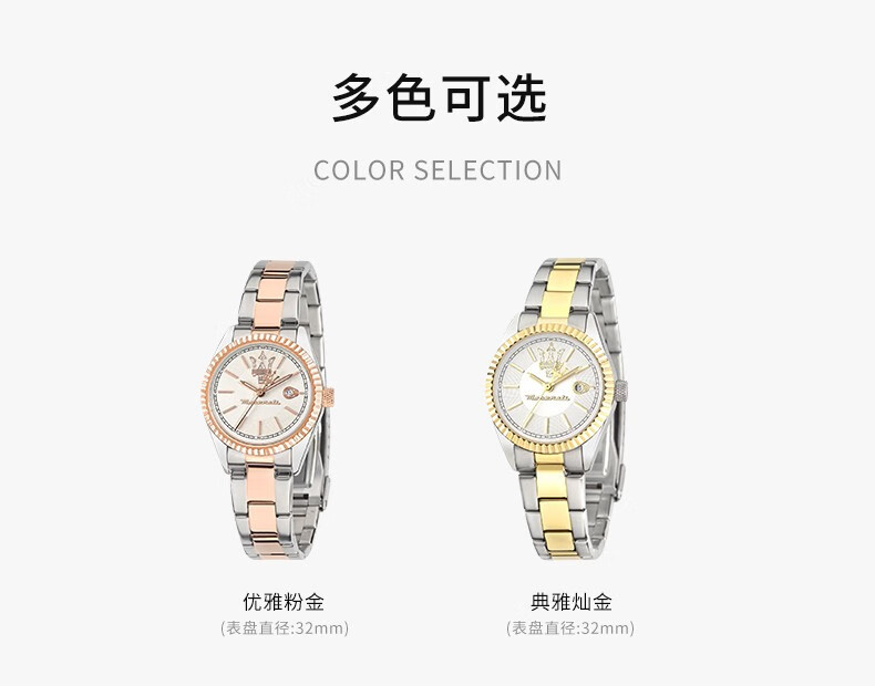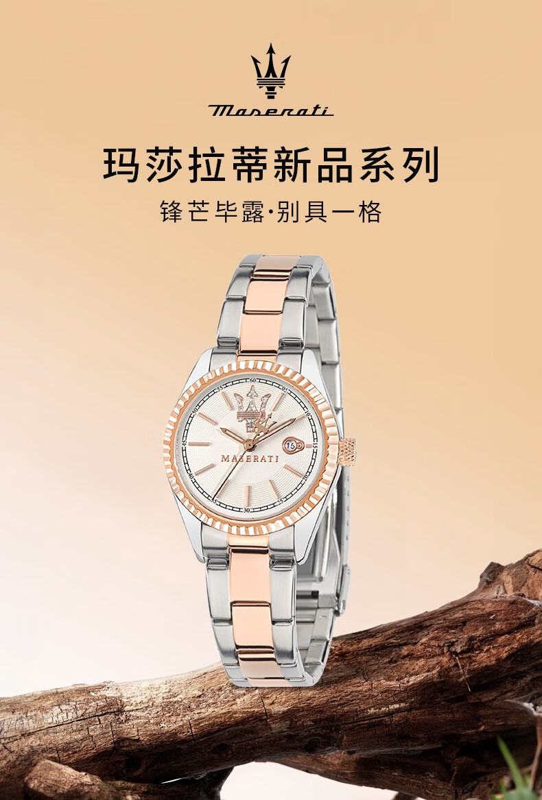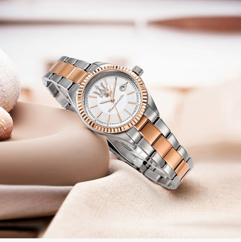 玛莎拉蒂满天星女表轻奢镶钻小巧简约气质名牌石英手表情人节送女生礼物 优雅粉金-R8853100504