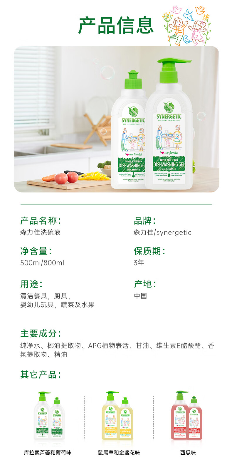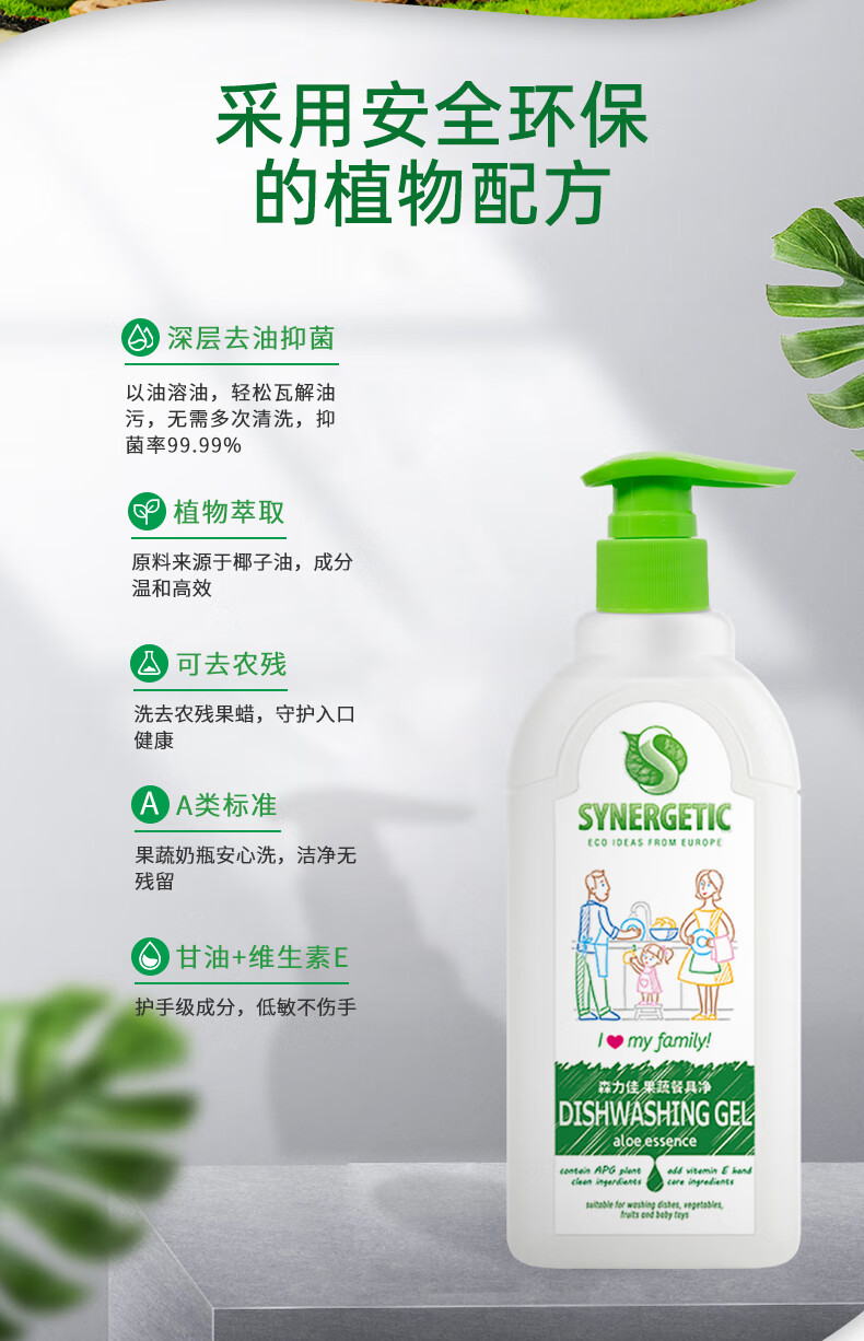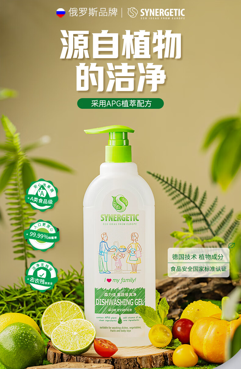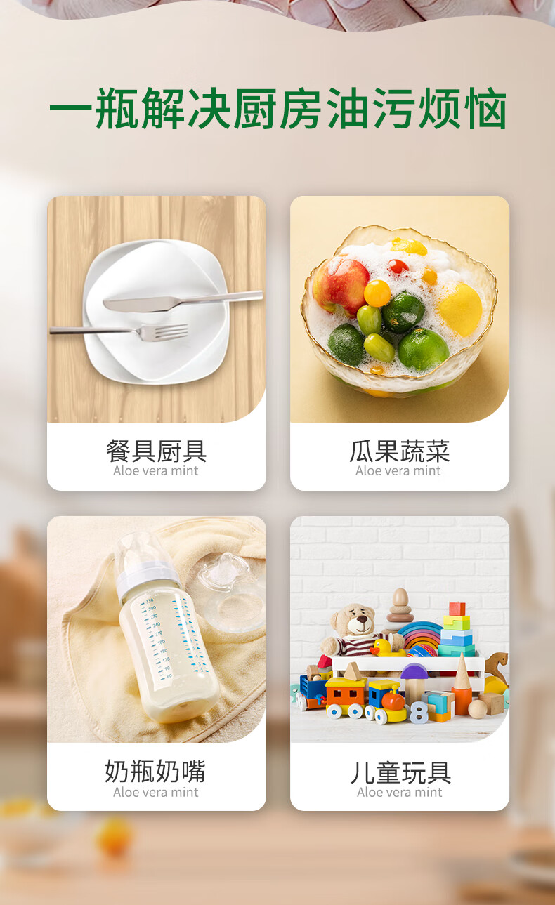森力佳洗洁精食品级洗涤剂果蔬清洗婴幼儿奶瓶清洁洗碗深层去油污不伤手 芦荟与薄荷500ml