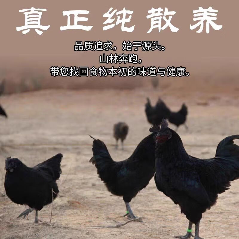 聚天然乌鸡农场散养乌鸡山林散养乌鸡溜达鸡乌鸡送人参七彩菌汤包 乌鸡4只(8斤-9斤)送人参2根+送七彩菌汤包2袋