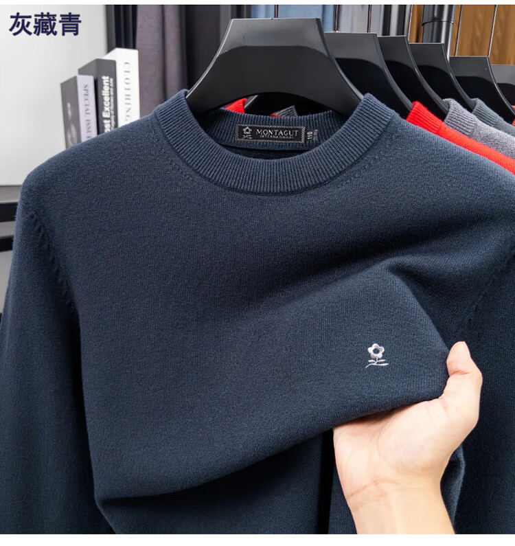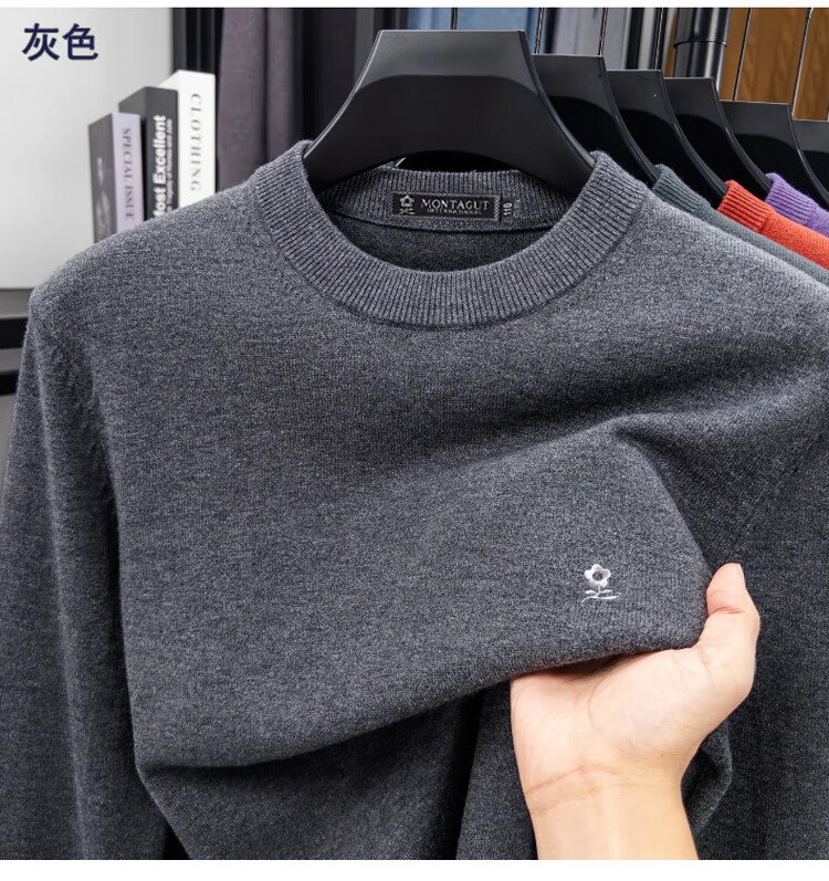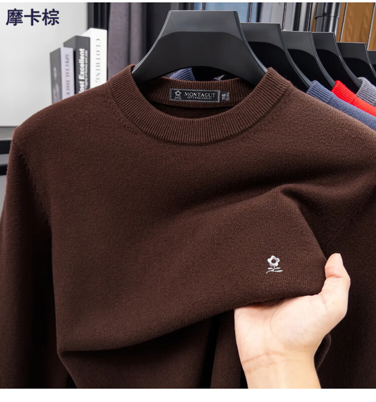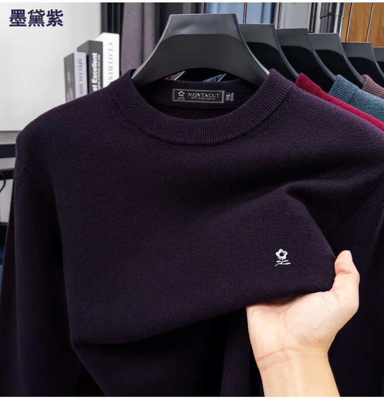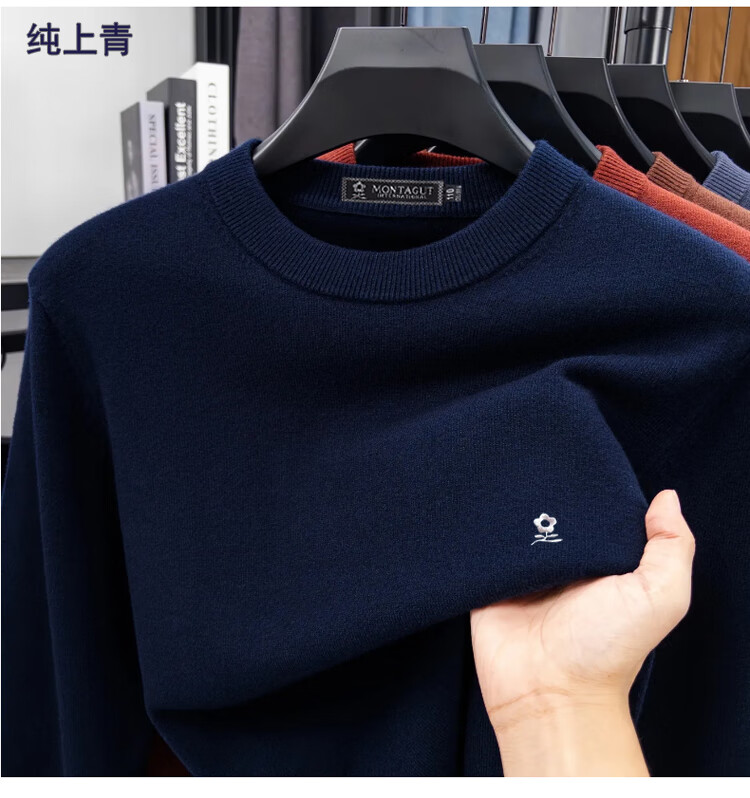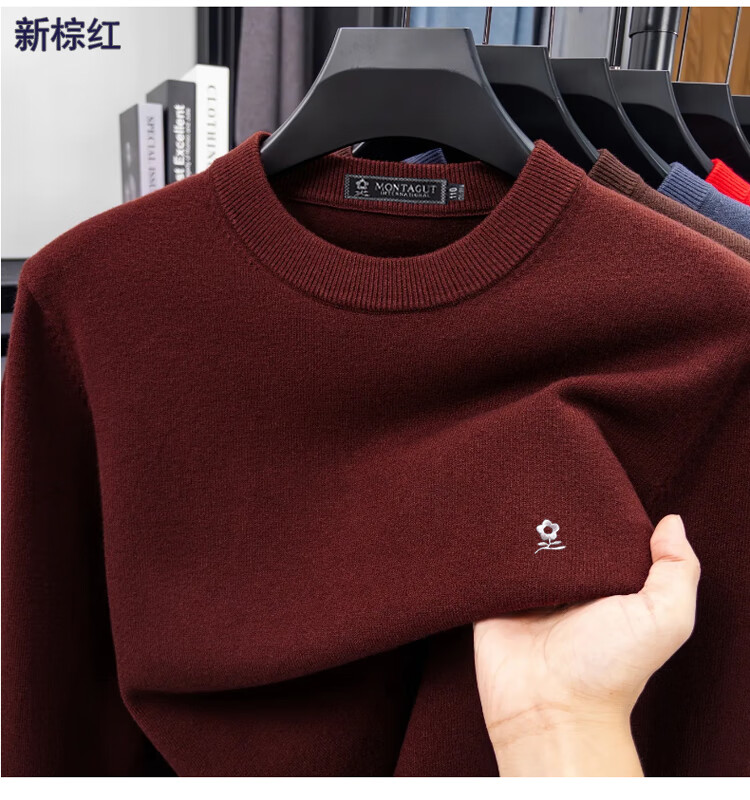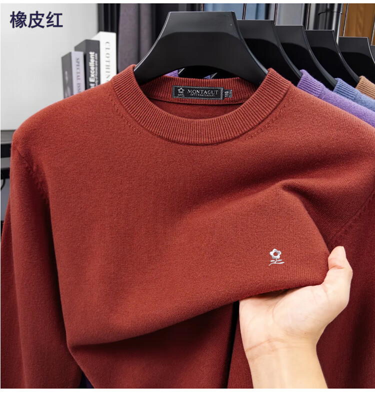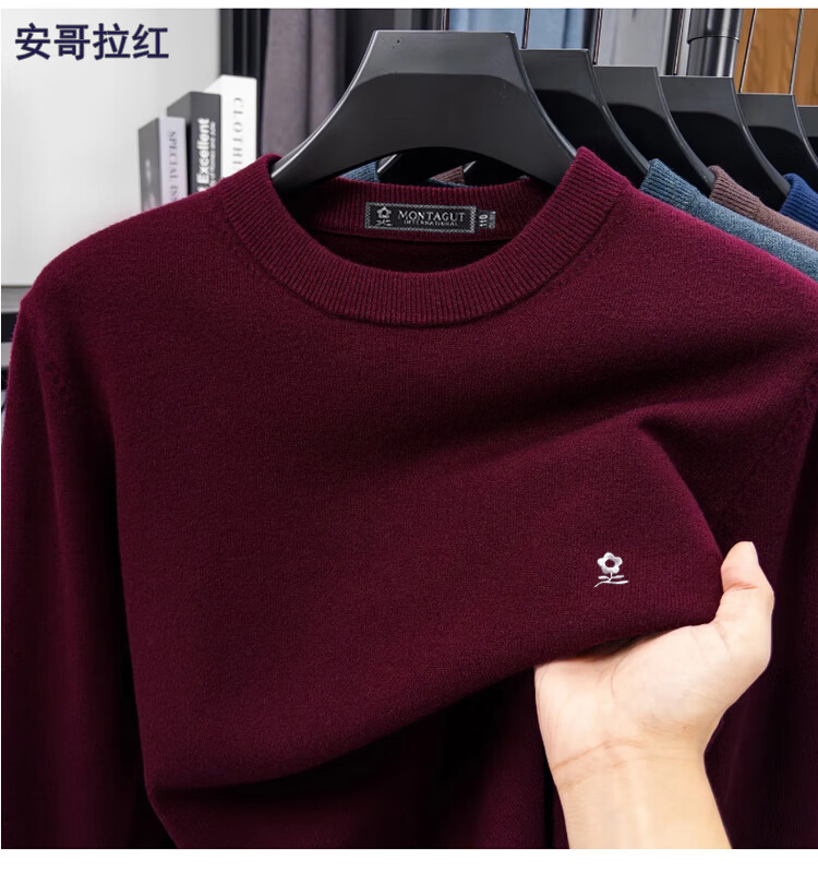 梦特娇(MONTAGUT)男士羊毛衫秋冬季毛衣青中年修身打底衫圆领厚款羊绒衫 中国红 4XL 190 【建议180-200斤】