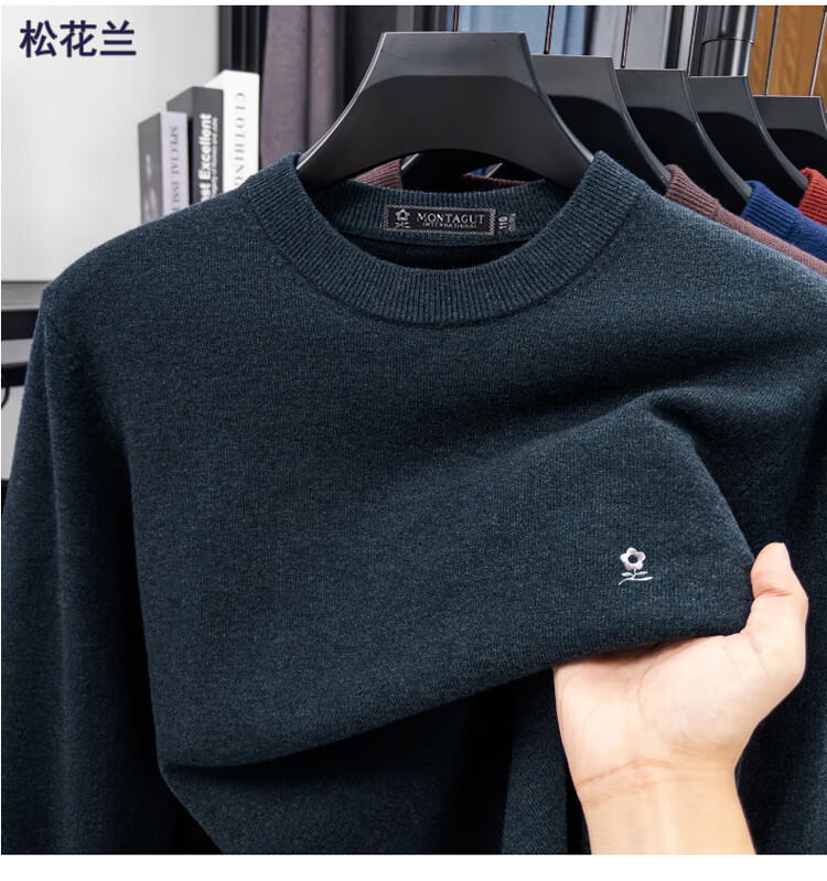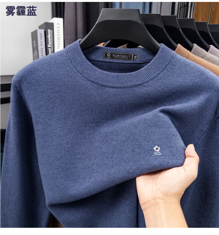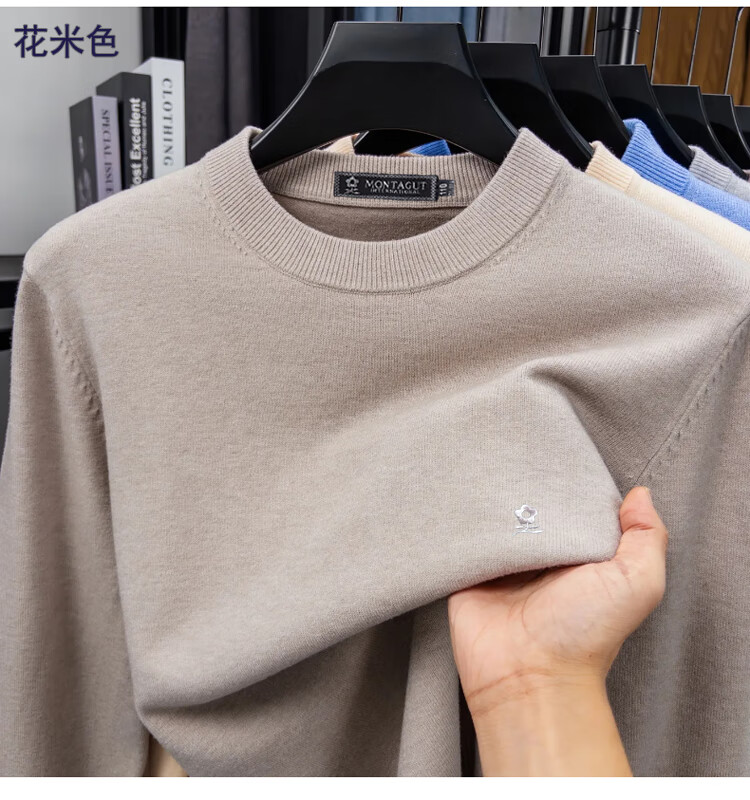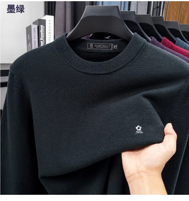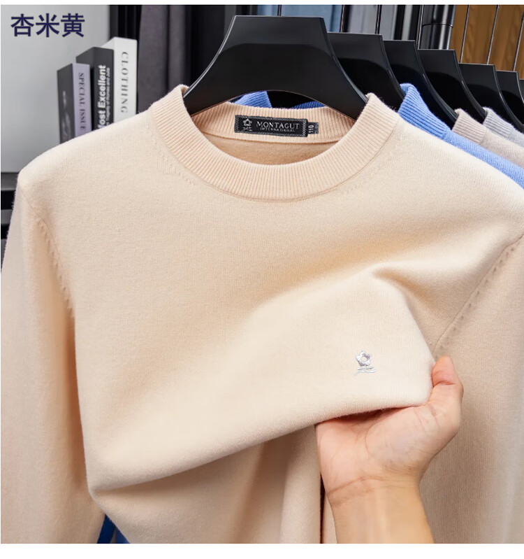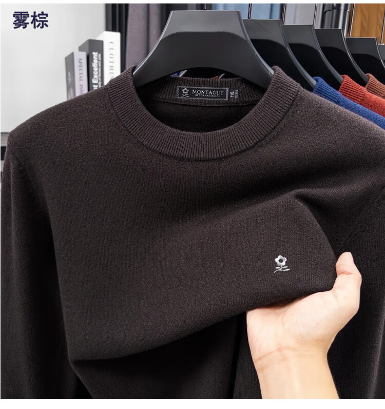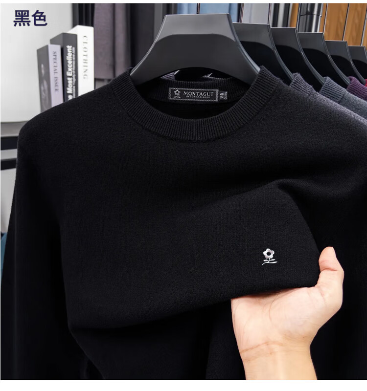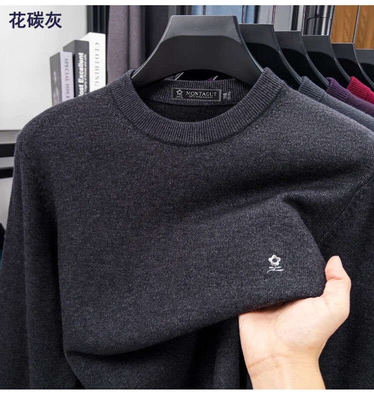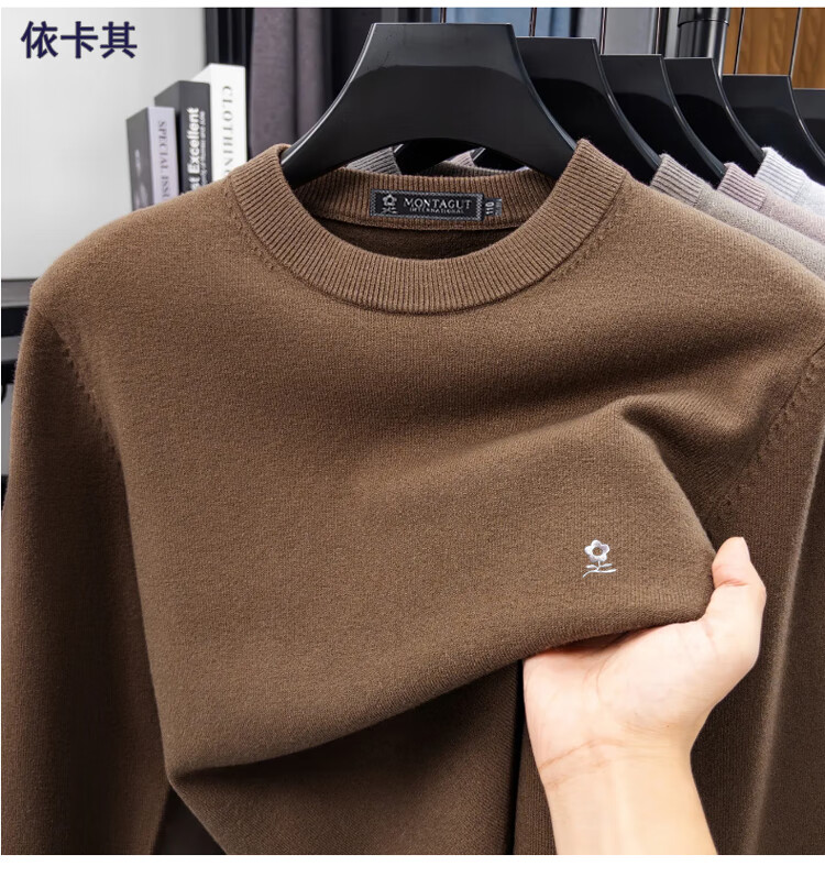 梦特娇(MONTAGUT)男士羊毛衫秋冬季毛衣青中年修身打底衫圆领厚款羊绒衫 中国红 4XL 190 【建议180-200斤】