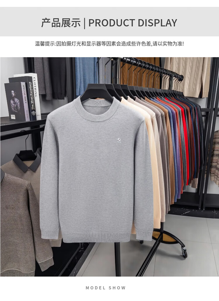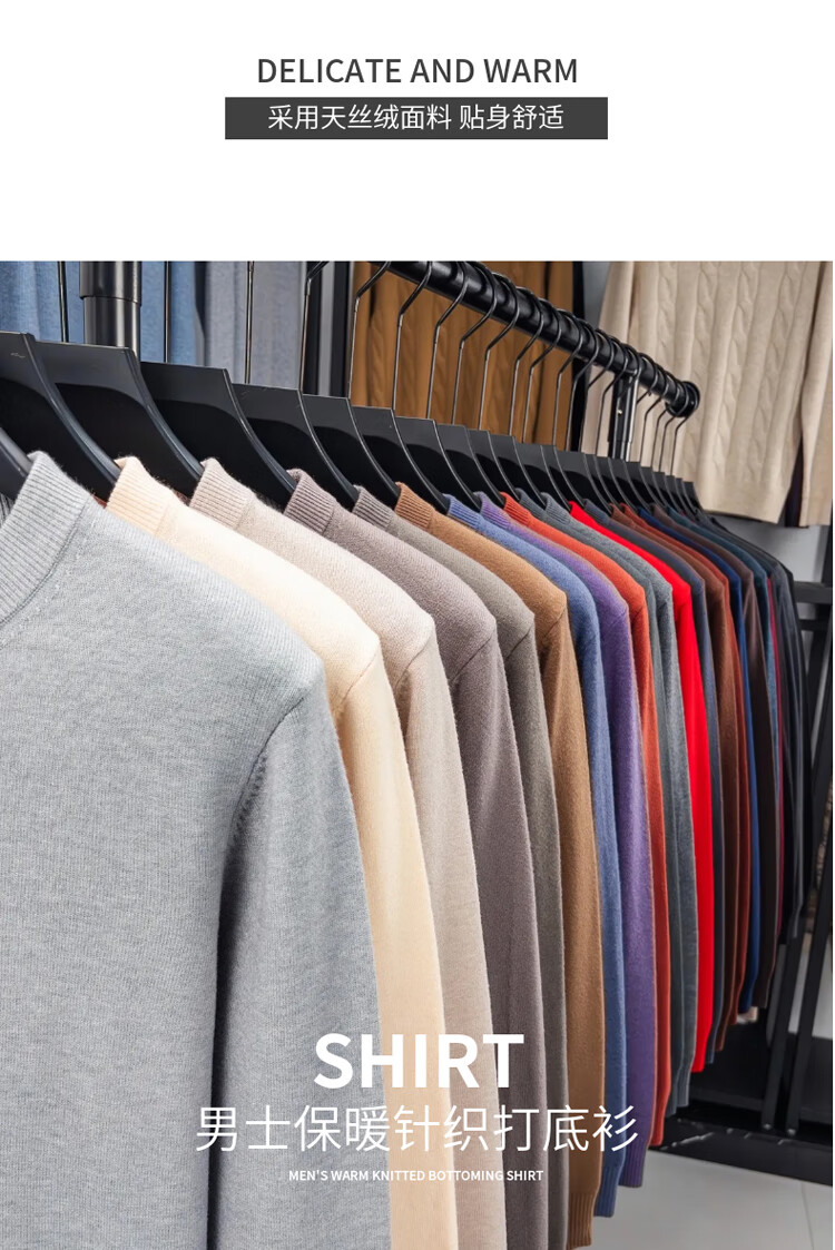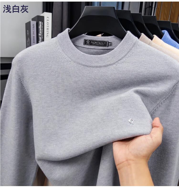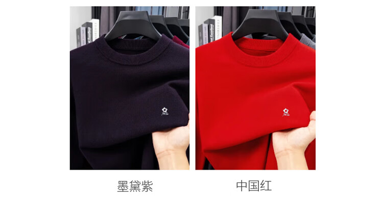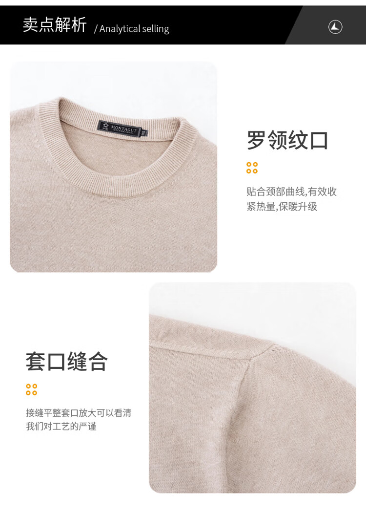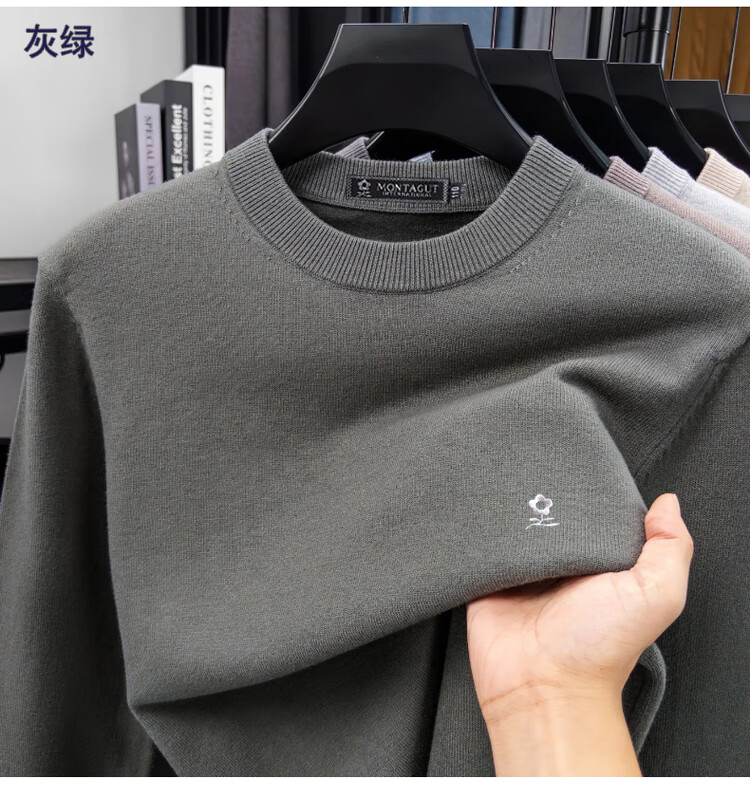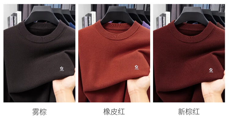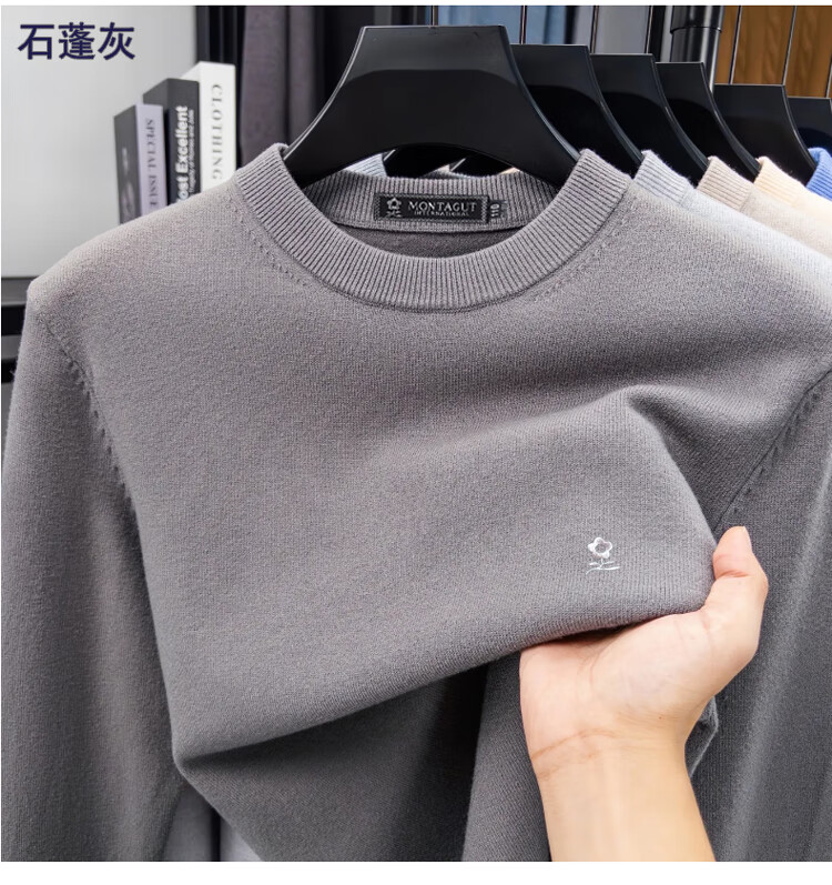 梦特娇(MONTAGUT)男士羊毛衫秋冬季毛衣青中年修身打底衫圆领厚款羊绒衫 中国红 4XL 190 【建议180-200斤】