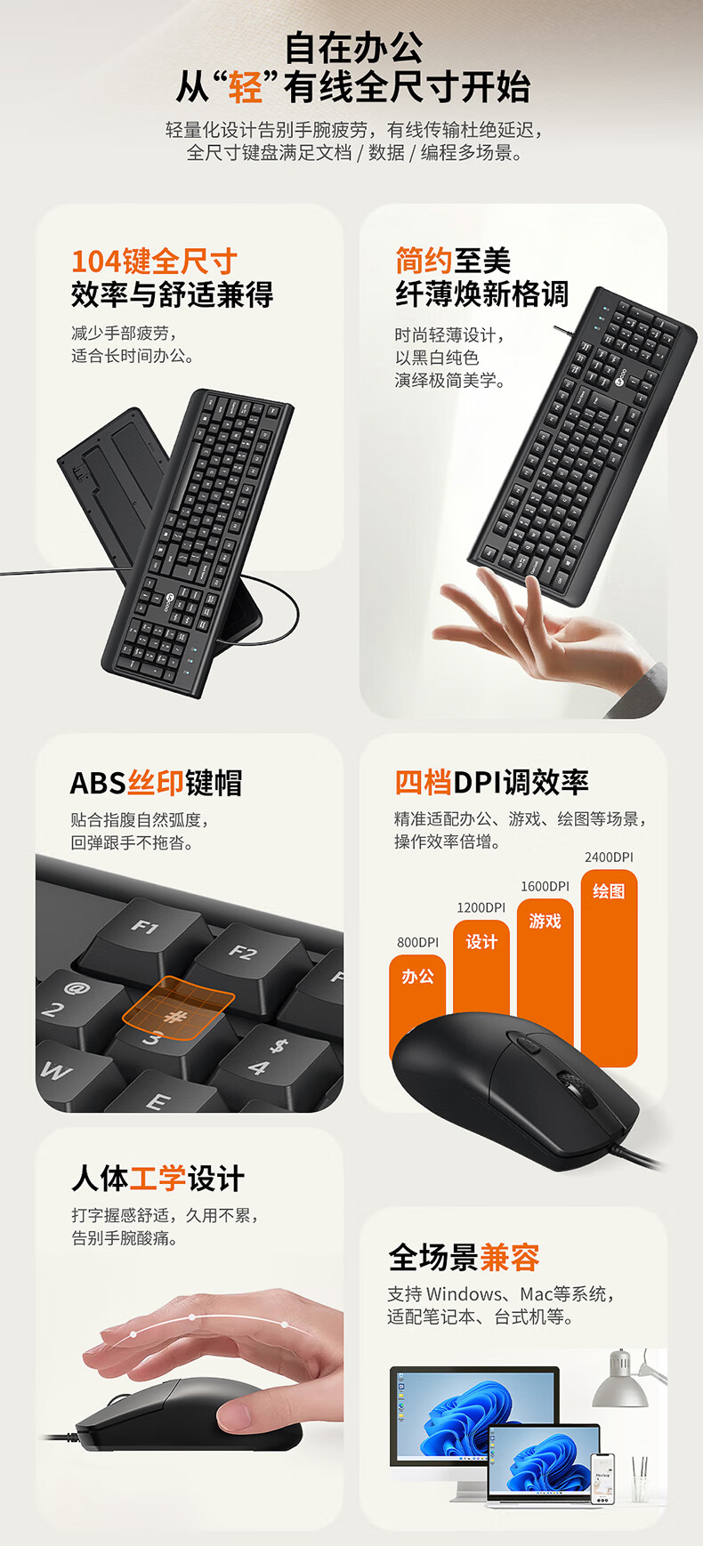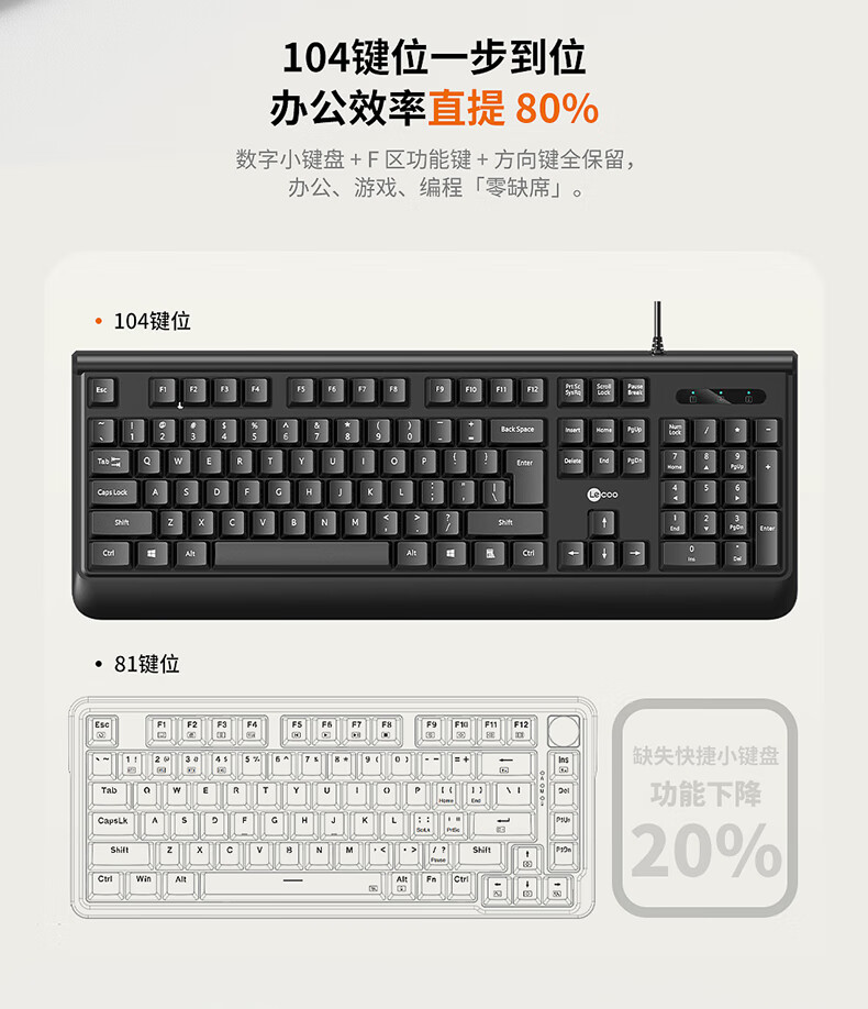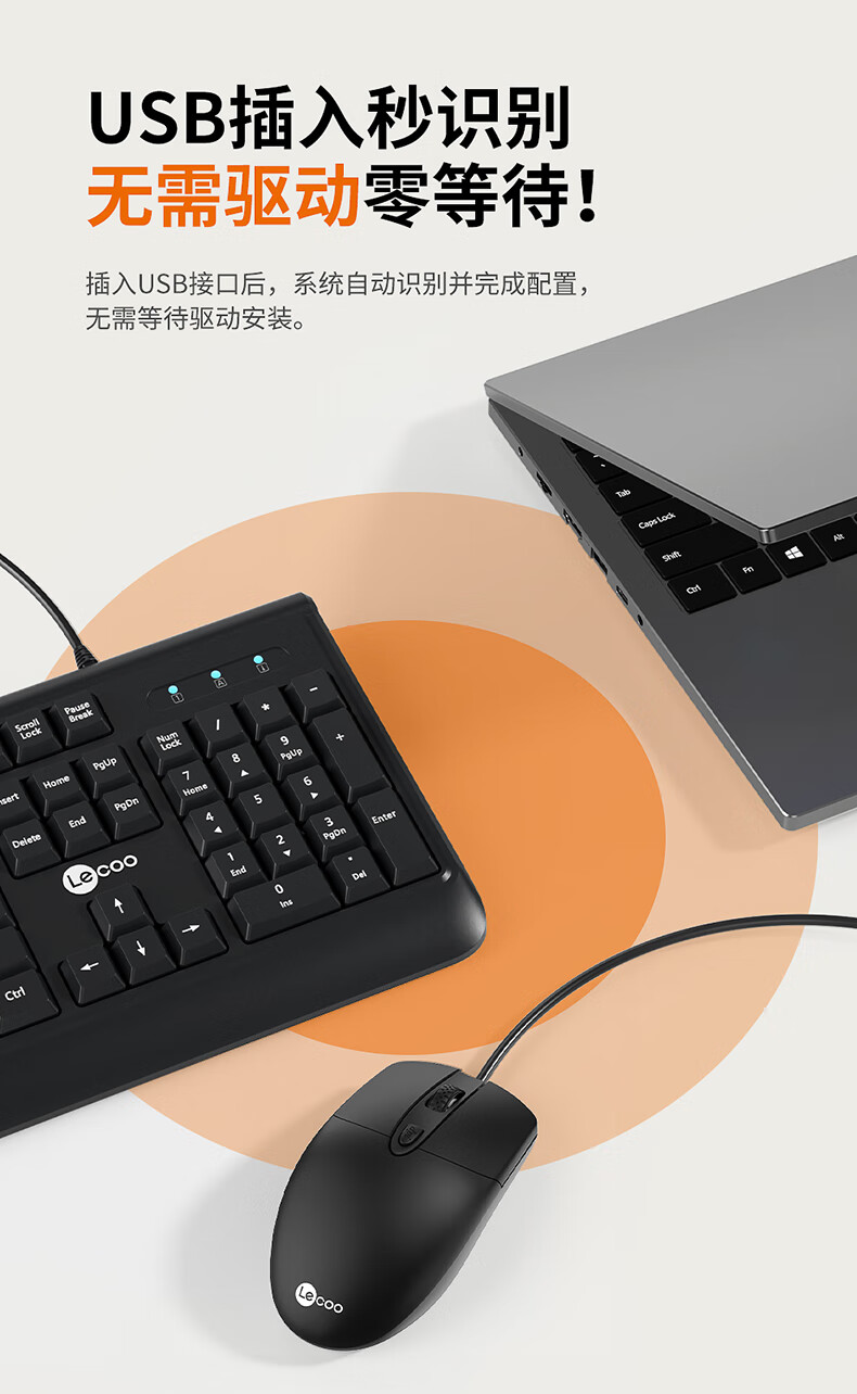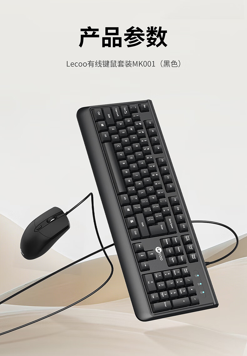 联想有线键鼠套装 全尺寸键盘商务办公家用 适用笔记电脑本台式机一体机电脑联想拯救者华为小米 有线键鼠MK001黑色