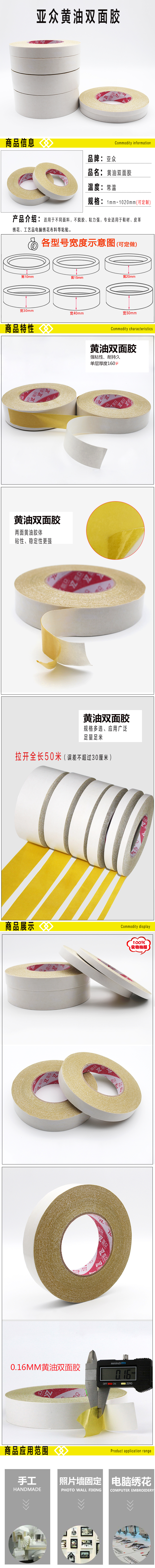 亚众 黄油双面胶带高粘超薄双面胶强力两面胶贴 双倍粘力绣花胶带 50mm宽*50米长