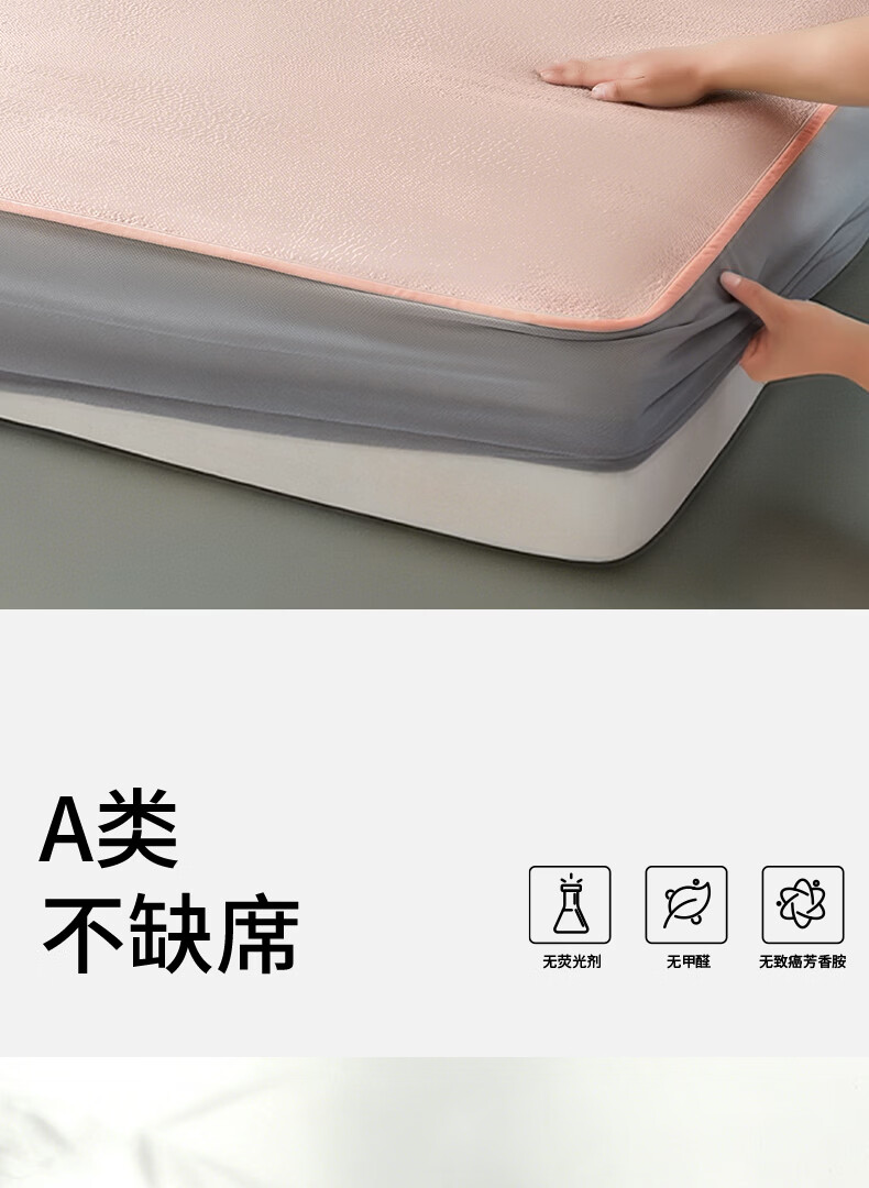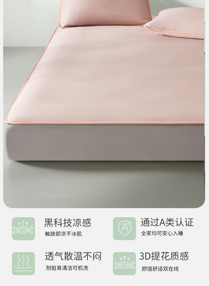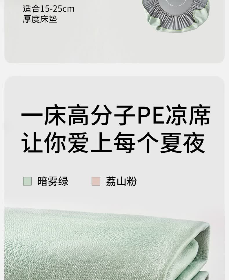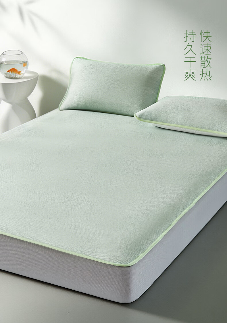 一默冰丝凉席三件套夏季可折叠绑带冰凉垫单双人空调PE冰丝软席子套装 【暗雾绿】凉而不冰丨母婴A类丨机洗无忧 单件装 150cm*200cm (床笠款)