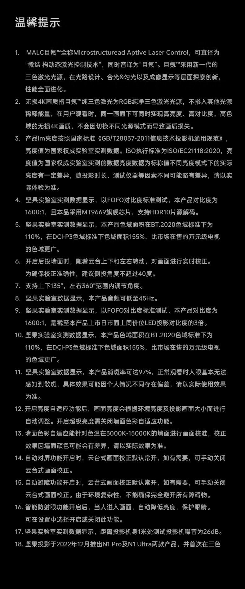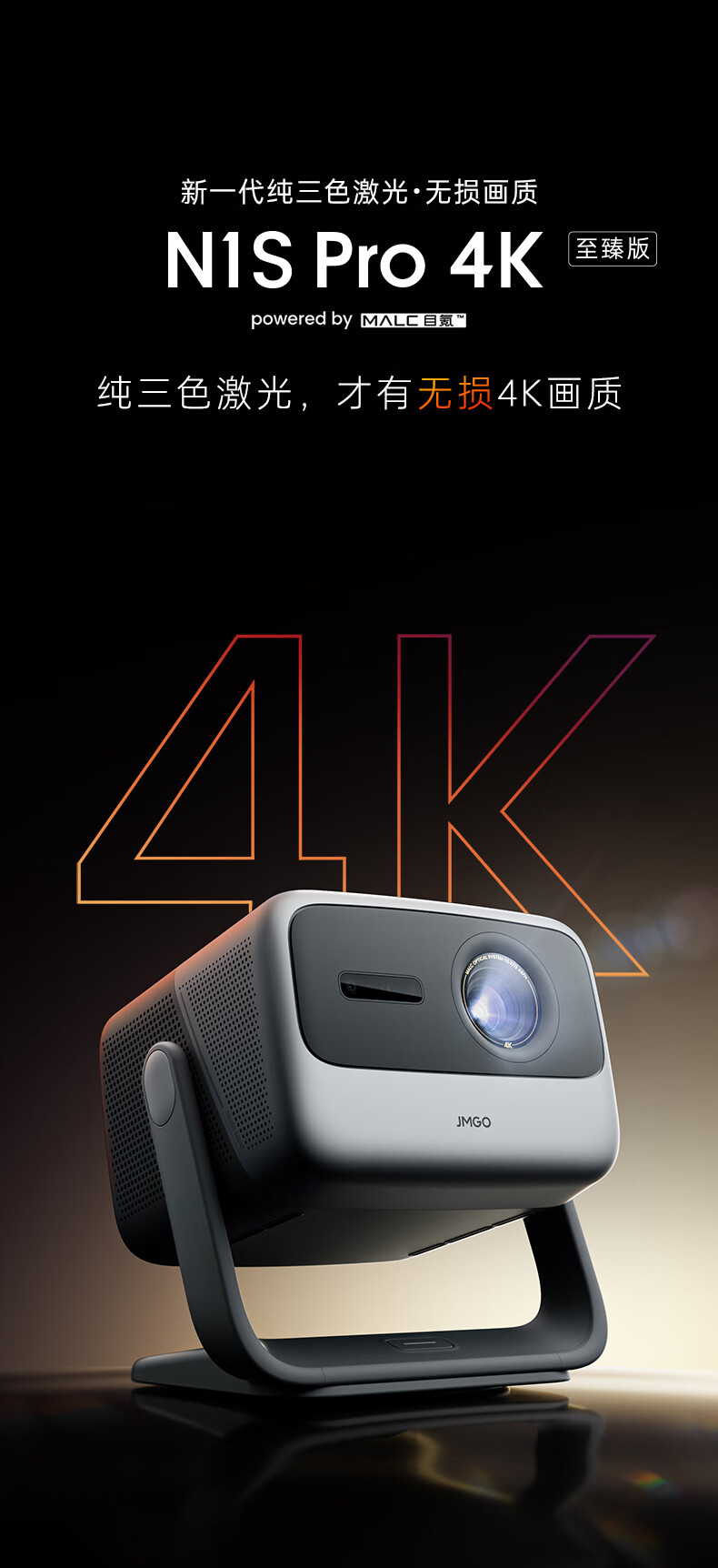 坚果投影(JMGO)N1S Pro 4K至臻版 超高清纯三色激光 云台投影仪家用影院 (2500lm+无损三色激光)