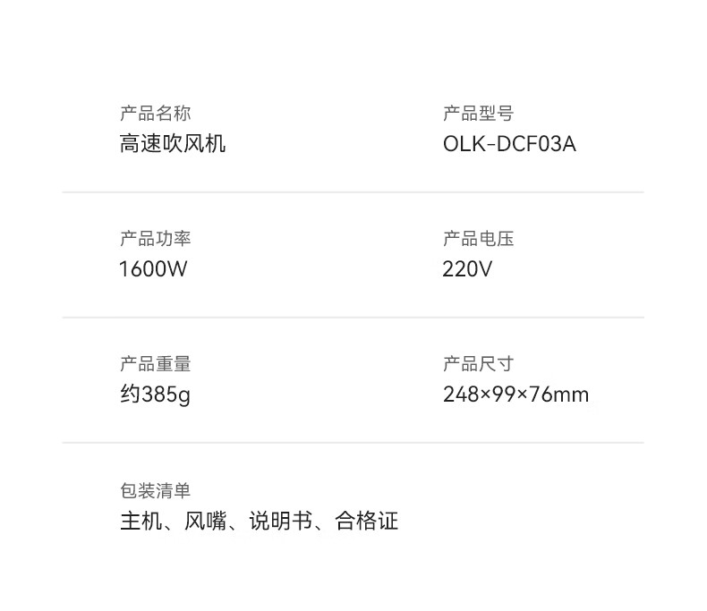 olayks【等离子护发】立时高速吹风机 三档风速 柔顺抗毛躁 大功率速干 节日礼物 OLK-DCF03A OLK-DCF01A 【下单送吹风嘴 】陶白 三档风速