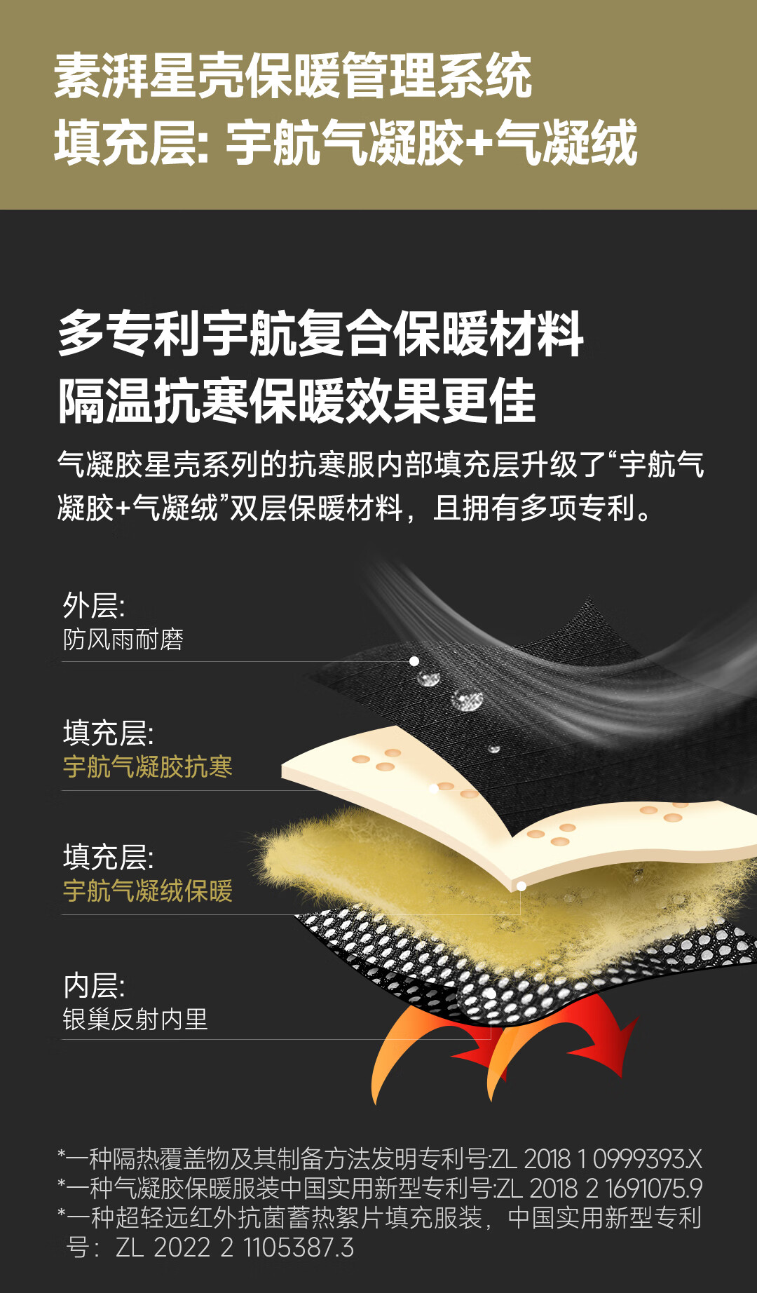 SUPIELD素湃宇航星壳星束收腰款抗寒外套气凝胶东北冬户外防寒服