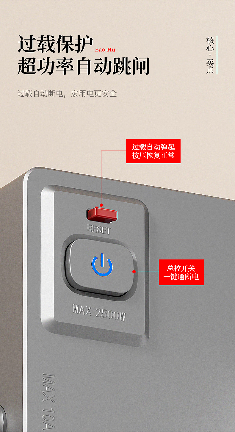 公牛(BULL)插座开关面板一开五孔双控明装大功率空调专用墙壁扦热水器灯座 五孔插座
