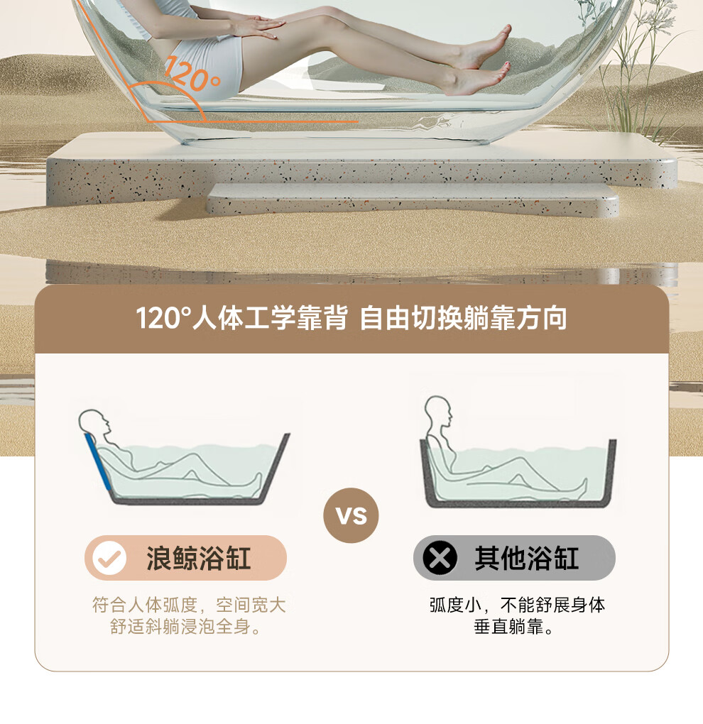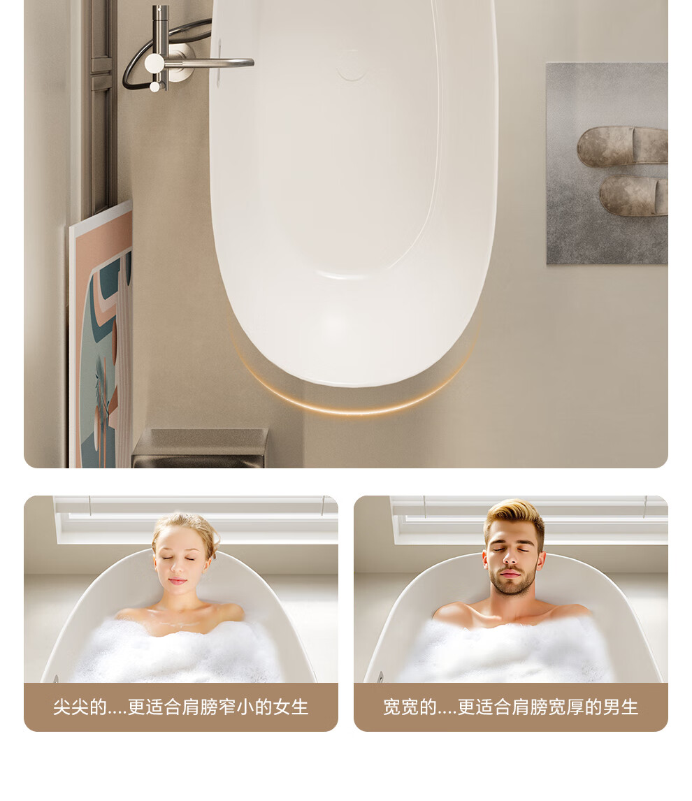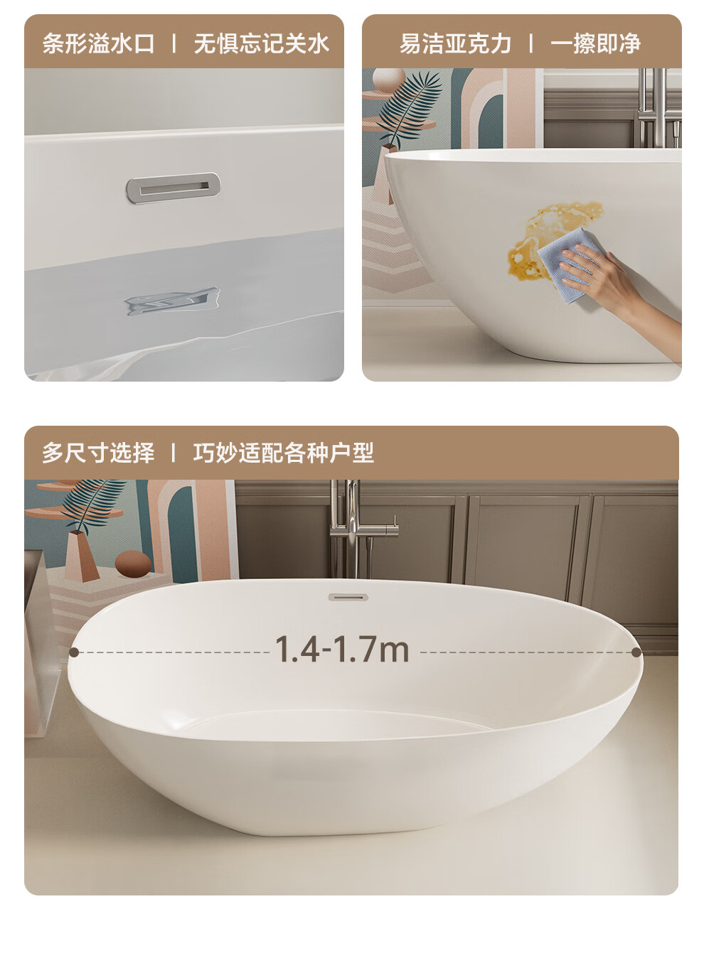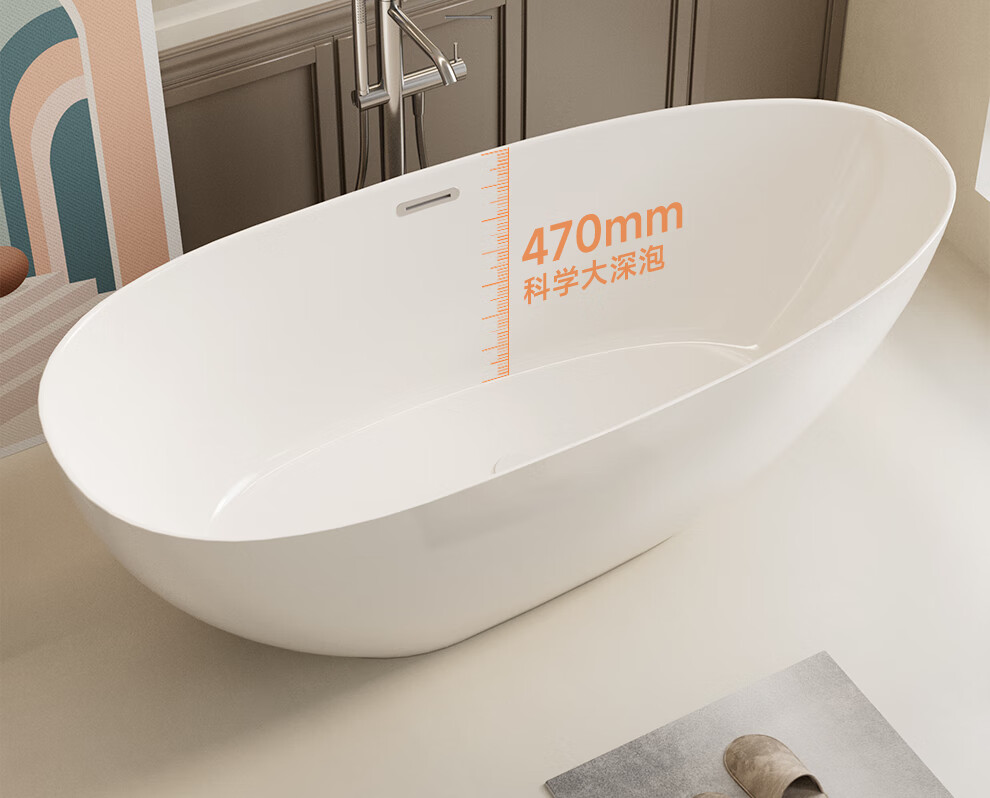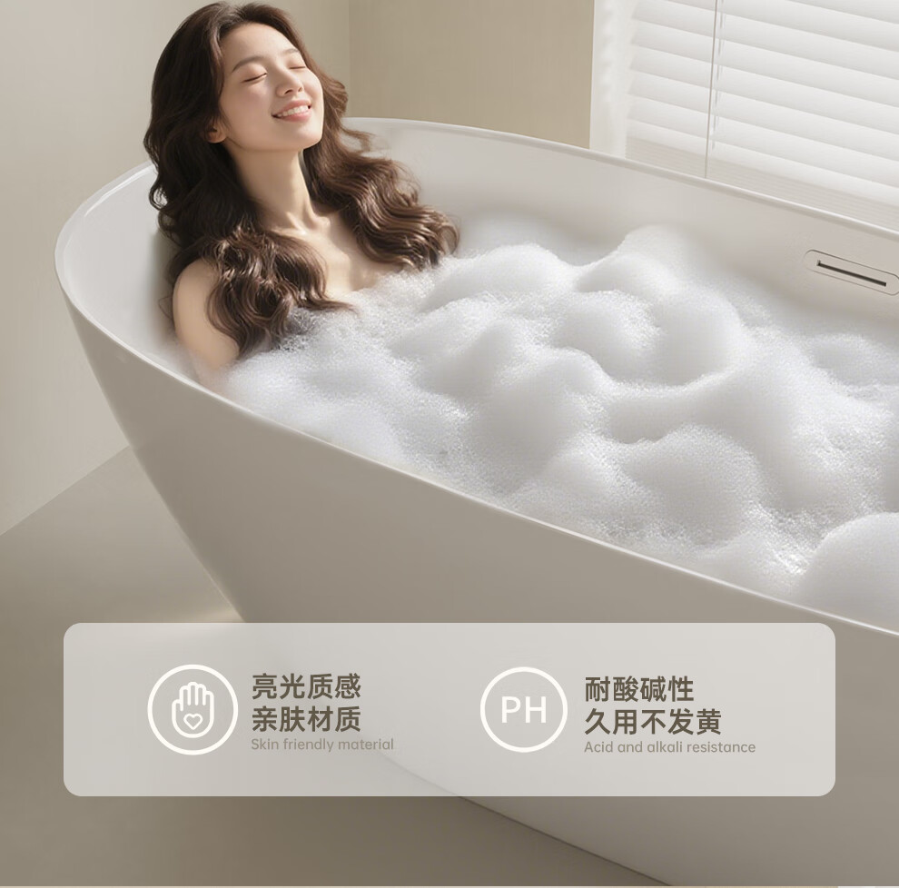 浪鲸(SSWW)卫浴家用成人亚克力保温浴缸无缝一体家用卫生间民宿蛋形泡澡浴缸 0580亚克力空缸-1.7m