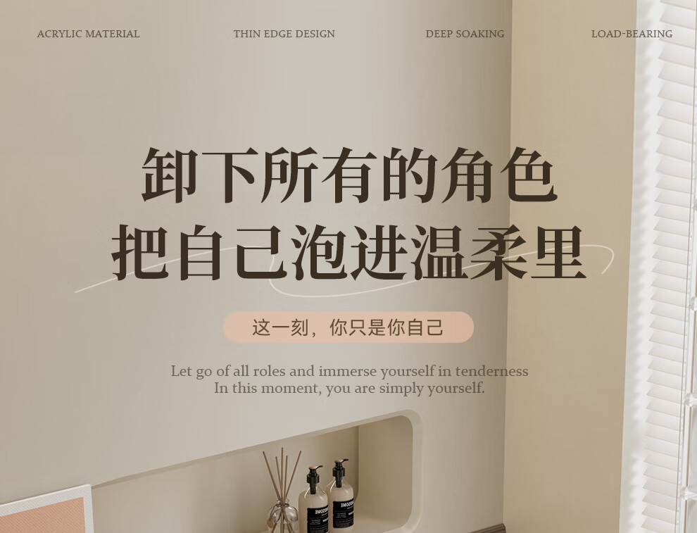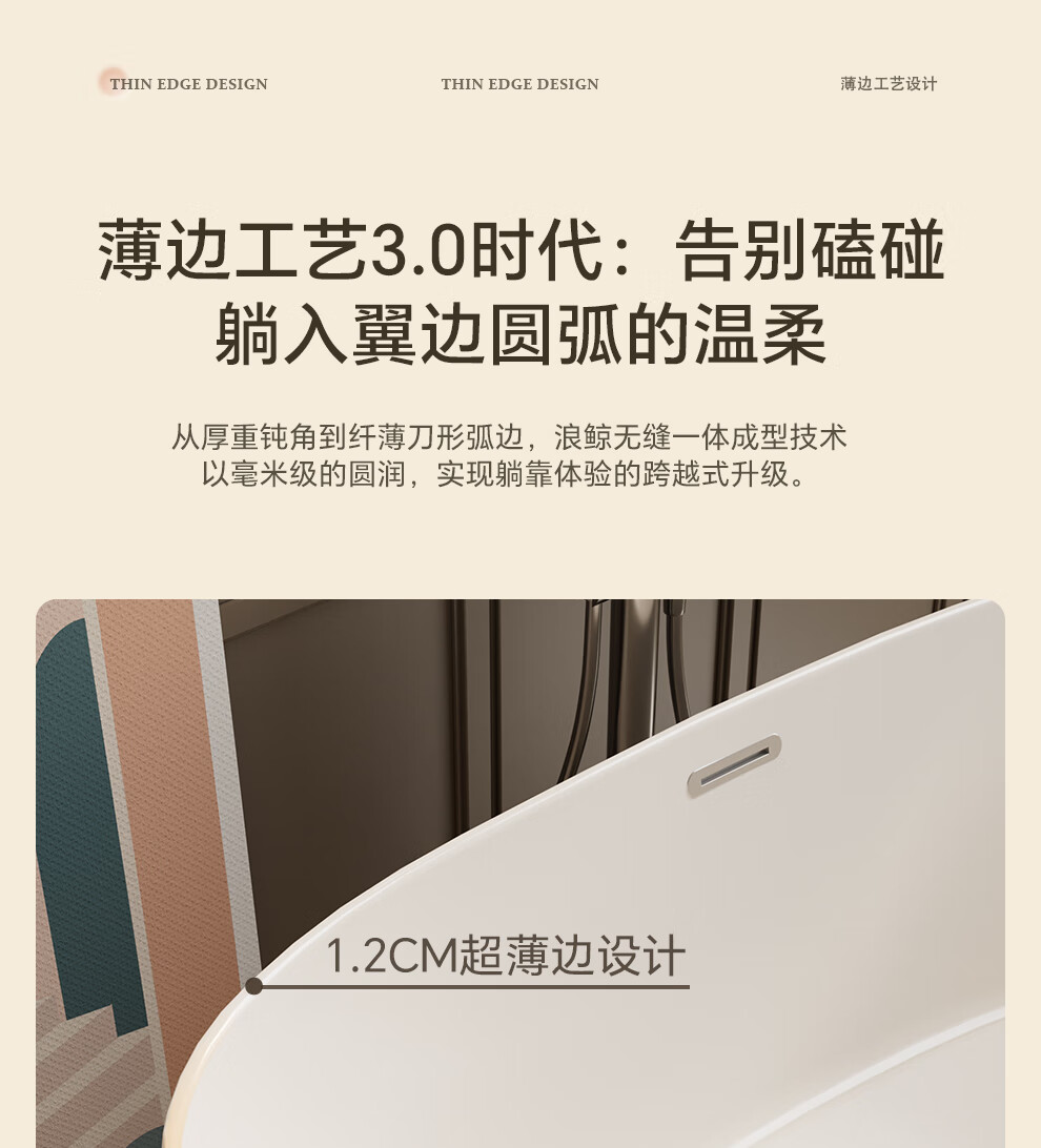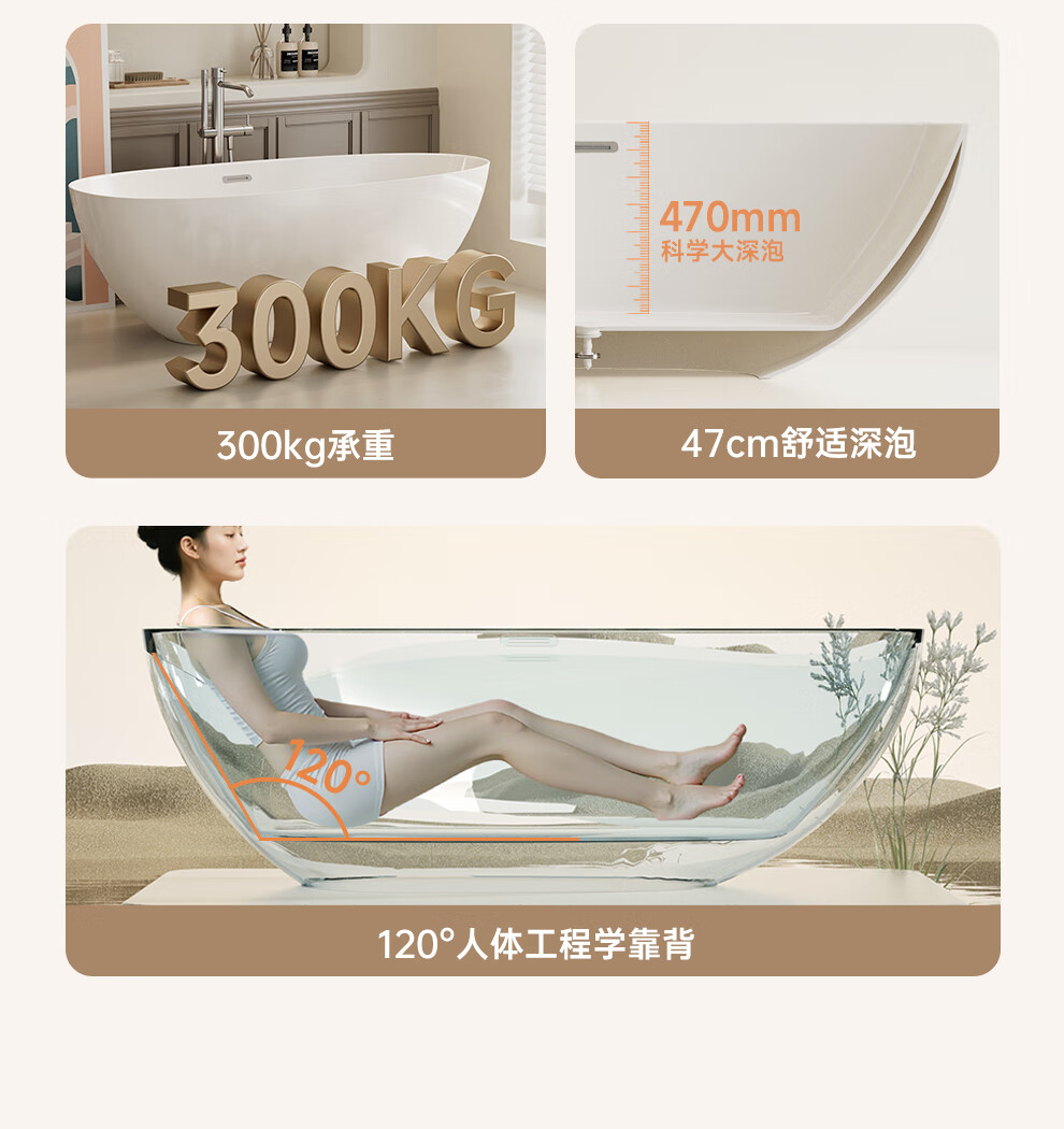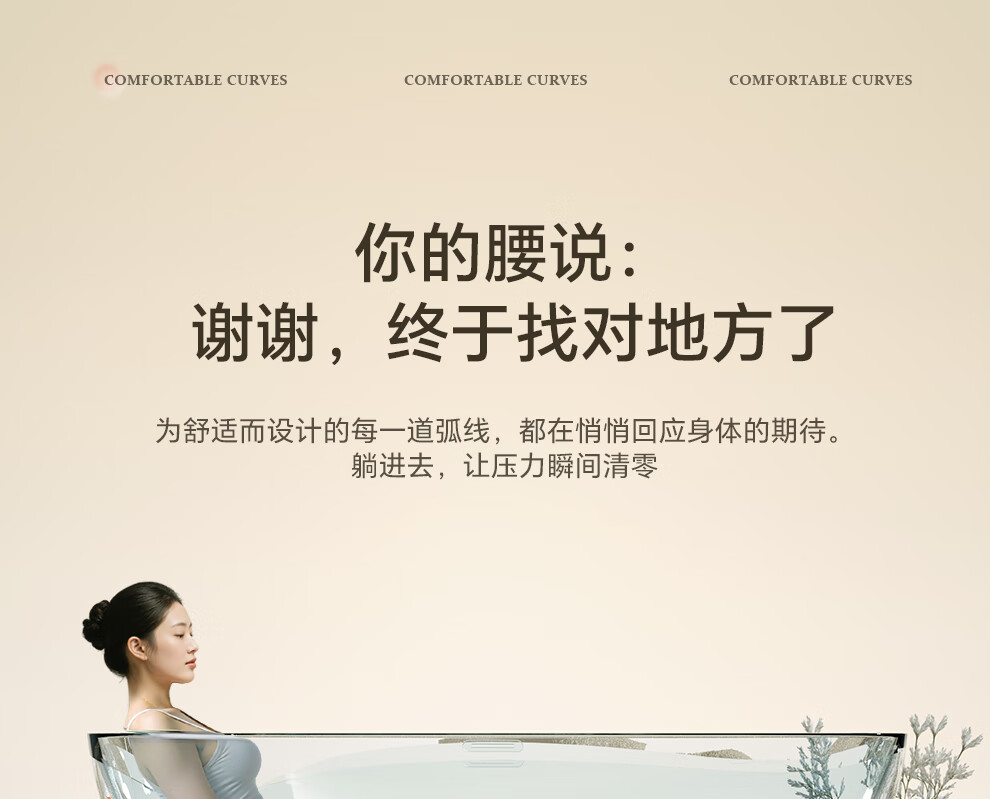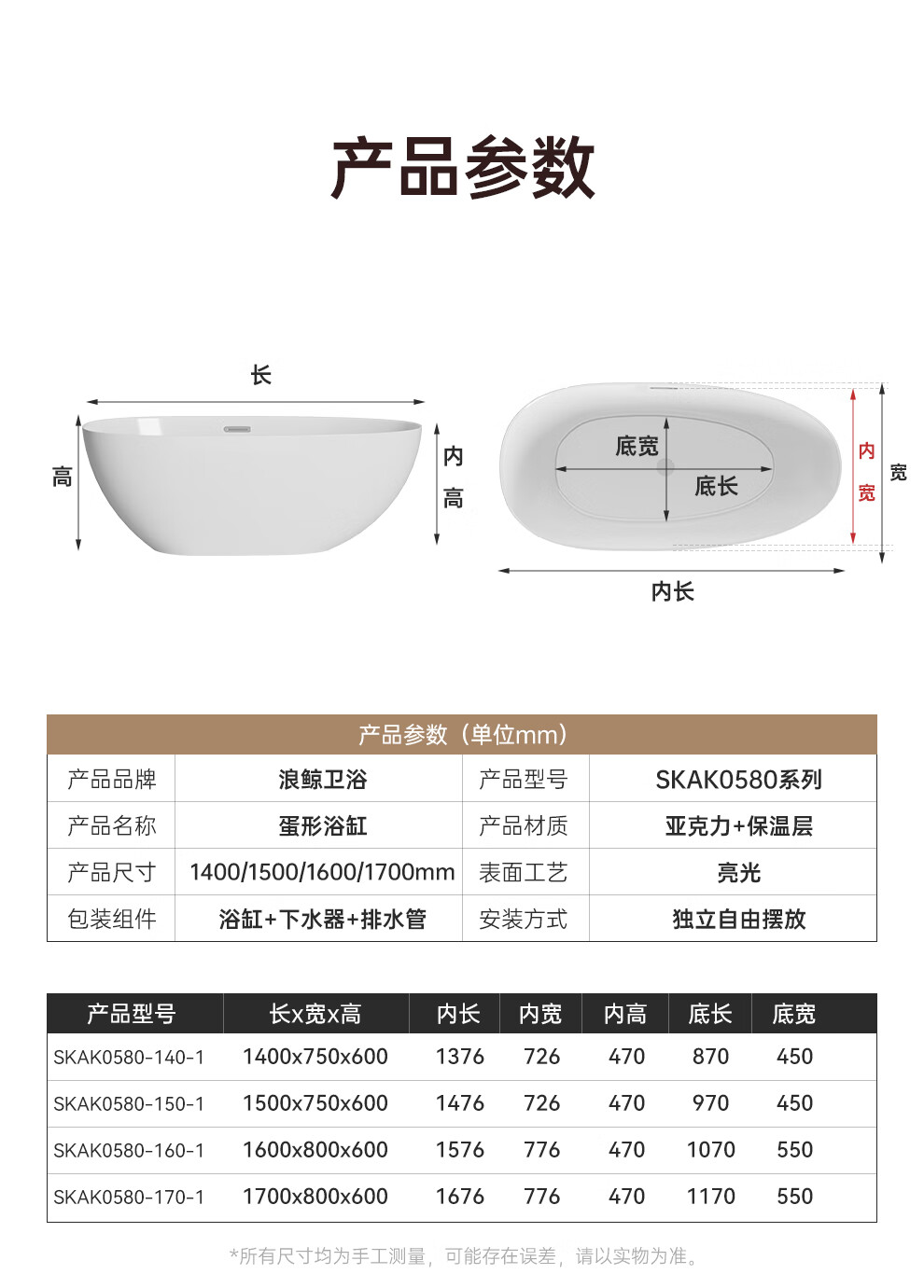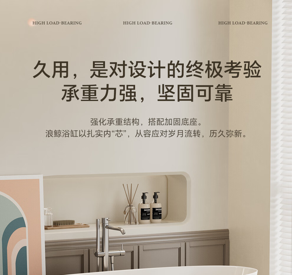 浪鲸(SSWW)卫浴家用成人亚克力保温浴缸无缝一体家用卫生间民宿蛋形泡澡浴缸 0580亚克力空缸-1.7m