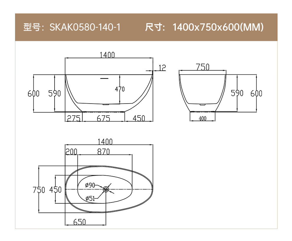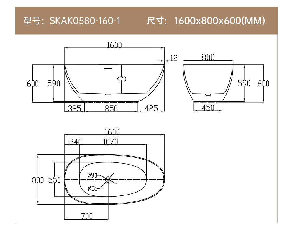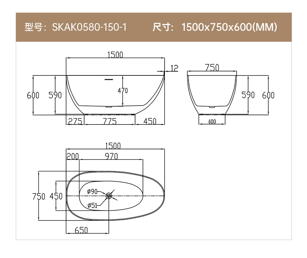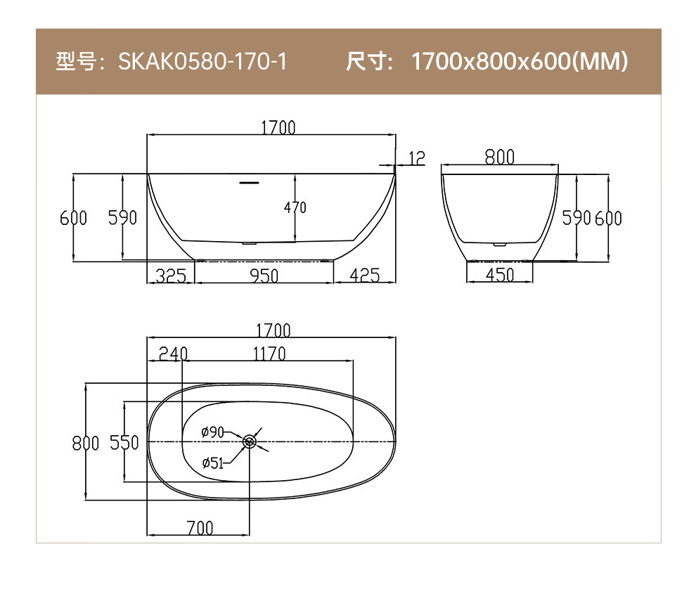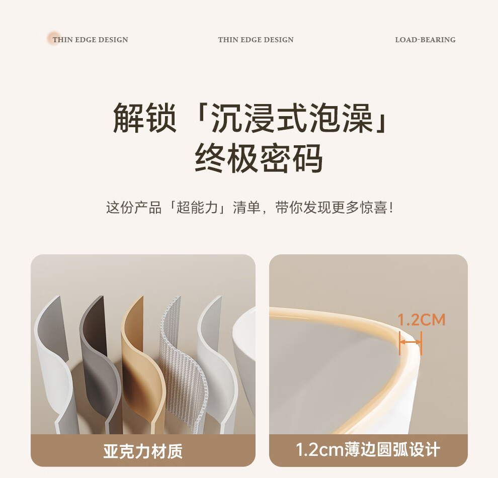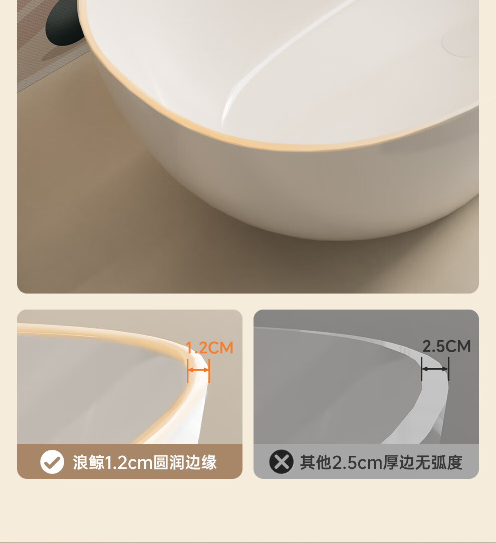 浪鲸(SSWW)卫浴家用成人亚克力保温浴缸无缝一体家用卫生间民宿蛋形泡澡浴缸 0580亚克力空缸-1.7m