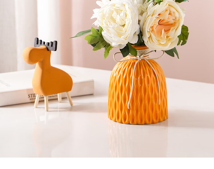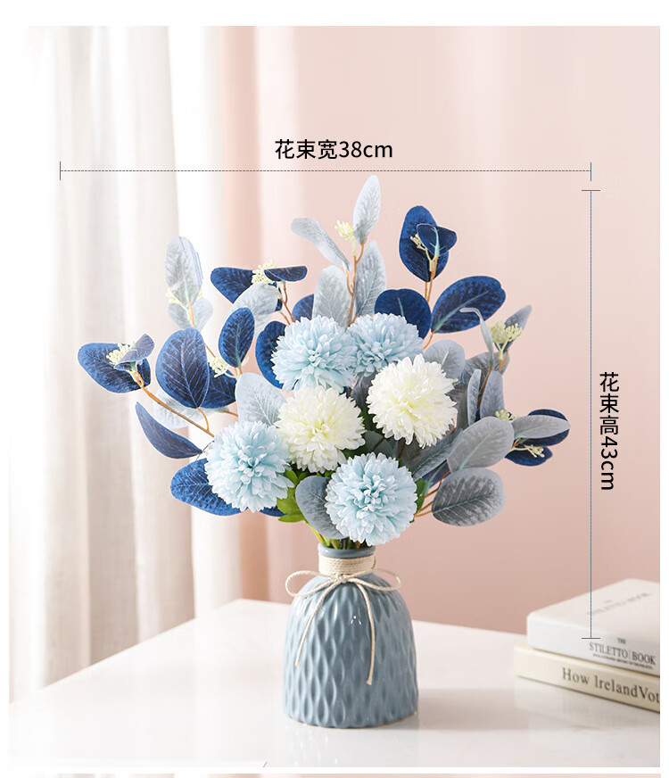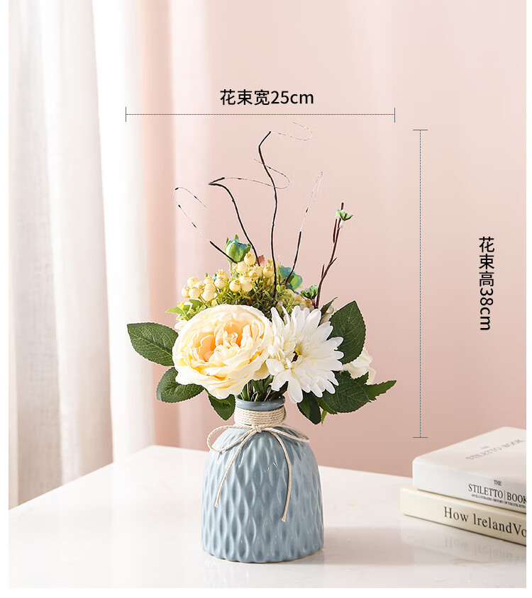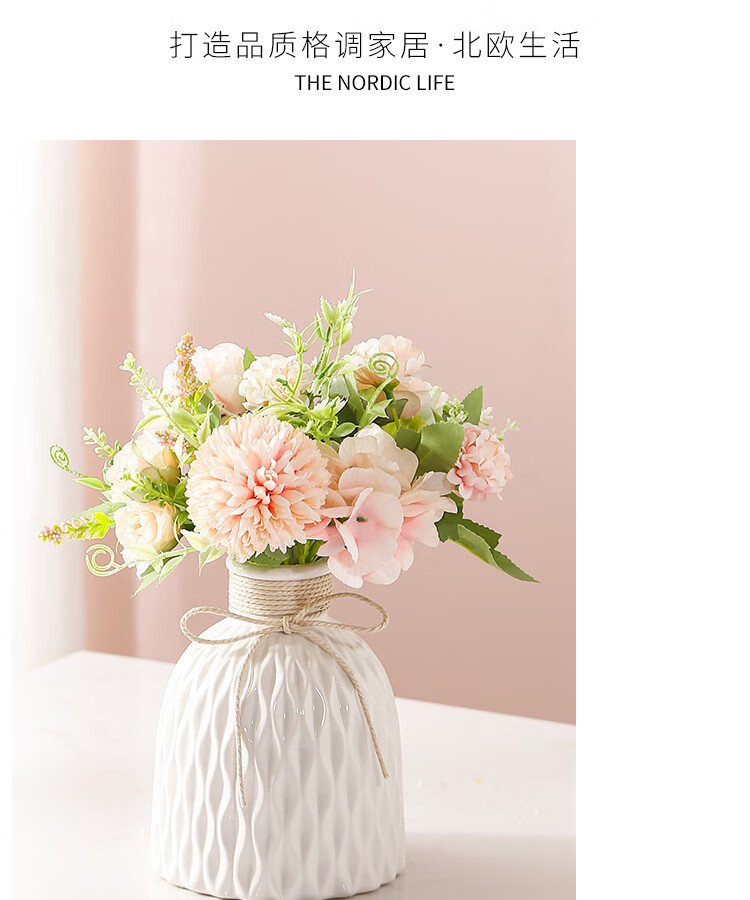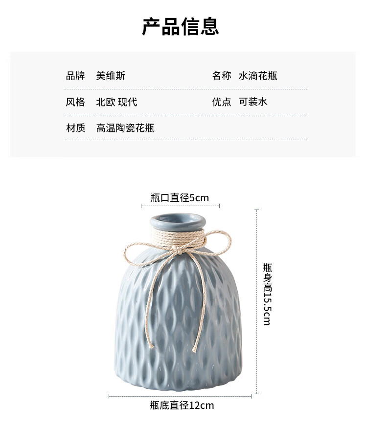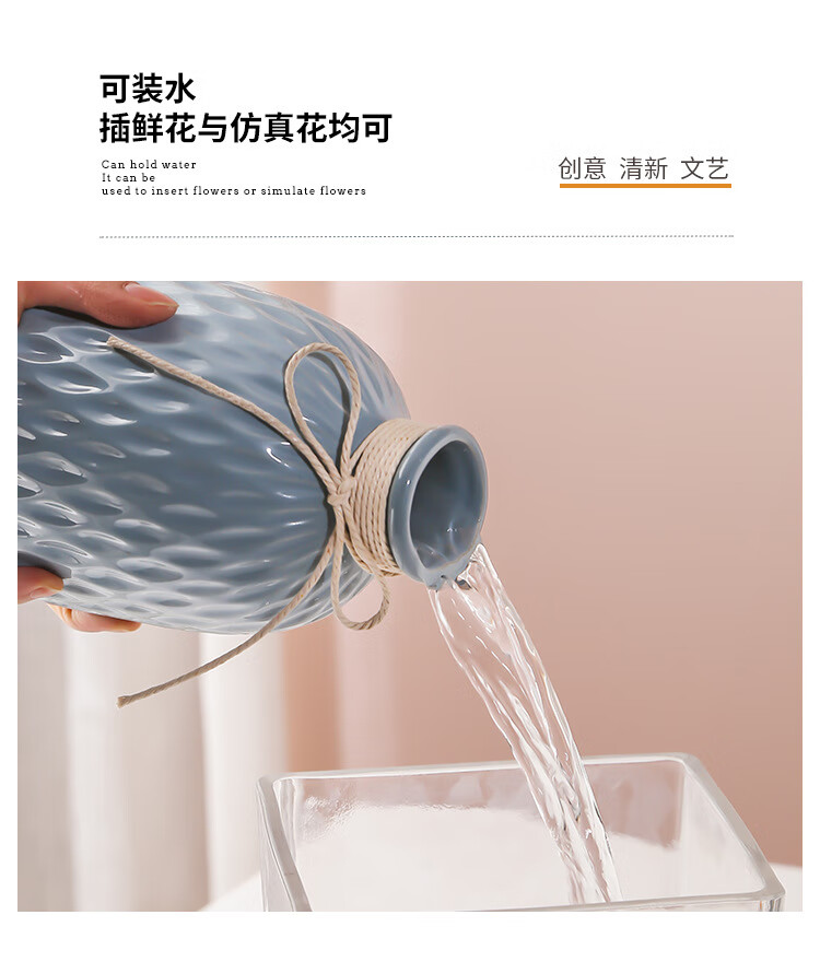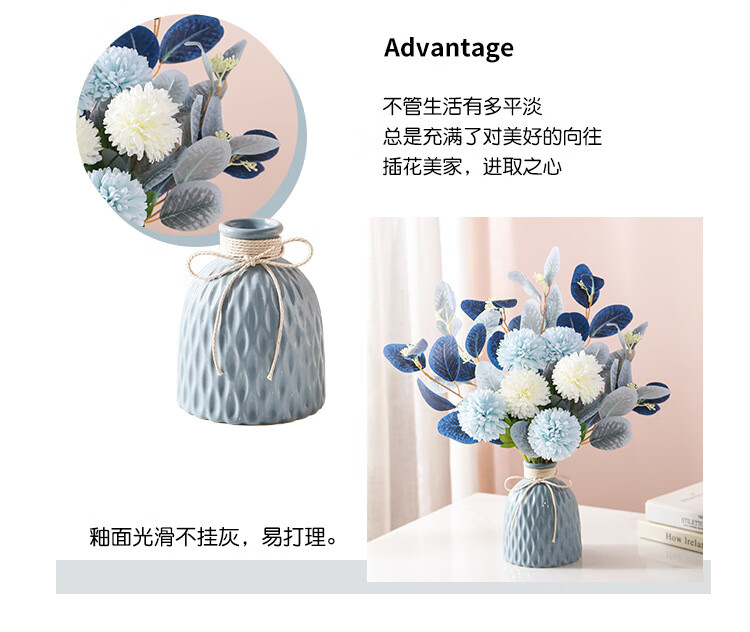 OYKTN北欧陶瓷花瓶摆件家居客厅餐桌插花水培养殖结婚礼物白瓷现代简约 陶瓷花瓶【蓝色】-无花单个花瓶
