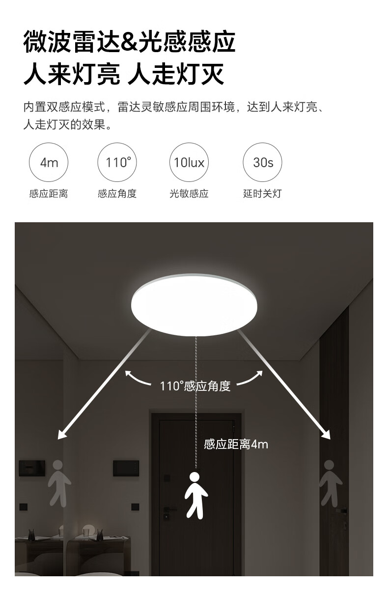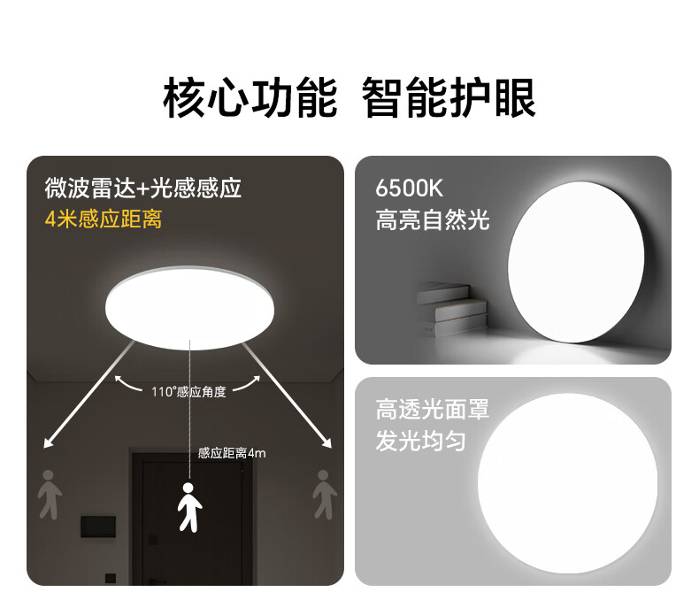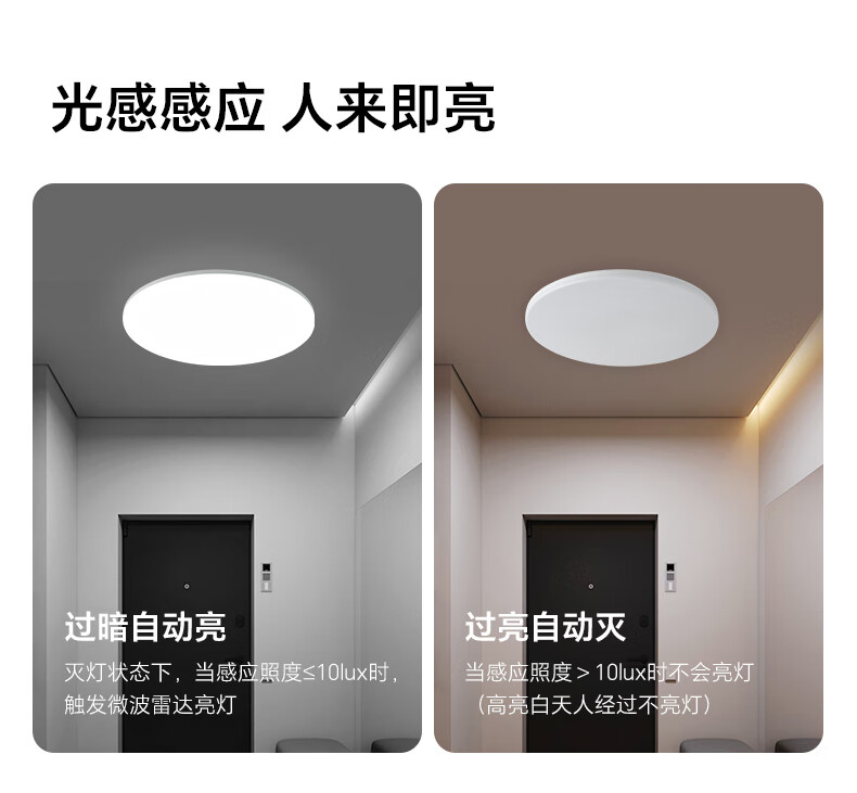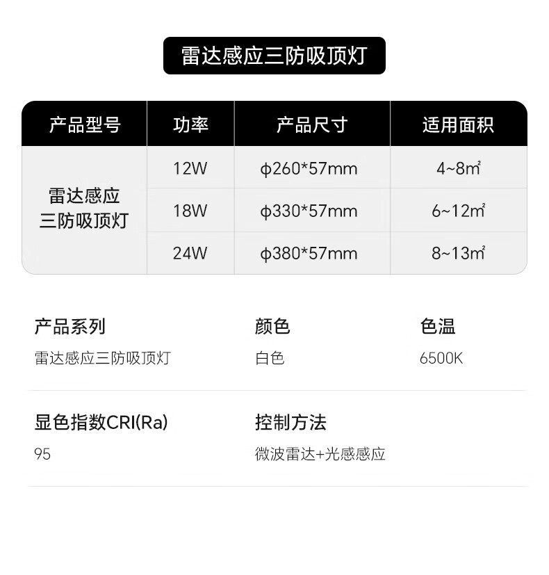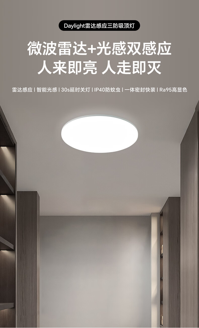 三雄极光led雷达感应吸顶灯超薄三防快装圆形灯阳台走廊楼梯过道玄关灯具 24W 13㎡内适用 1800lm P1 雷达+光感感应 RA95