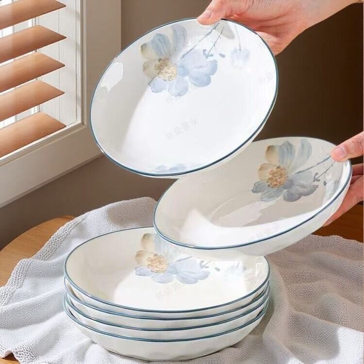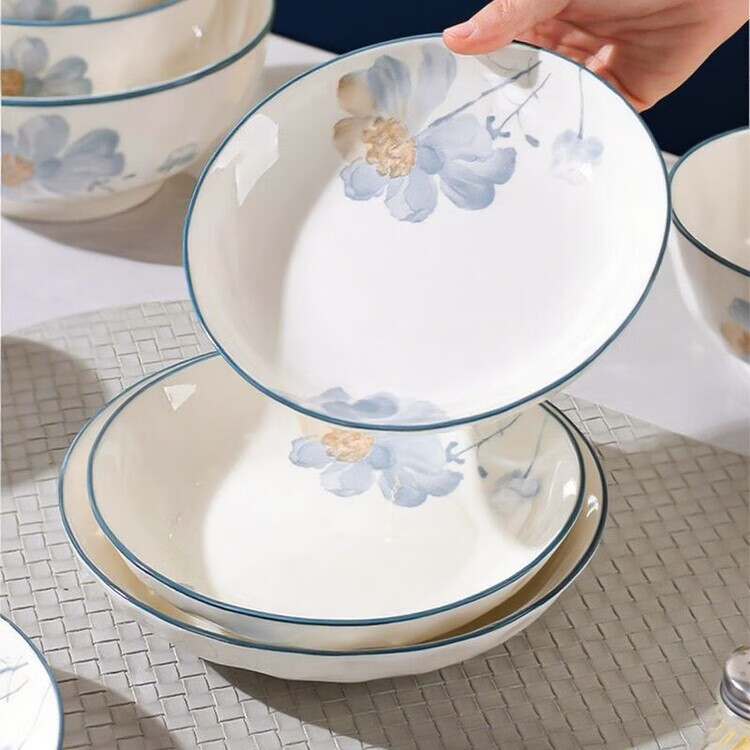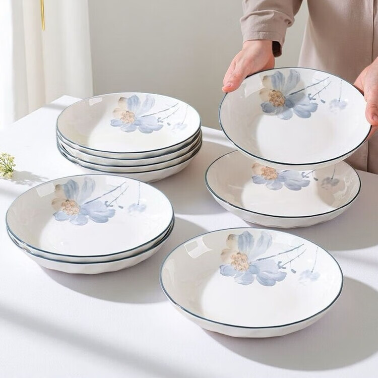 泰禧阁新款高颜值精致釉下彩陶瓷餐具防烫网红饭碗餐盘加厚新款陶瓷餐具 【凝香系列】釉下彩陶瓷餐具 6.5英寸圆盘 10只装