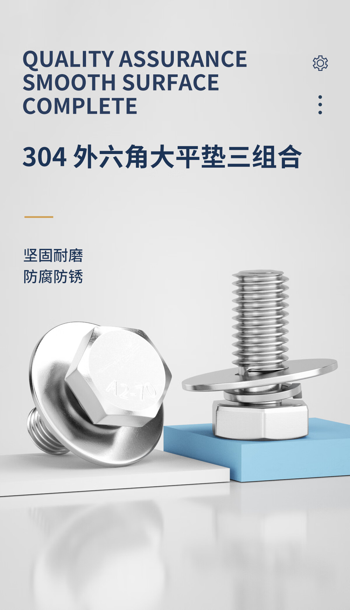 固万基(GUWANJI)304不锈钢外六角加大平垫三组合螺丝GB9074.17大垫圈套装螺钉螺栓 M8x35x24[5只]