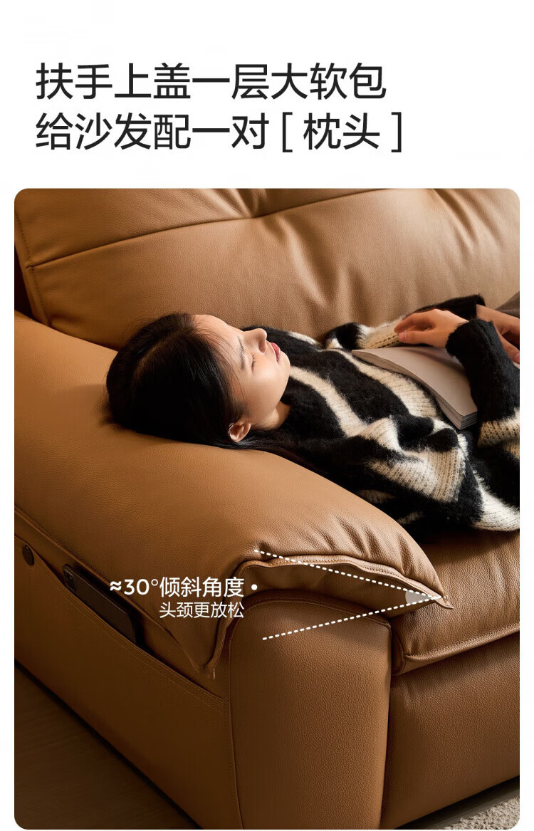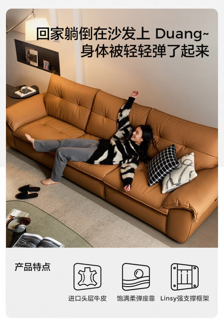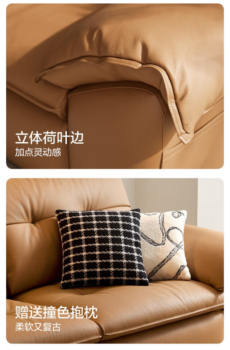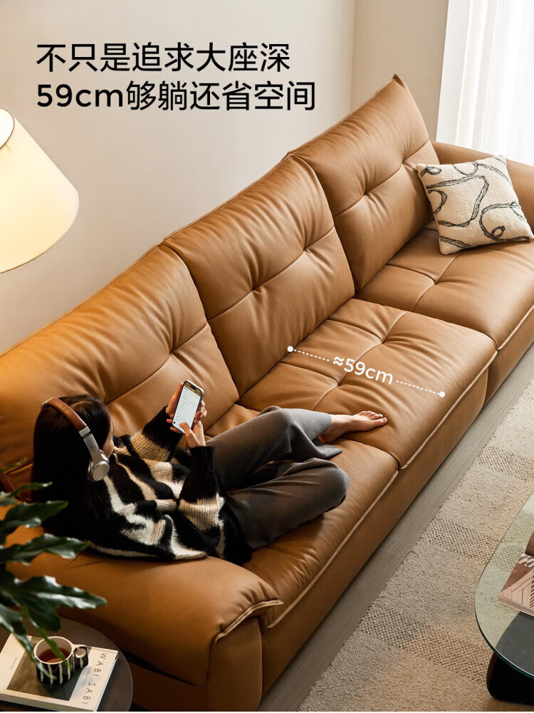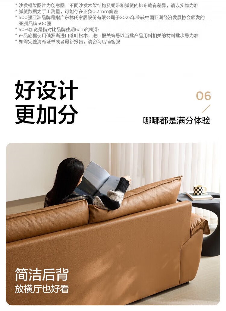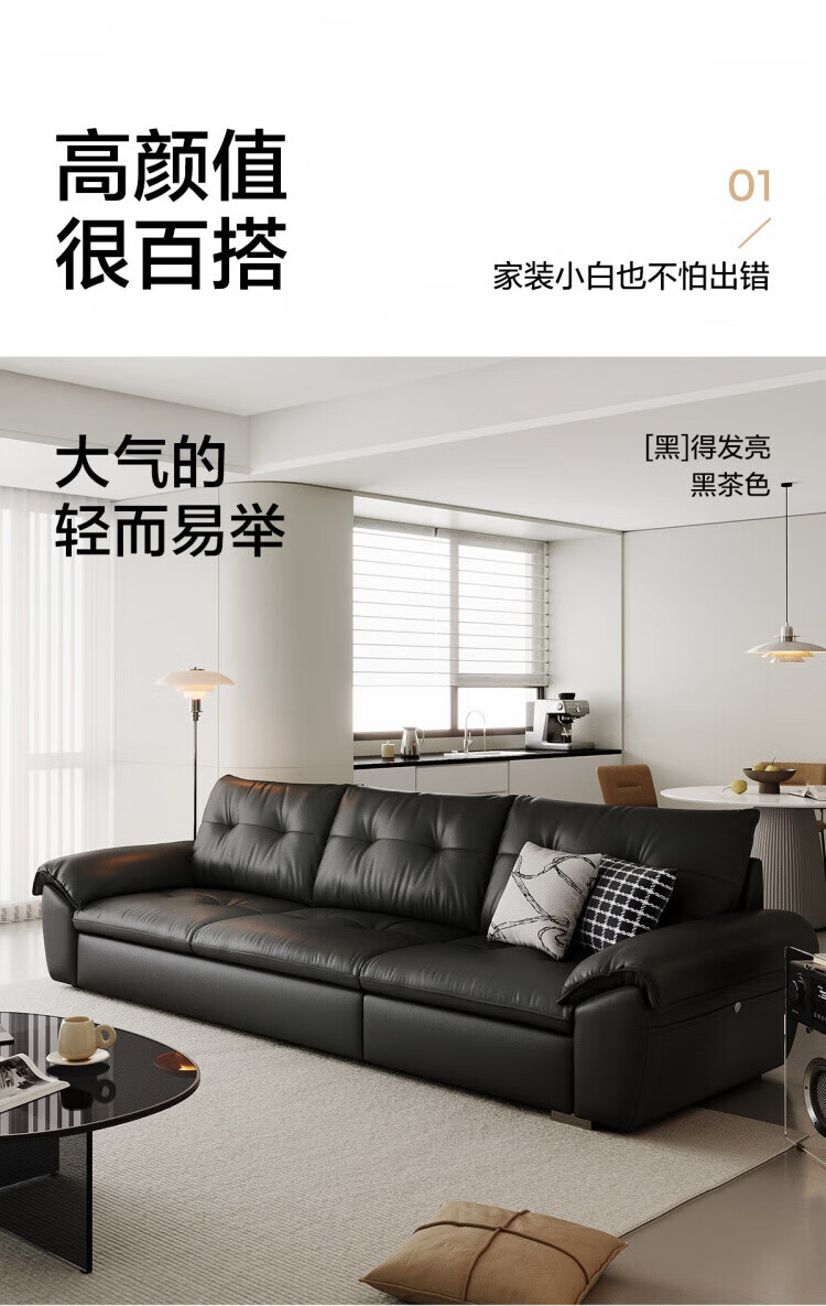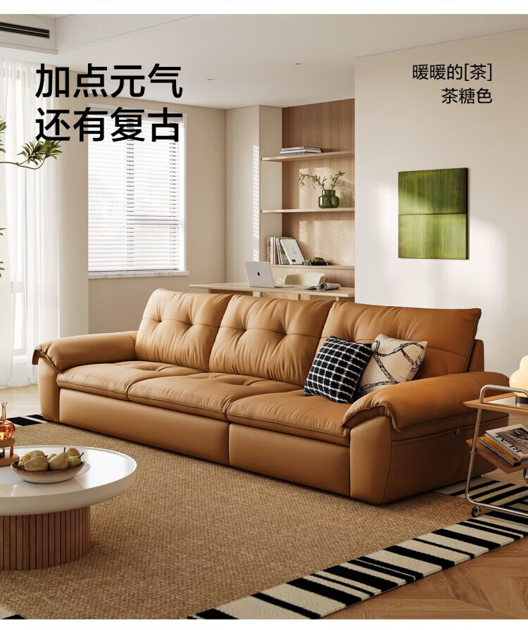 林氏家居复古黑色真皮沙发客厅2025新款意式头层牛皮沙发林氏木业PS739 【2.84米|茶糖色】加厚头层牛皮