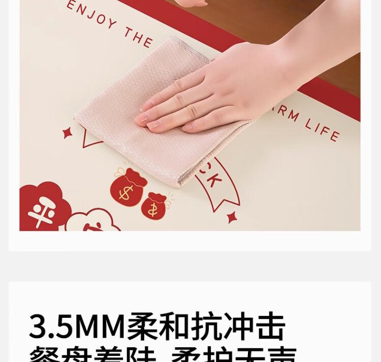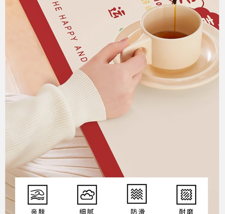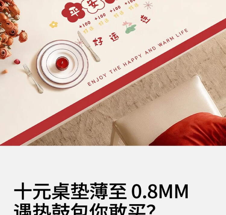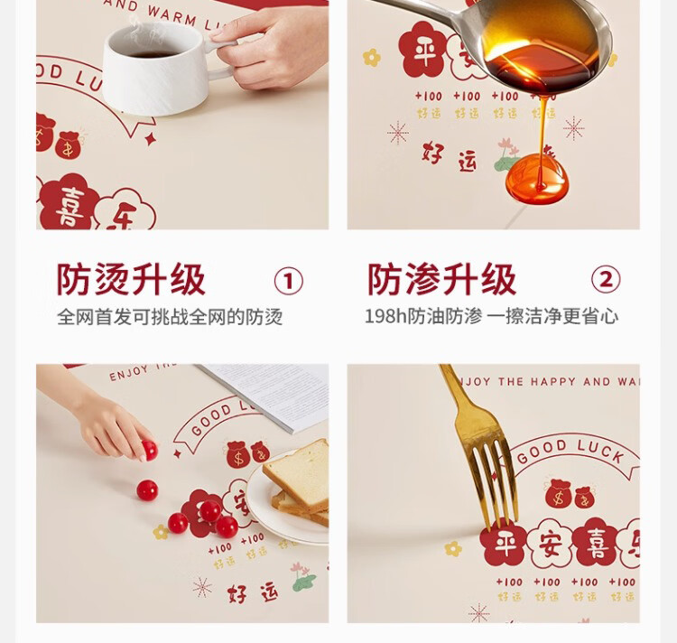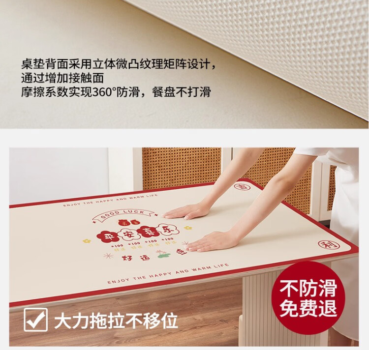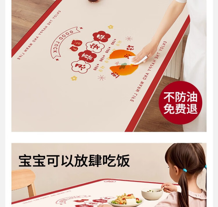无印良品【植物印染】加厚餐桌垫新年春节红色桌垫喜庆茶几防水防油免洗 喜乐到家【植物油墨 安全无异味】 60*80cm【植物油墨 健康居家】