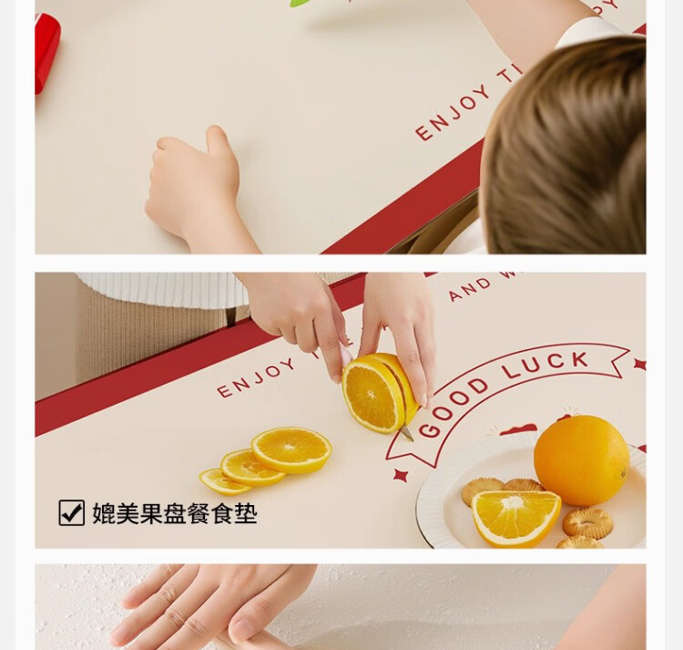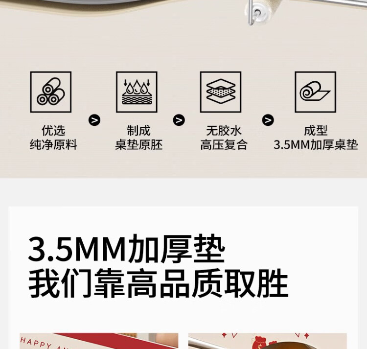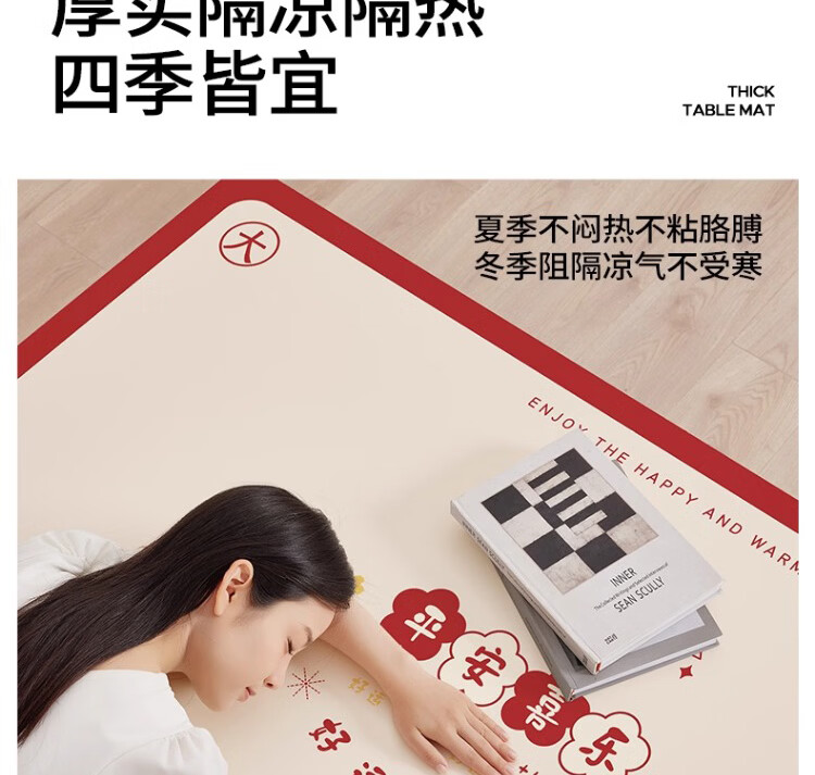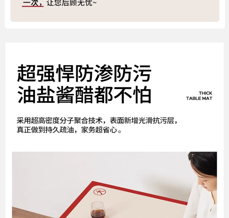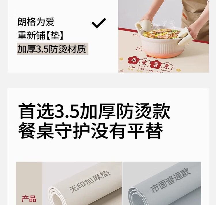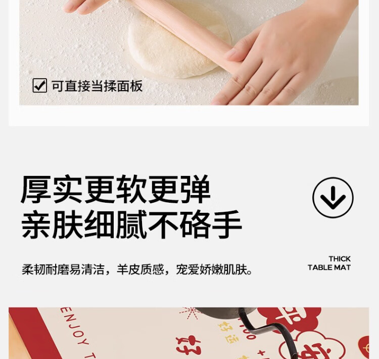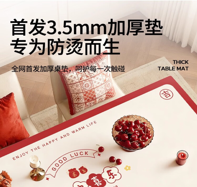 无印良品【植物印染】加厚餐桌垫新年春节红色桌垫喜庆茶几防水防油免洗 喜乐到家【植物油墨 安全无异味】 60*80cm【植物油墨 健康居家】