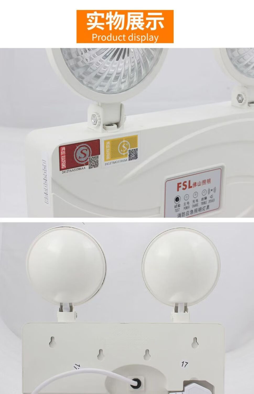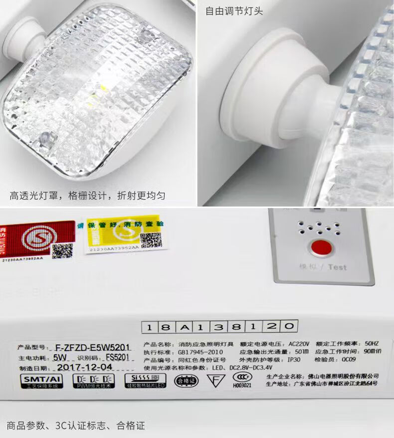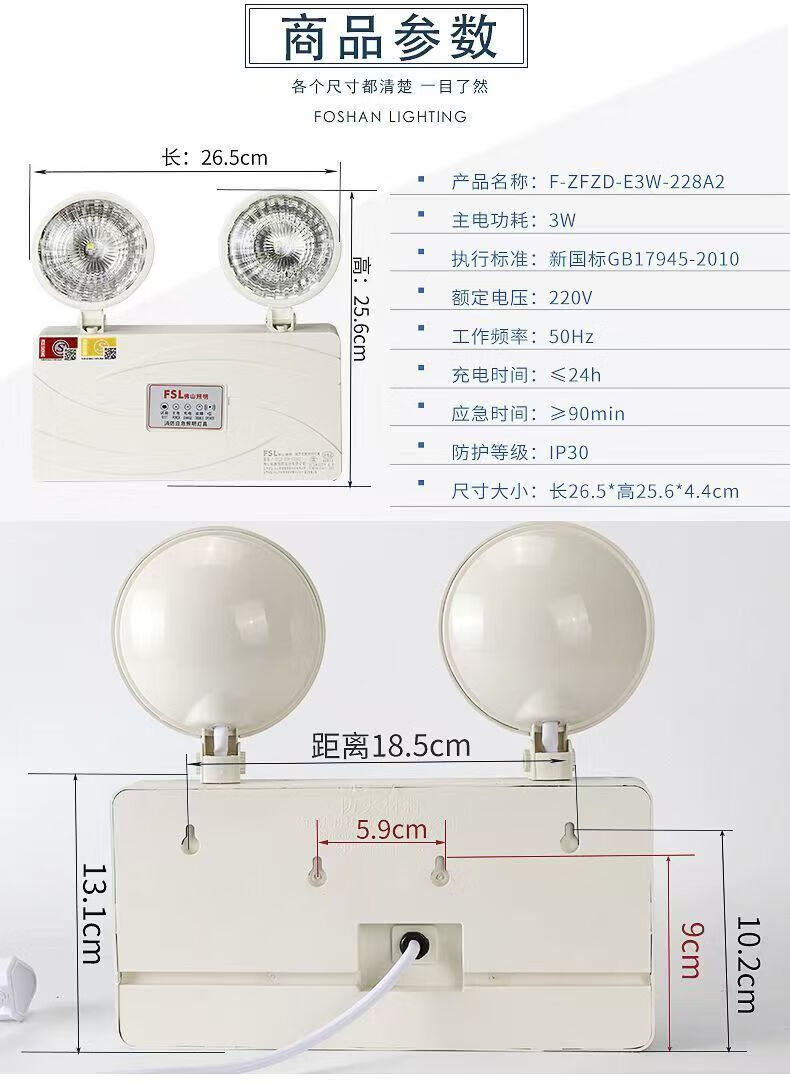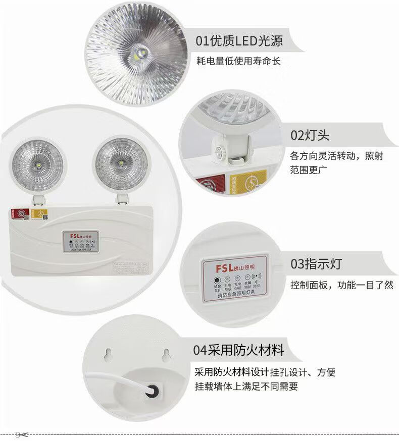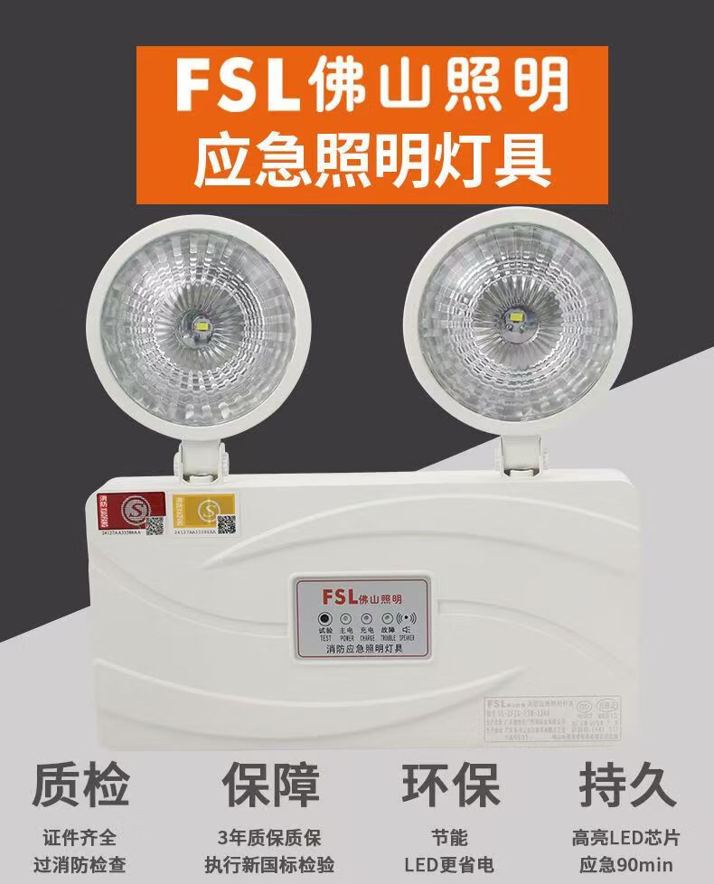 FSL佛山照明90分钟led双头应急灯消防应急灯新国标疏散照明安全出口指示灯3C认证 新国标/双头应急灯3W