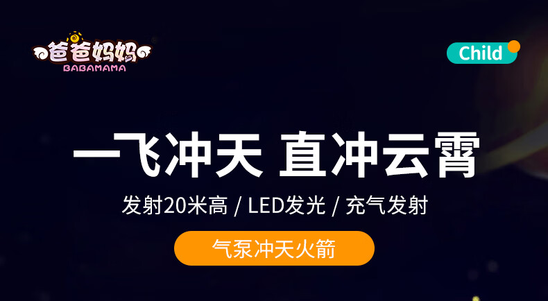 爸爸妈妈火箭发射玩具儿童户外玩具飞天冲天火箭炮脚踩踏弹射小火箭发射器
