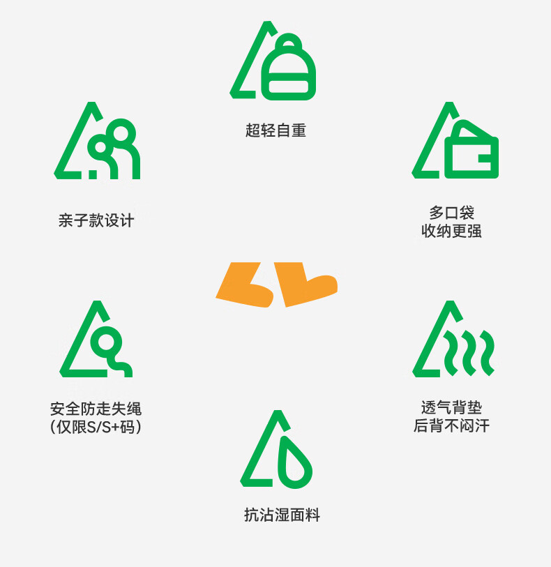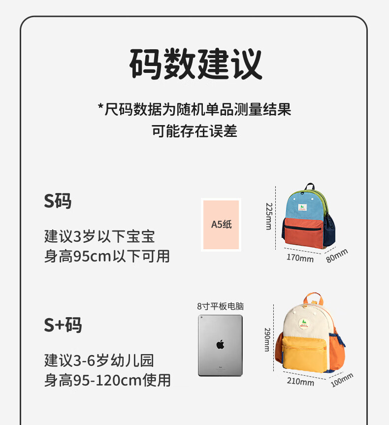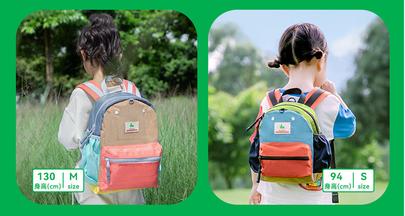 SHUKIKU儿童书包幼儿园背包防丢户外旅游防泼水超轻双肩包橙红S+码