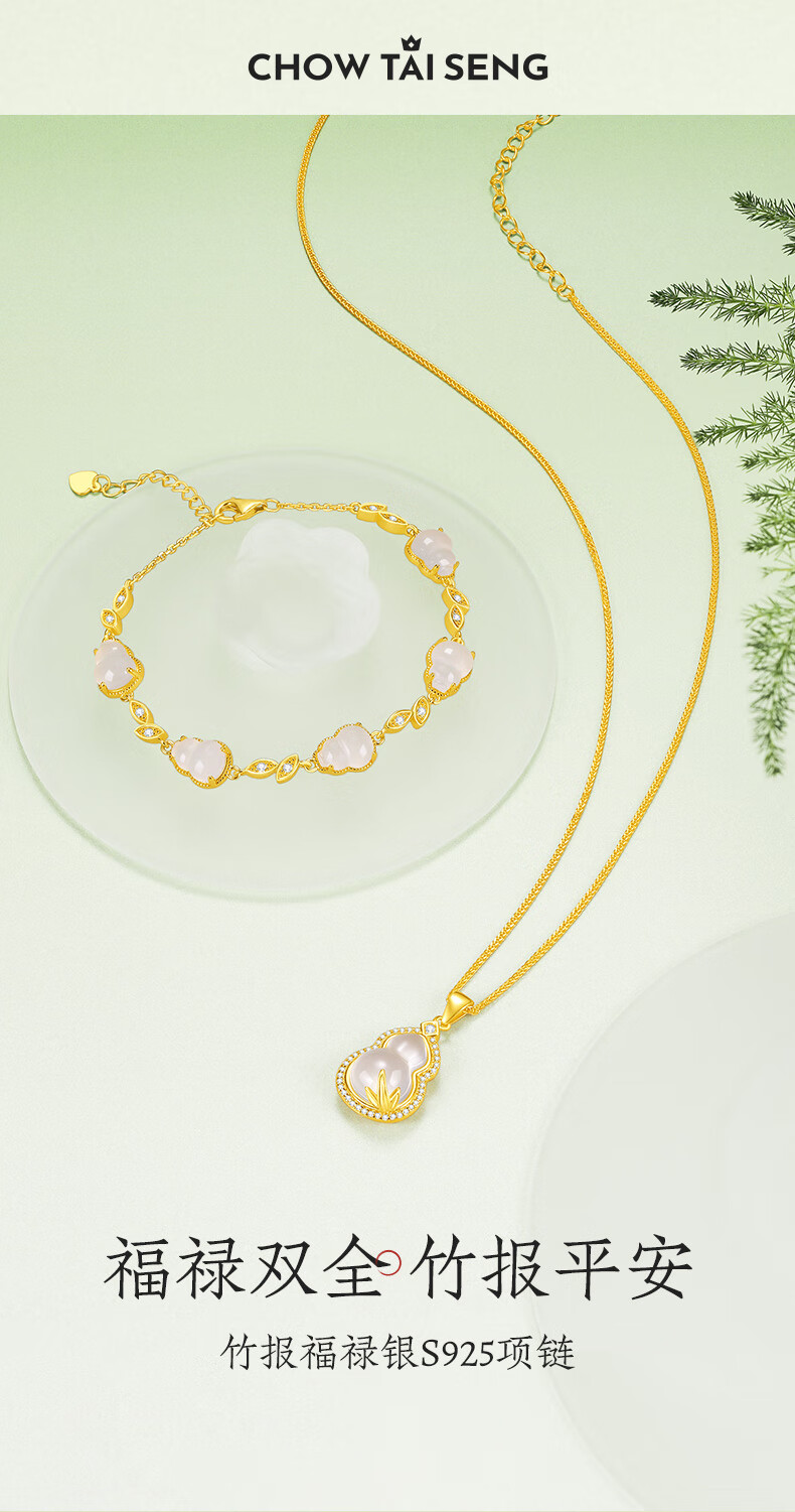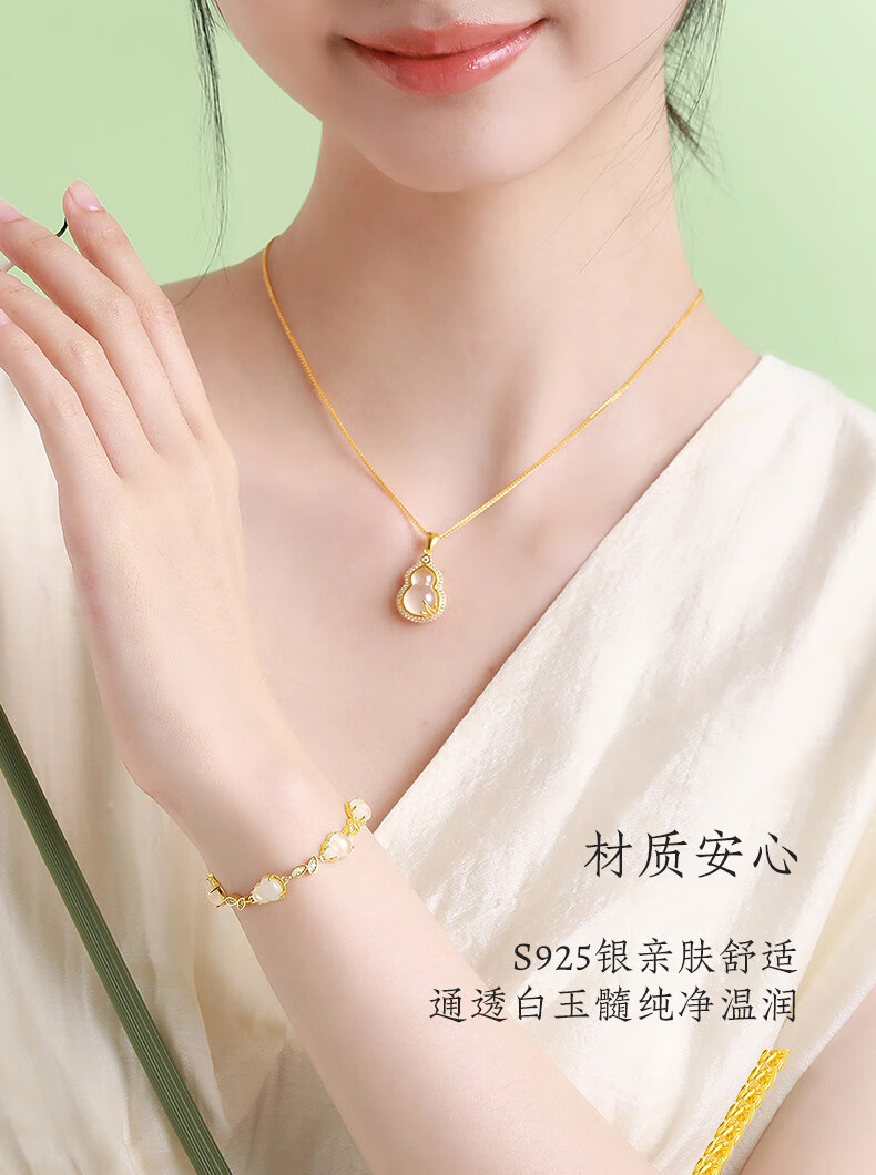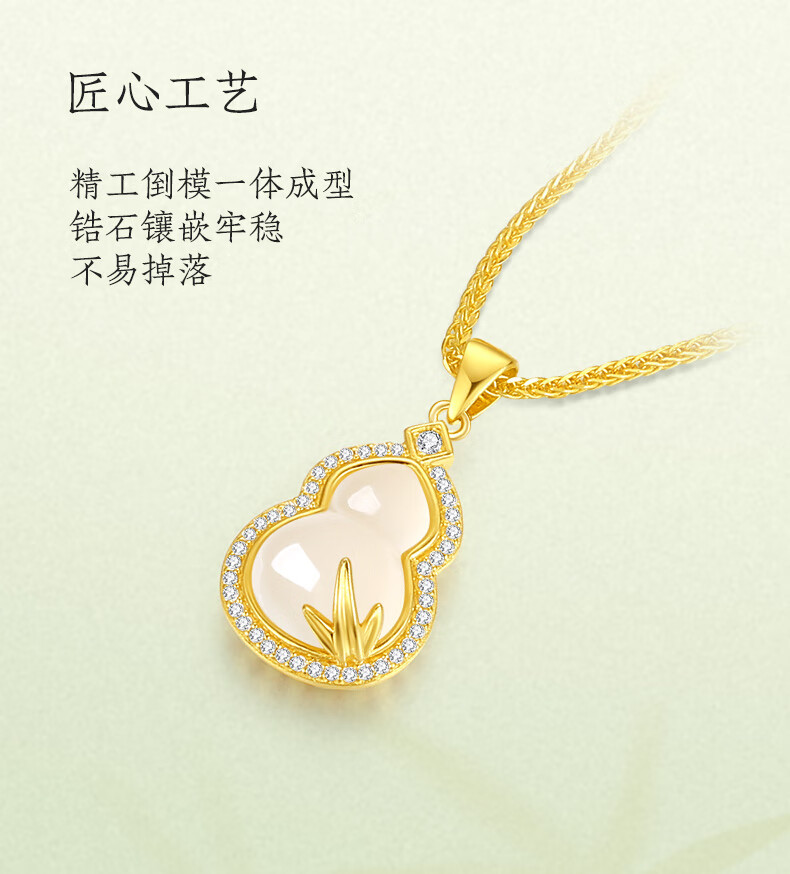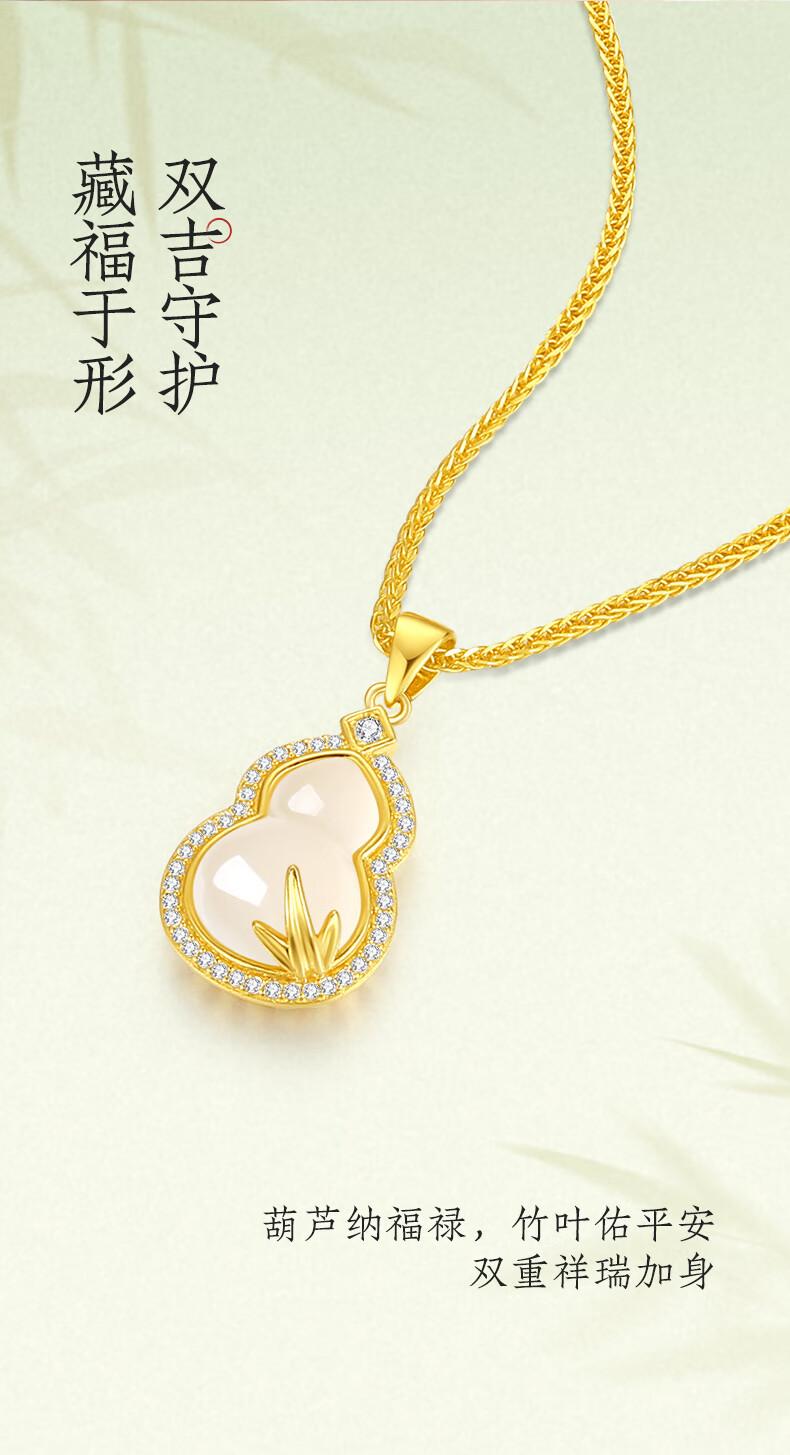 周大生【圣诞礼物】竹报福禄葫芦玉髓项链纯银女国风新中式送妈妈新款