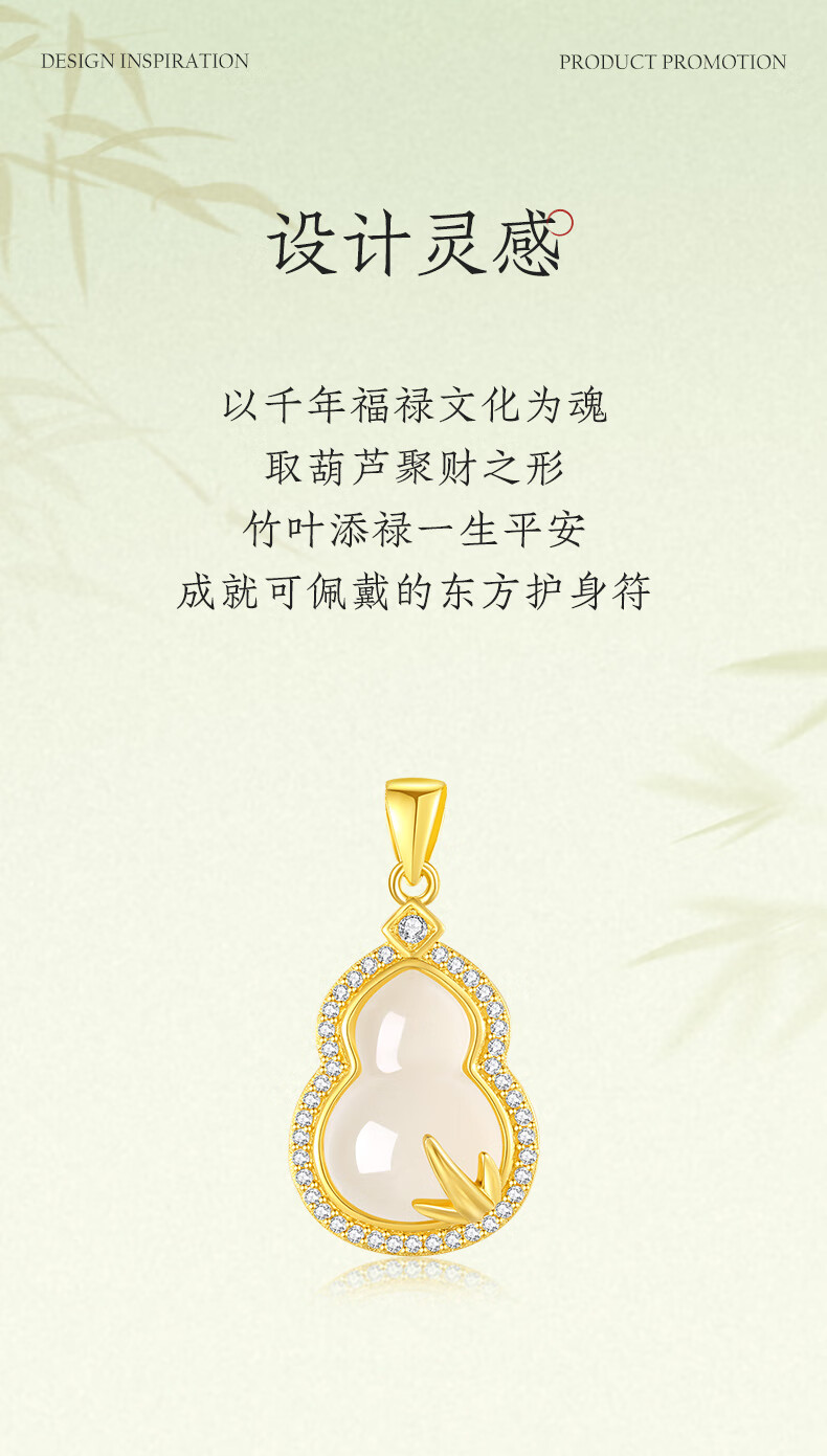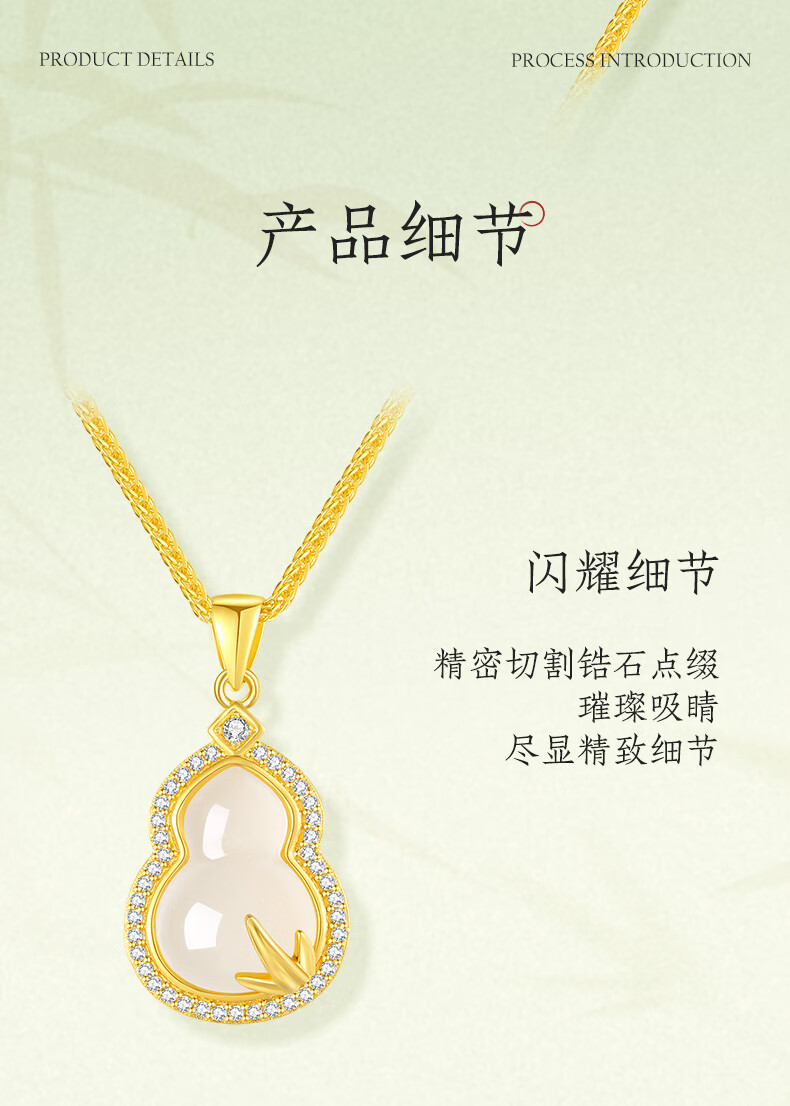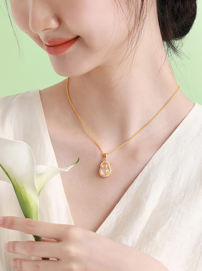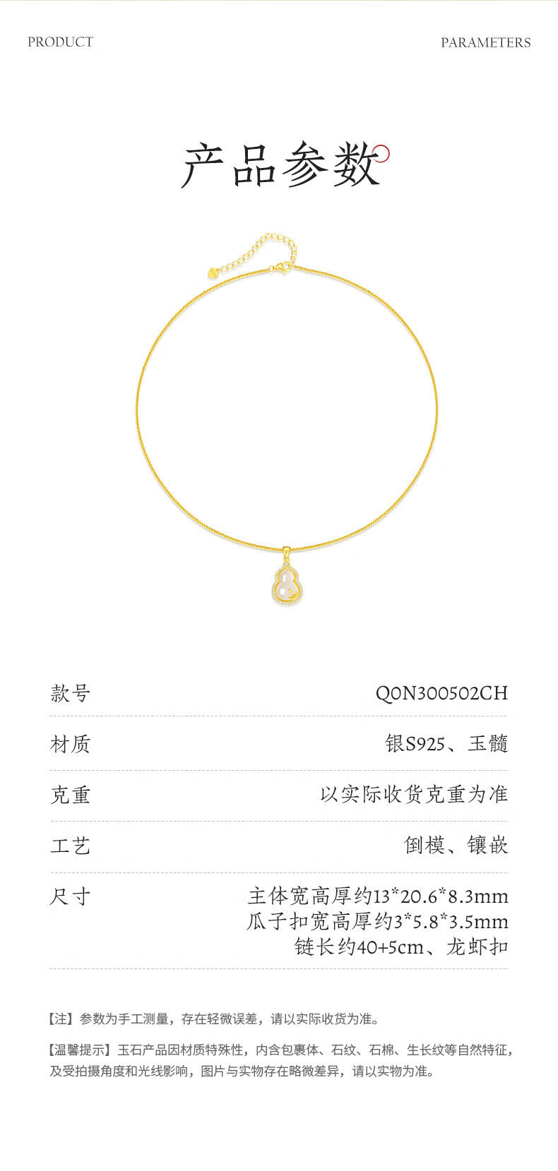 周大生【圣诞礼物】竹报福禄葫芦玉髓项链纯银女国风新中式送妈妈新款