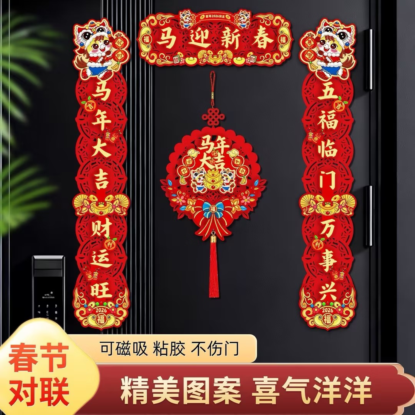 2026新款过年春节磁吸对联马年家用春联装饰新年福字入户门贴 一套