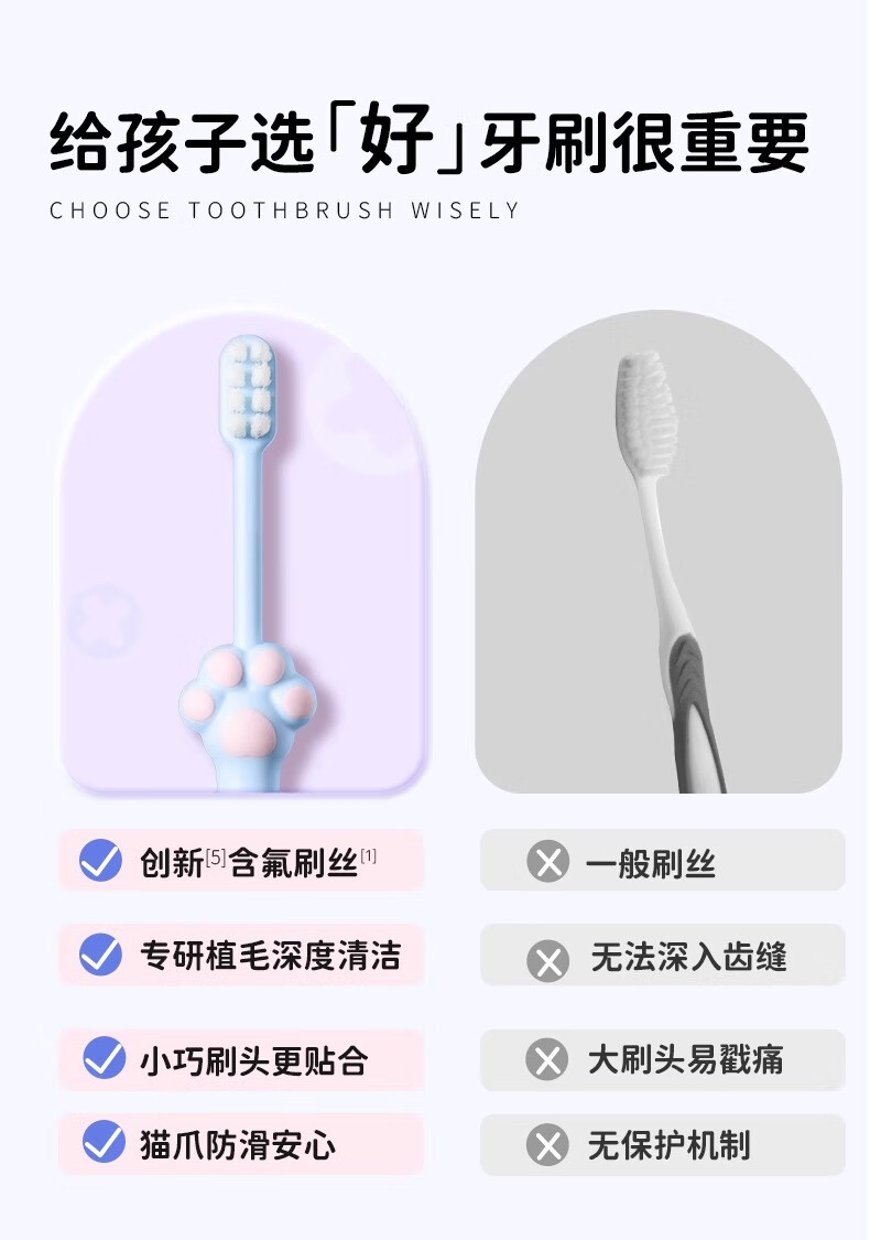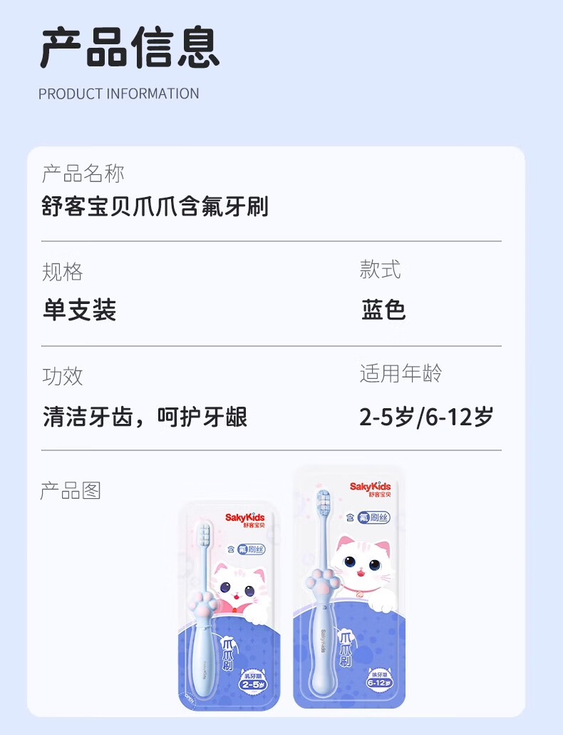 舒客宝贝儿童牙刷2-6-12岁宝宝分龄含氟防蛀换牙期郭晶晶推荐软毛猫爪牙刷 【2-12岁】哆啦护齿牙刷*4支-蓝色