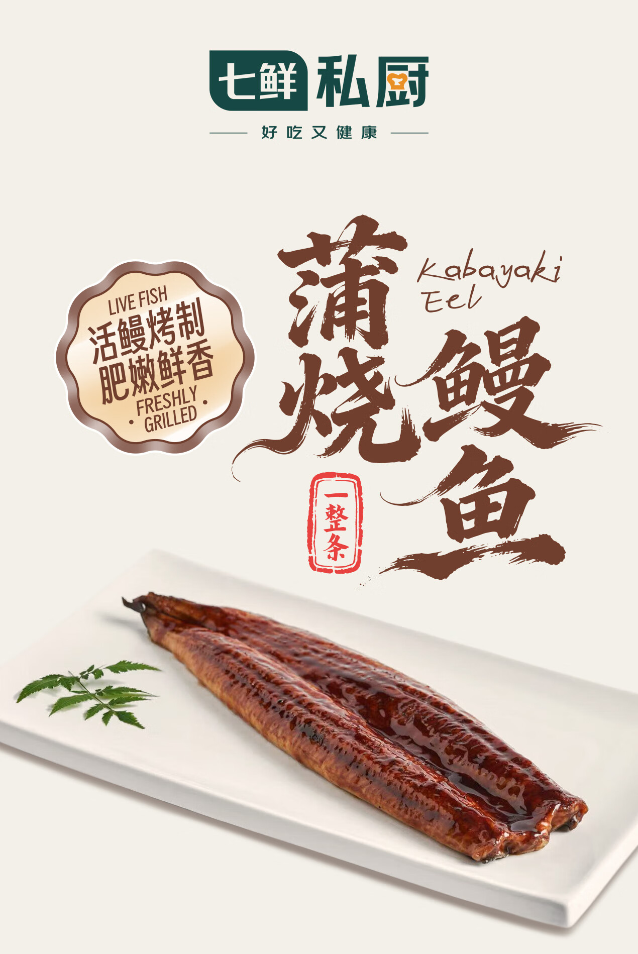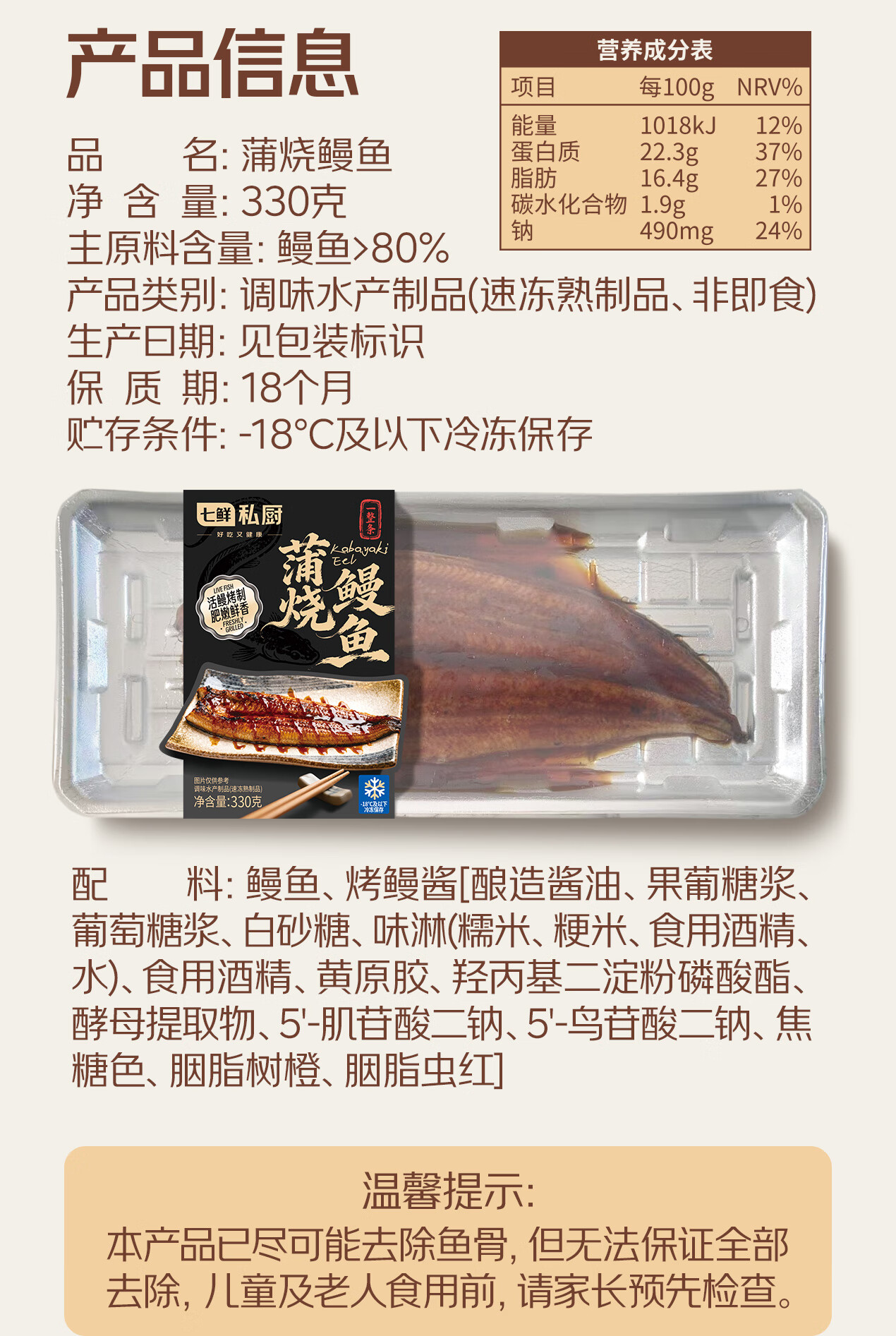 七鲜私厨整条蒲烧鳗鱼330g 海鲜预制菜 鳗鱼蒲烧加热即食生鲜宵夜