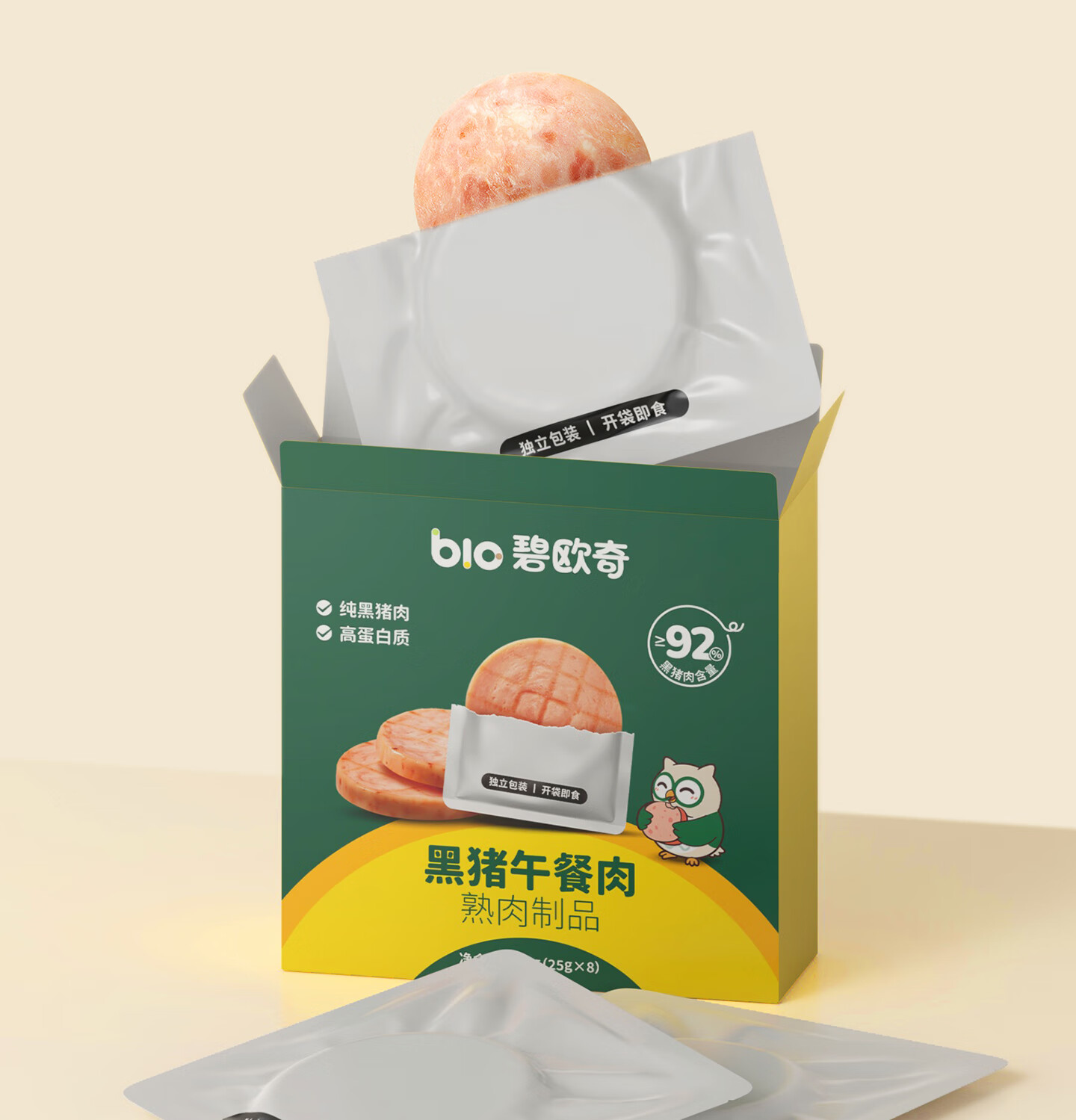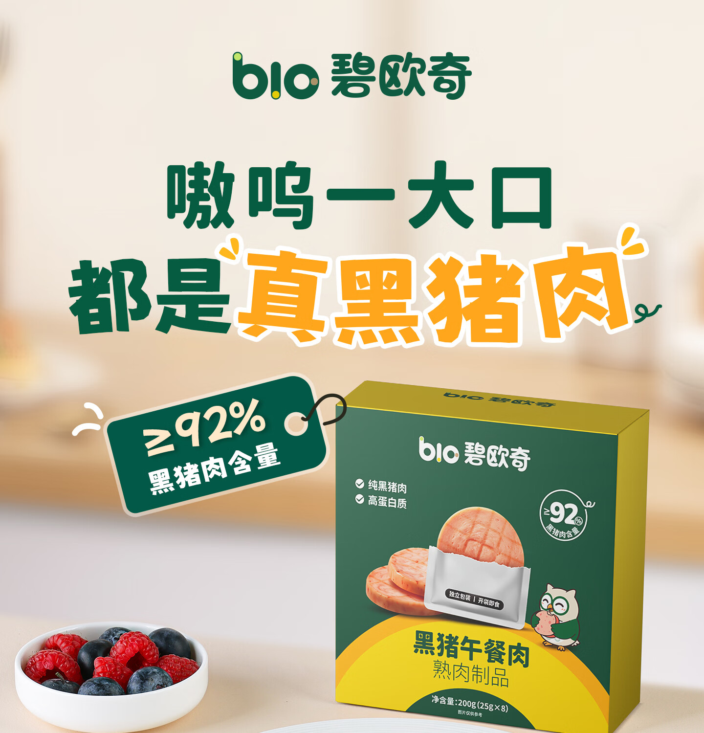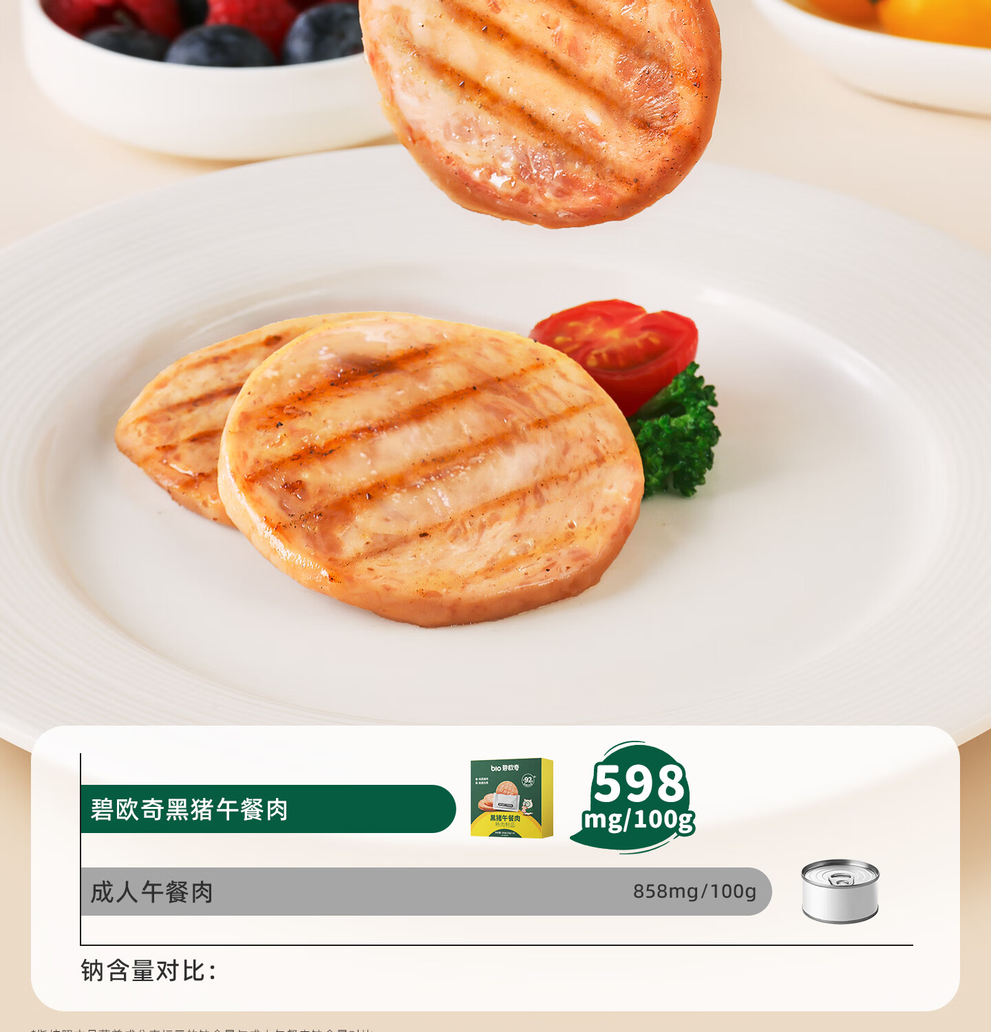 碧欧奇黑猪午餐肉儿童宝宝零食无添加香精宝宝辅食早餐肉肠零食搭配 【3盒24片|减盐39%|0反式脂肪】午餐肉200g*3