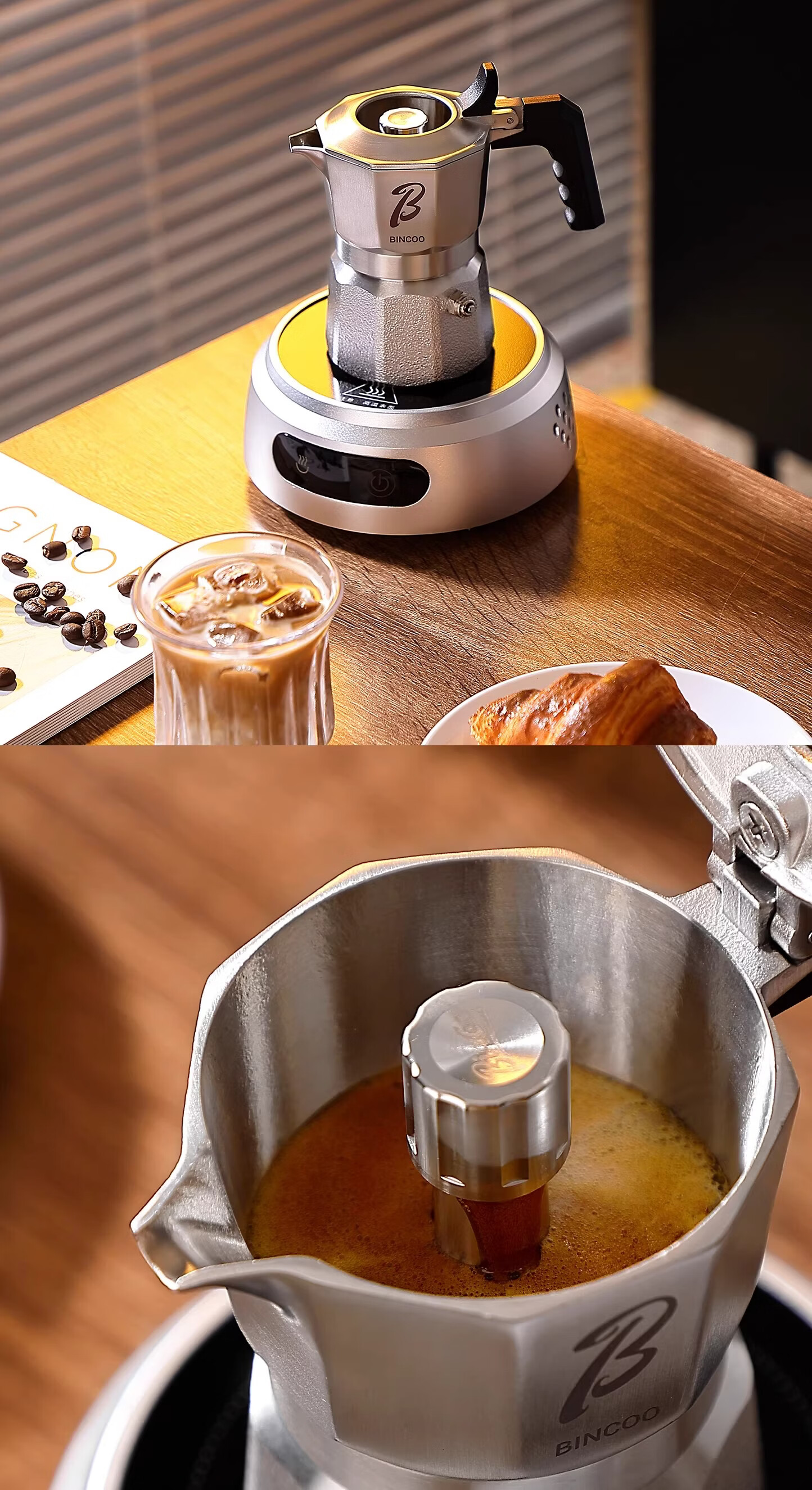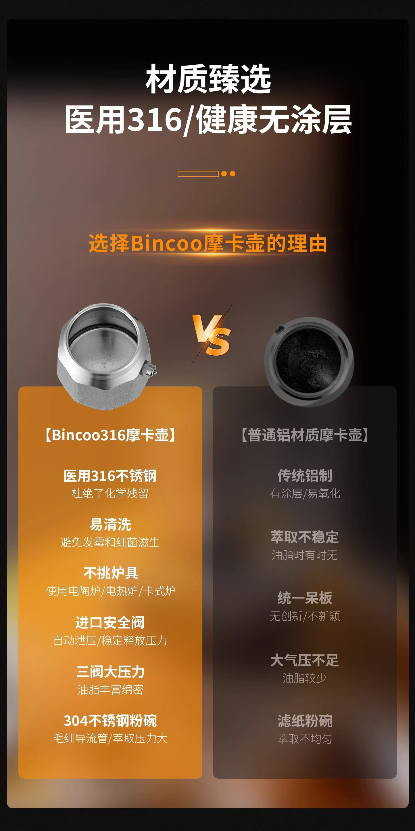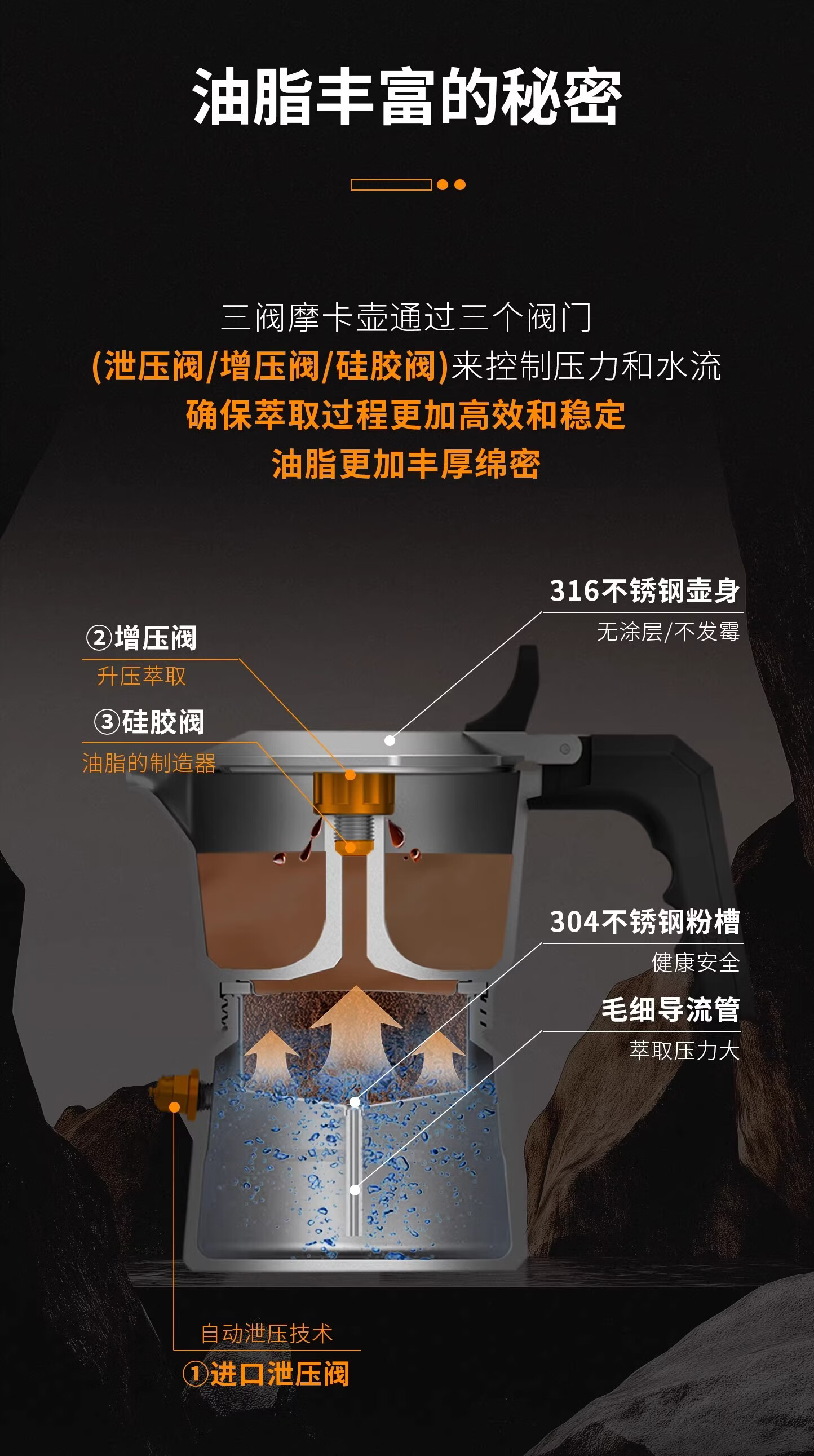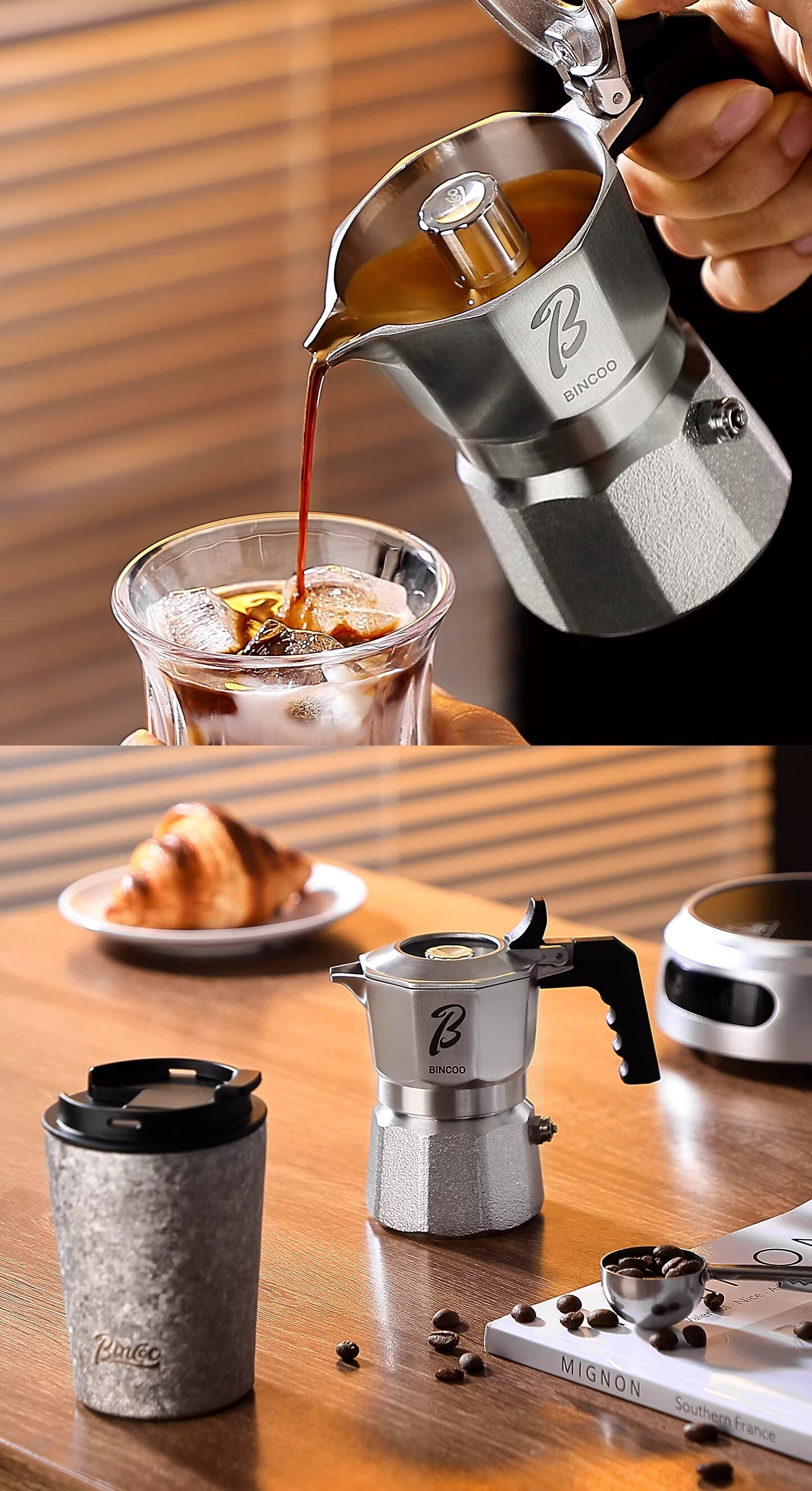 Bincoo三阀316不锈钢摩卡壶双阀煮咖啡家用小型意式咖啡机全套装 2人份摩卡壶5件套-钢芯手磨 三阀