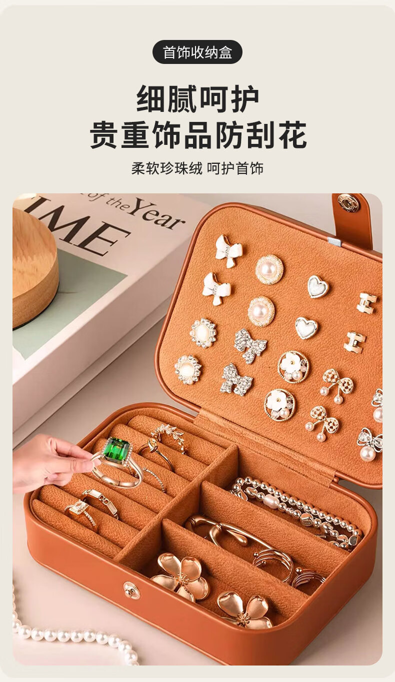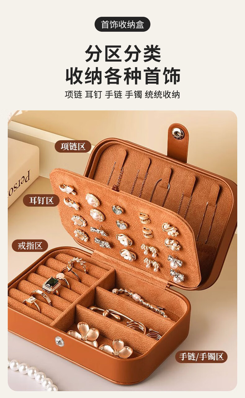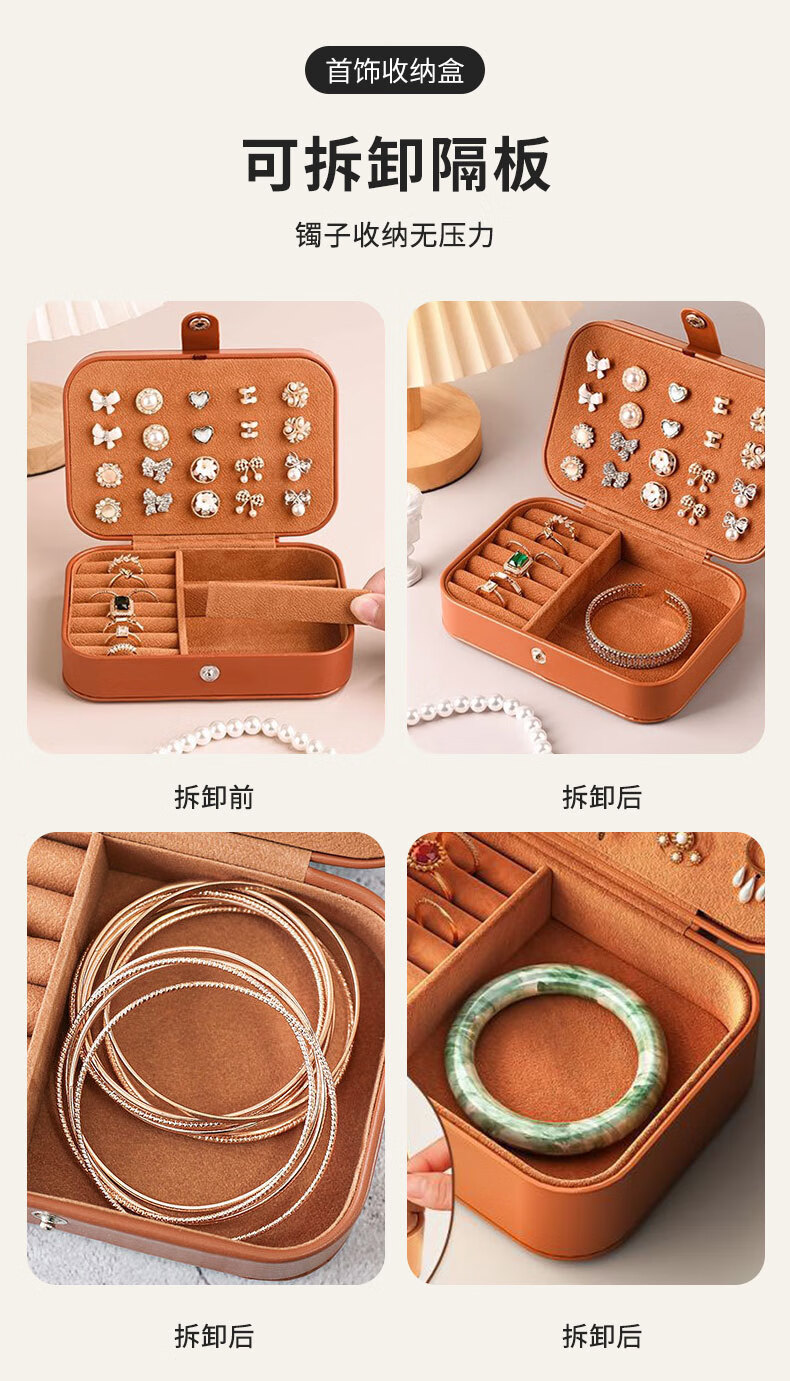 四万公里首饰盒高档精致耳环耳钉收纳盒手饰戒指项链黄金便携式饰品盒