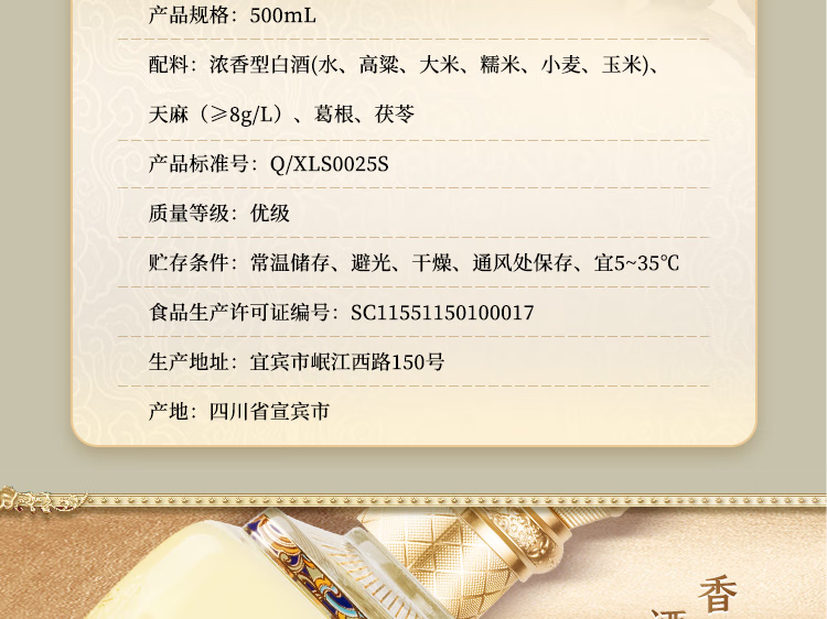 仙林 五粮液仙林生态龙虎养生壹号天麻酒52度500ml*6瓶整箱装