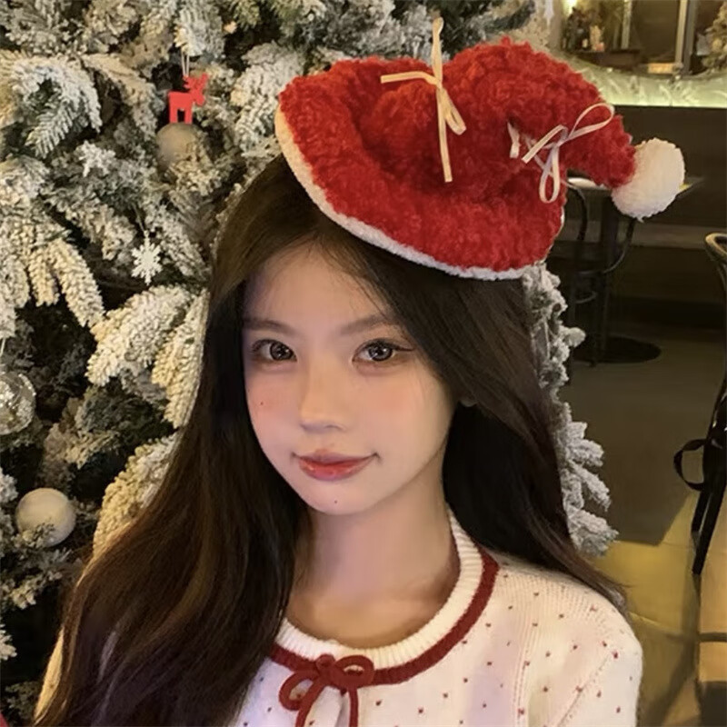 丽庆圣诞节可爱红色蝴蝶结帽子发夹女游乐园拍照氛围感头饰夹子发卡 红色五角星
