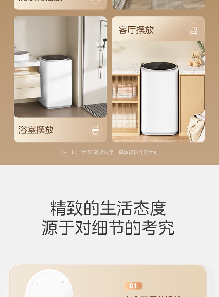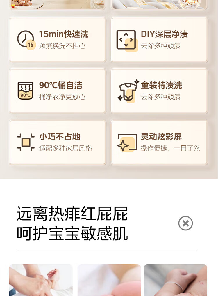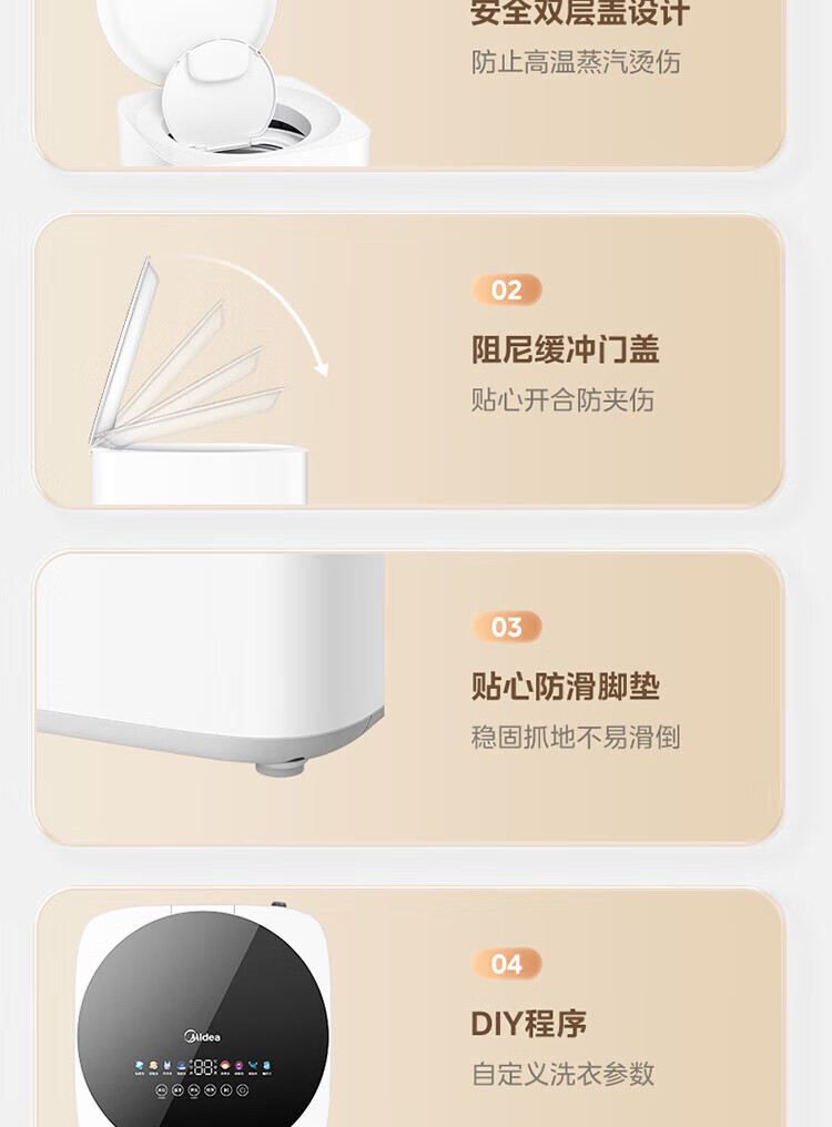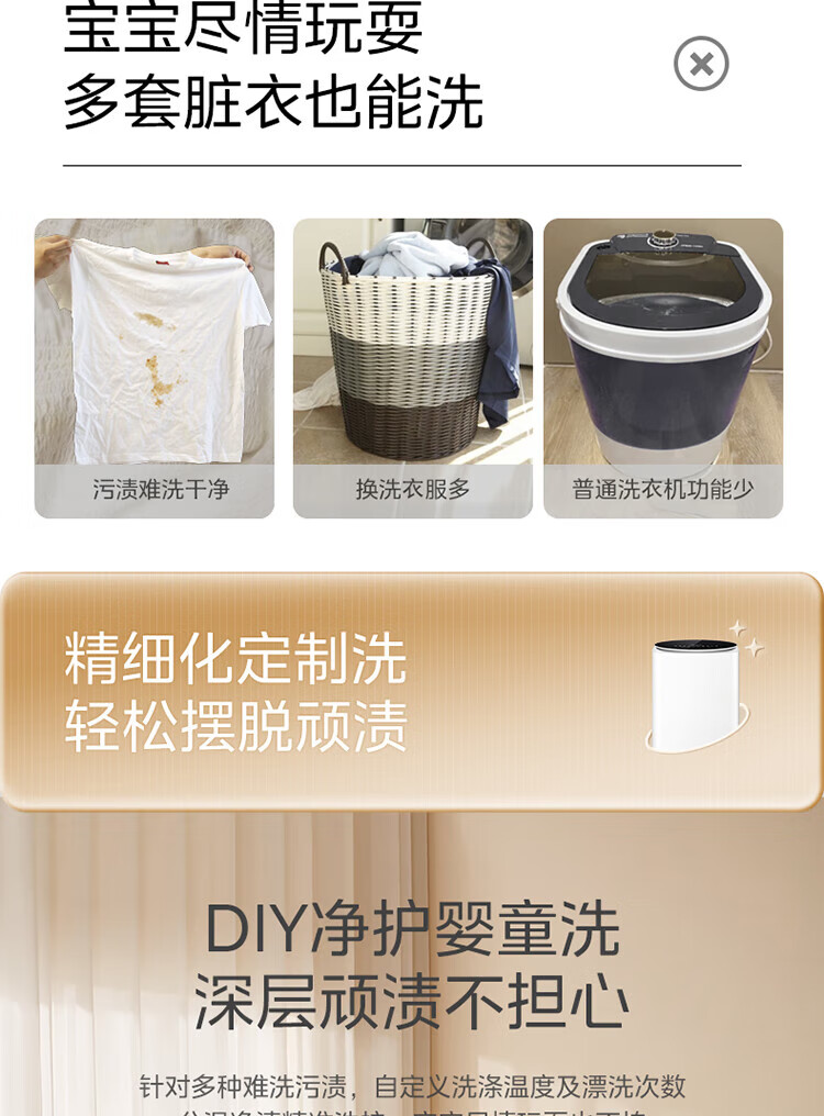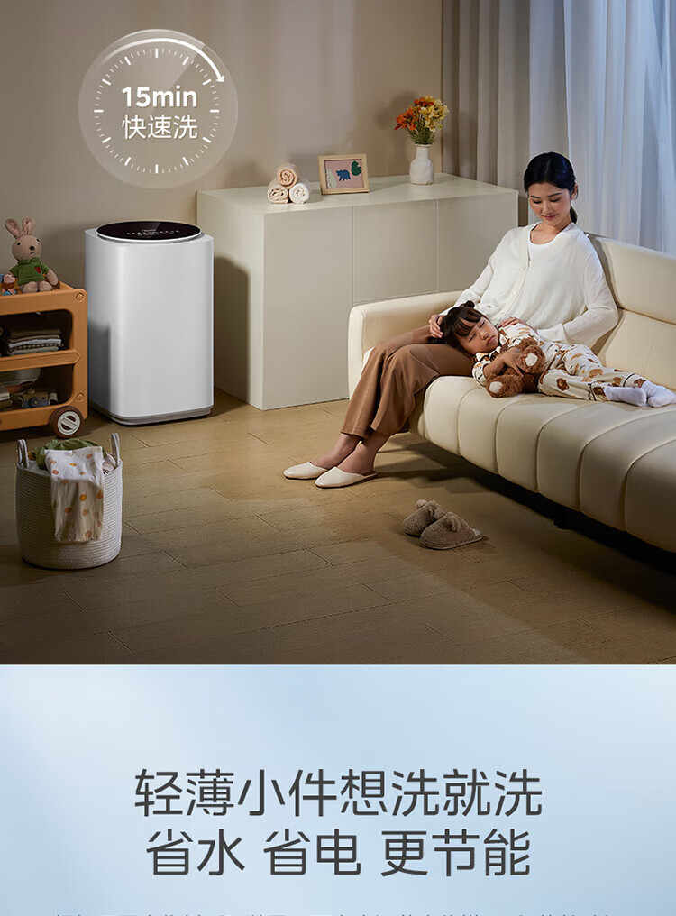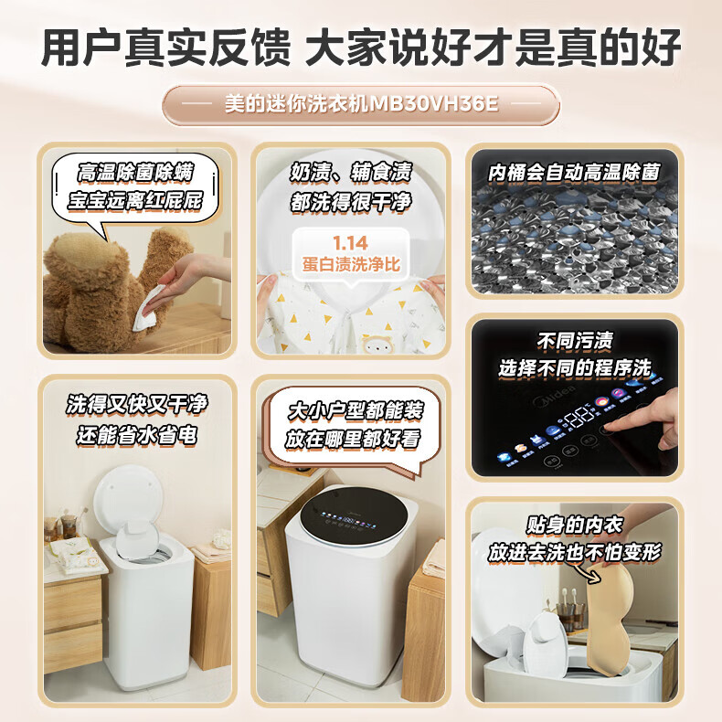 美的迷你洗衣机 3KG婴儿小型儿童内衣洗衣机 全自动波轮 高温煮洗 除菌除螨宿舍 家电国家补贴以旧换新 加热升级款+特渍洗+炫彩屏