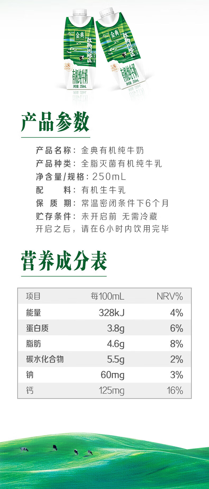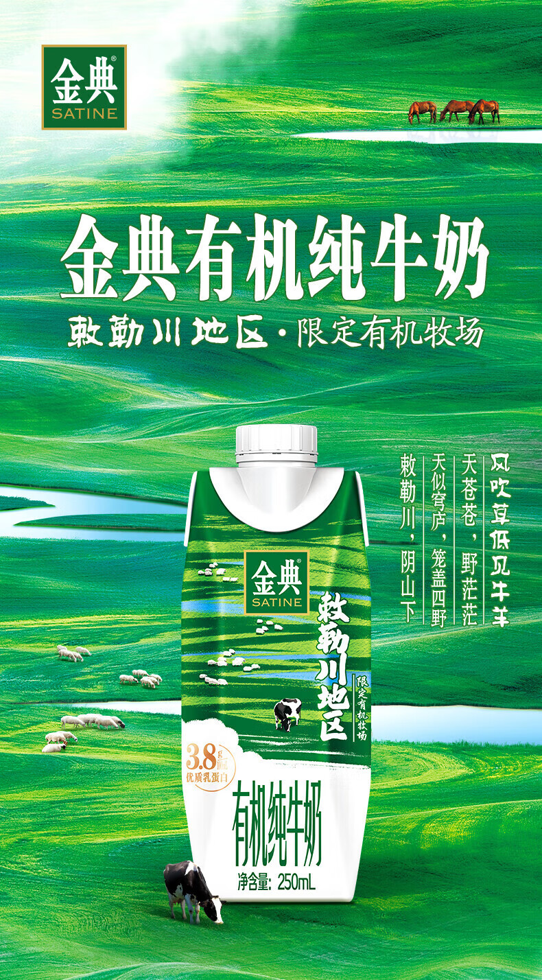 金典有机纯牛奶梦幻盖250ml*10盒(敕勒川限定牧场) 3.8g乳蛋白 8月产 金典有机纯牛奶梦幻盖