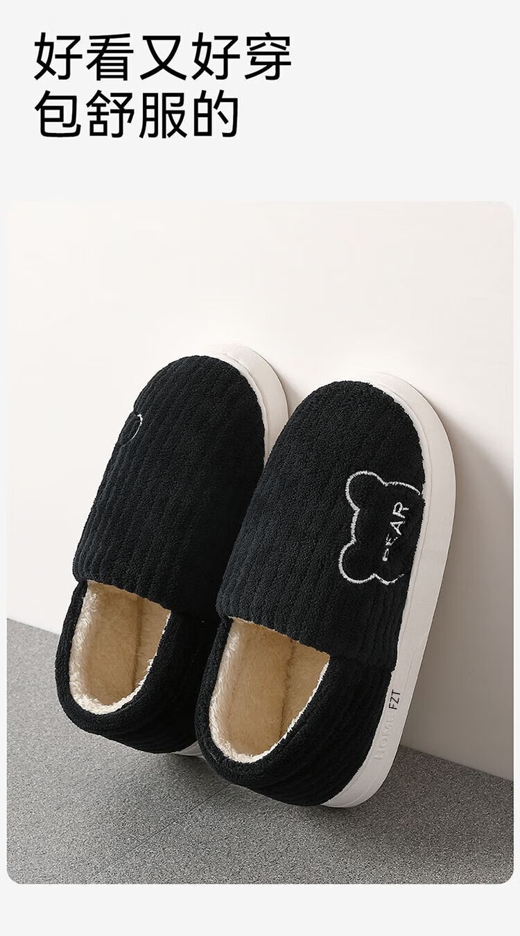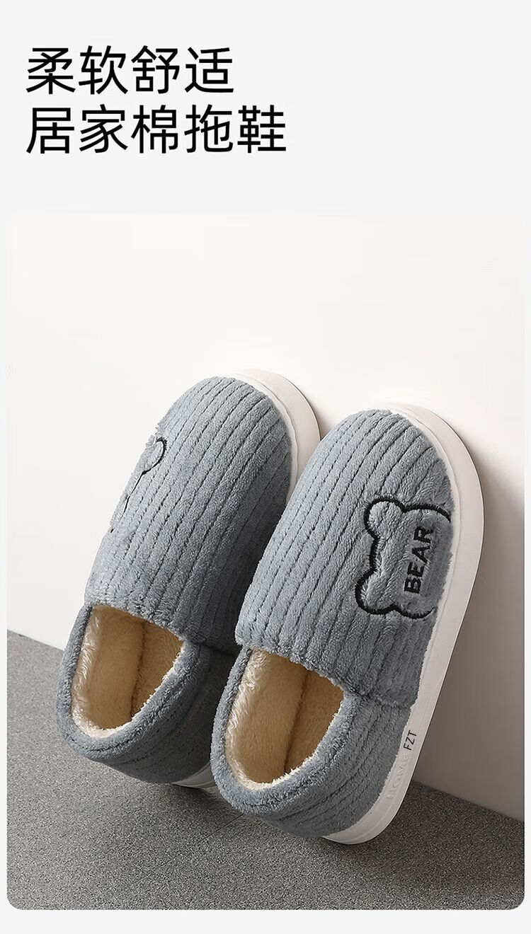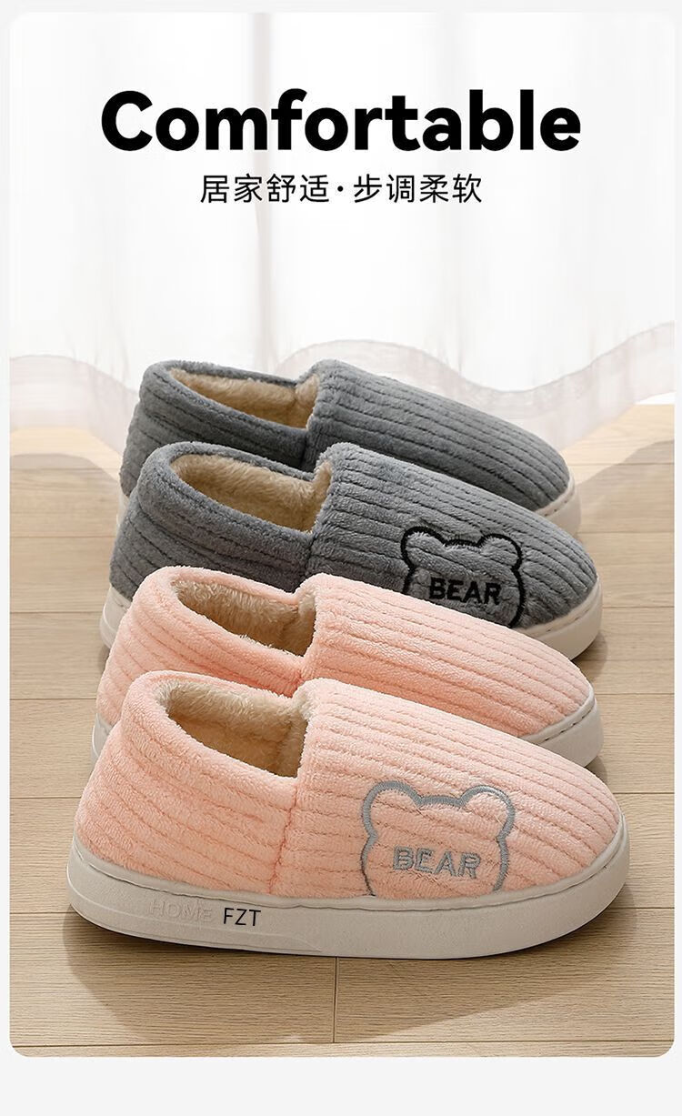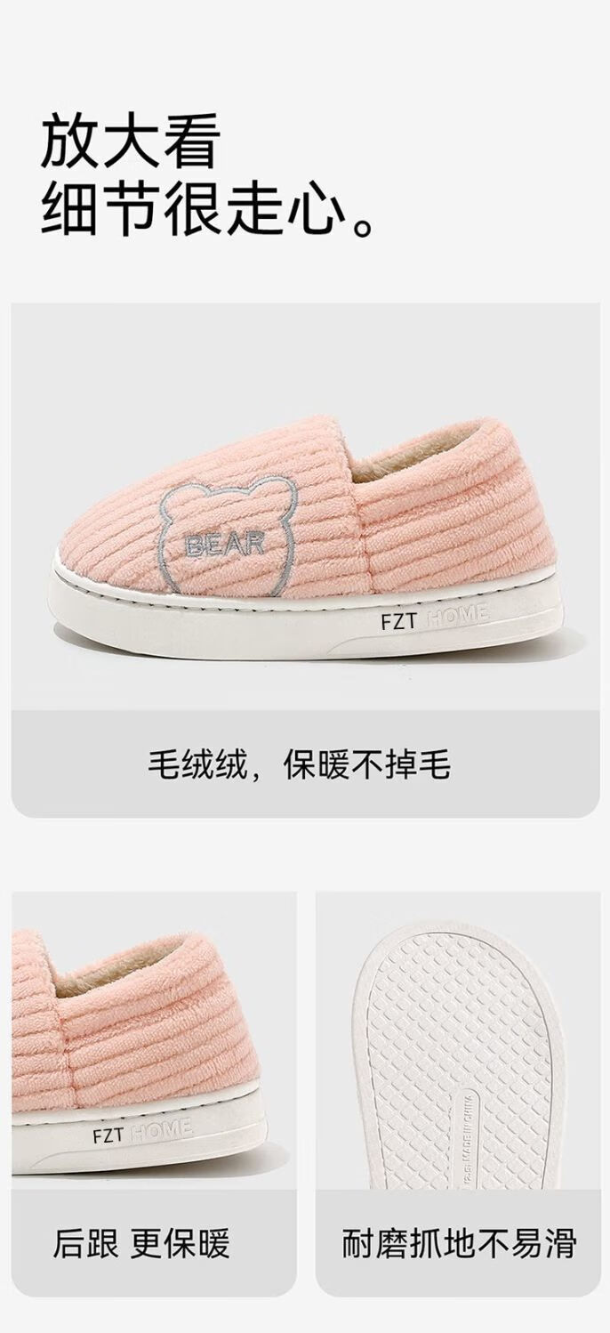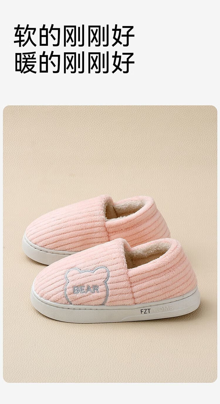 FZT包跟棉拖鞋女2025秋冬新款防滑防臭室内家居简约毛绒绒棉鞋男外穿 粉色 38-39 适合37-38【内长235mm】