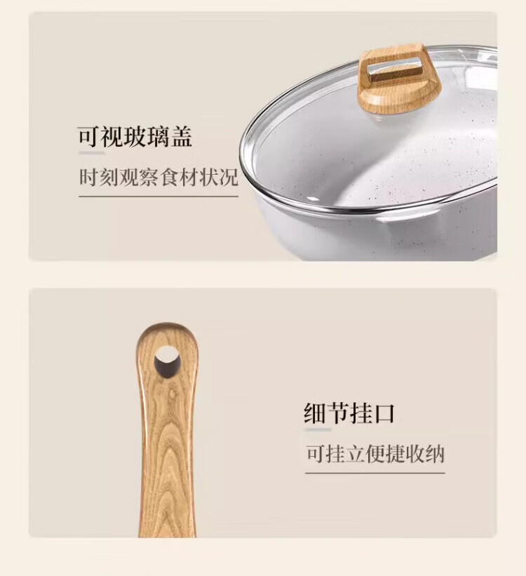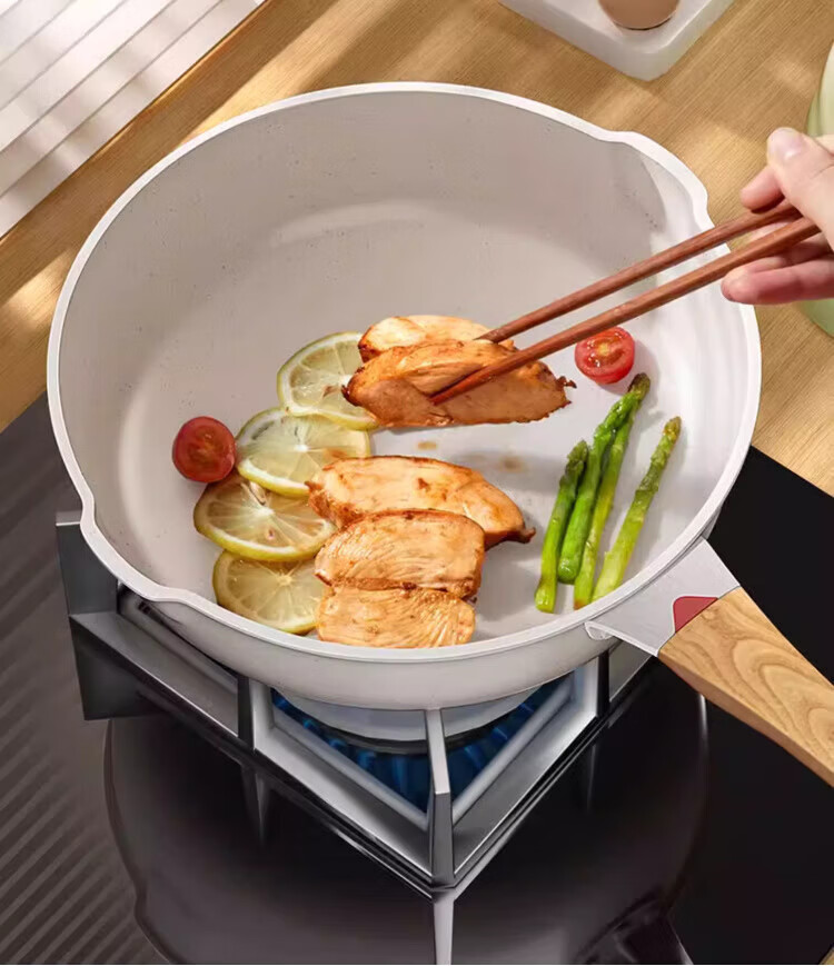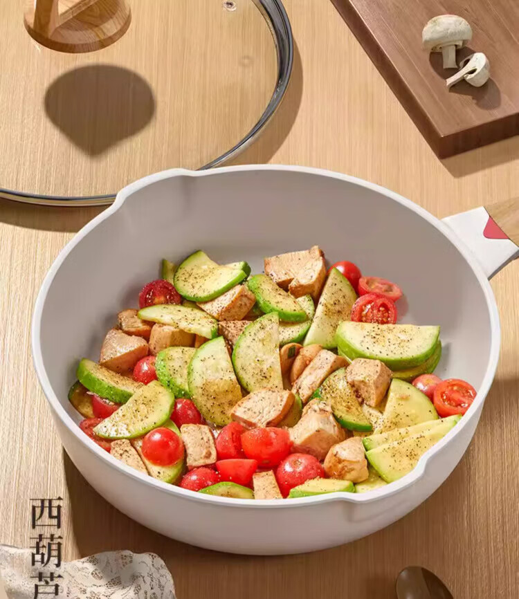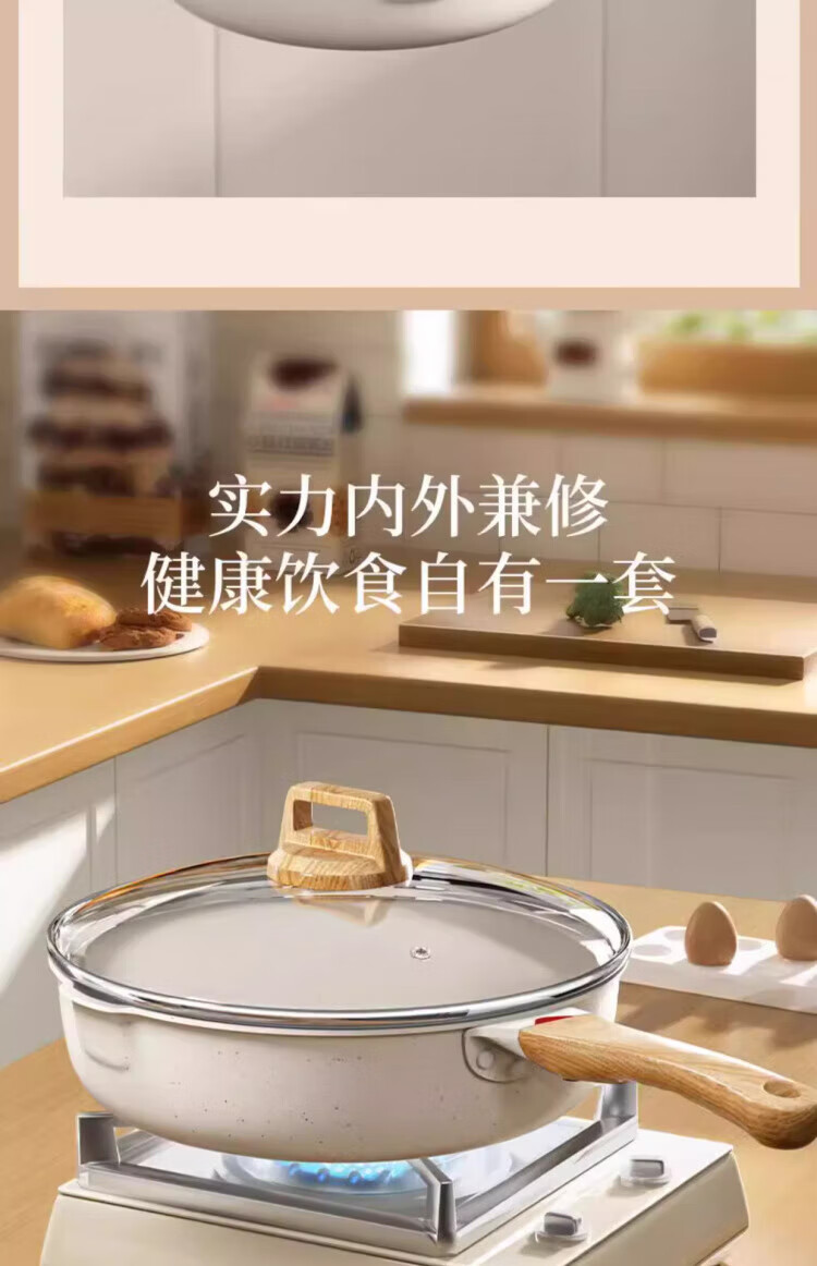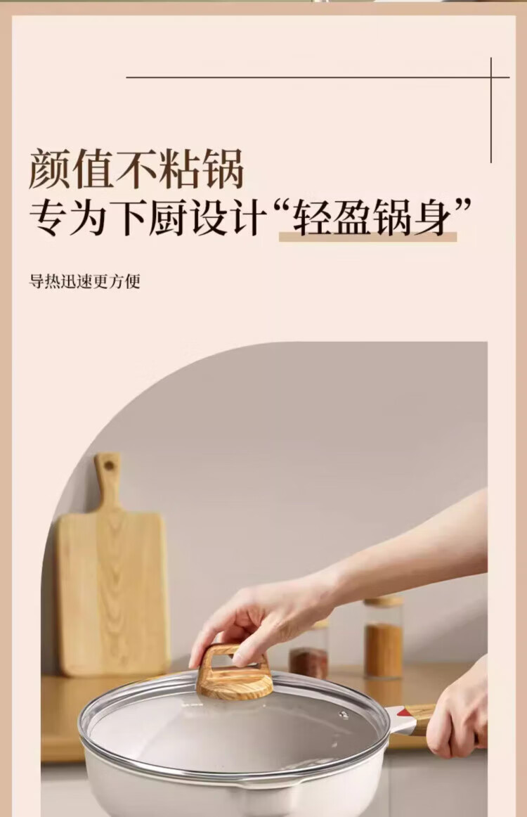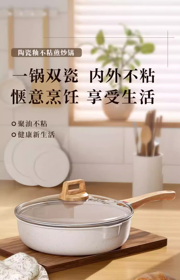 SSIIXX日本品牌新款陶瓷不粘锅家用煎炒锅多功能炒锅平底锅通用炉灶炒菜 炒锅带盖+硅胶三件套 28cm