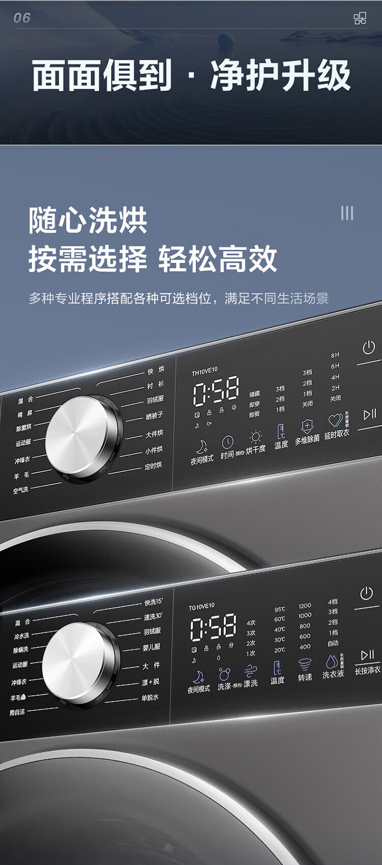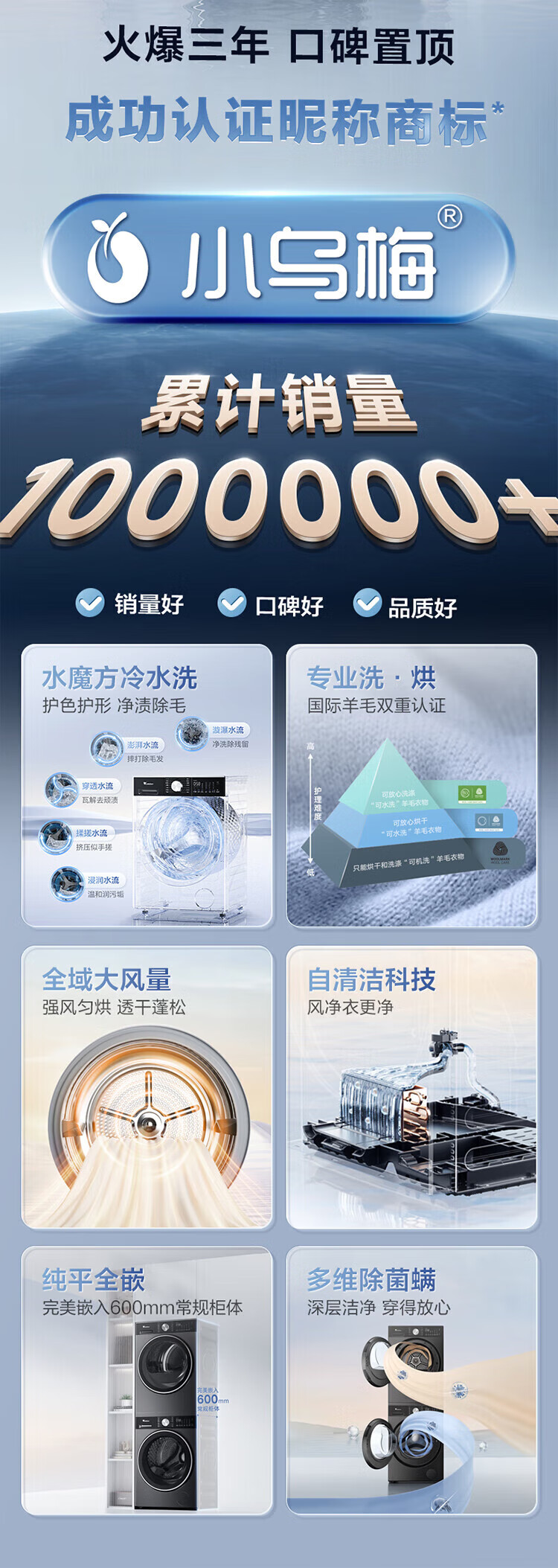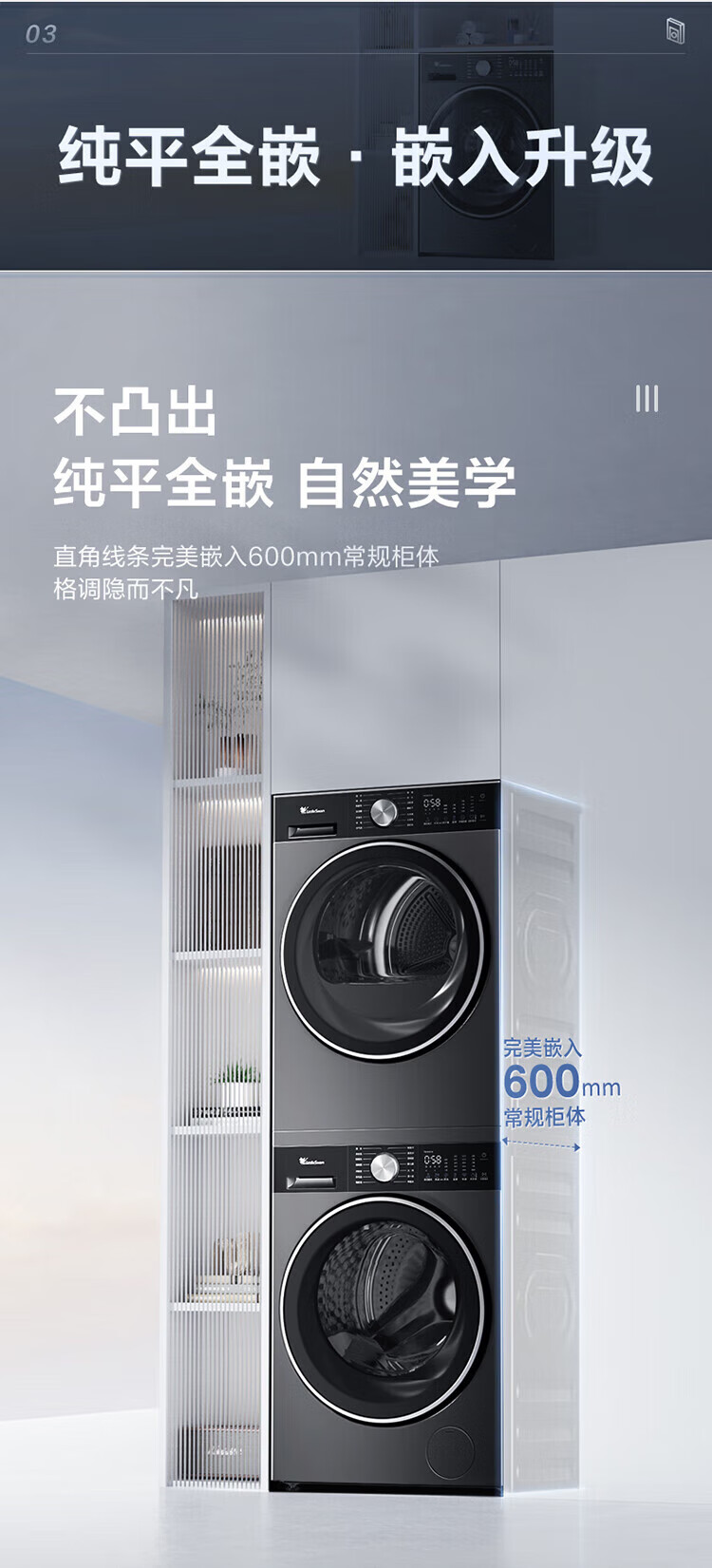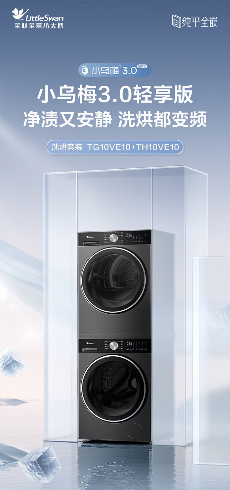 小天鹅(LittleSwan)小乌梅3.0轻享版洗烘套装纯平全嵌 10kg滚筒洗衣机+变频热泵烘干机 一级能效 银灰 TG10VE10+TH10VE10
