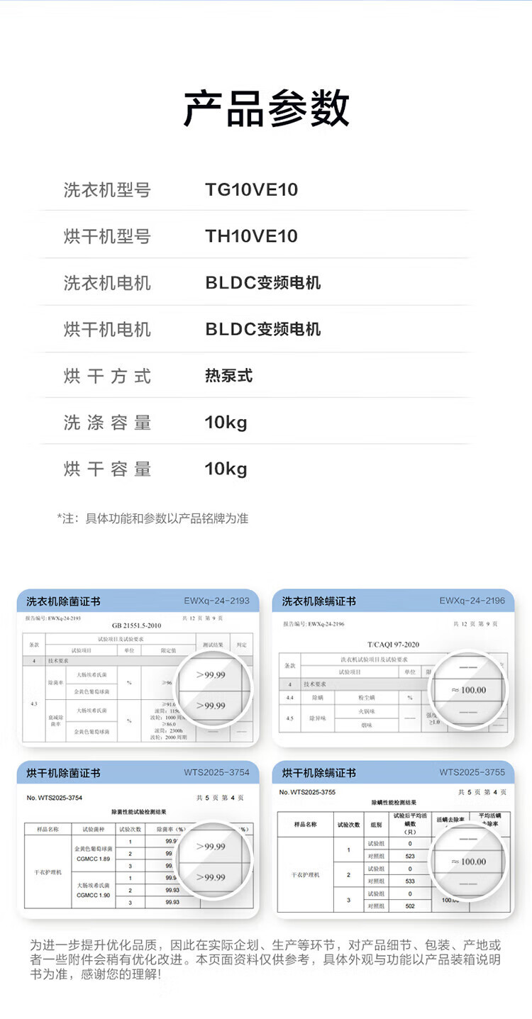 小天鹅(LittleSwan)小乌梅3.0洗烘套装10KG全自动滚筒洗衣机+10KG变频热泵烘干机 纯平全嵌一级能效 TG10VE40+TH10VE40