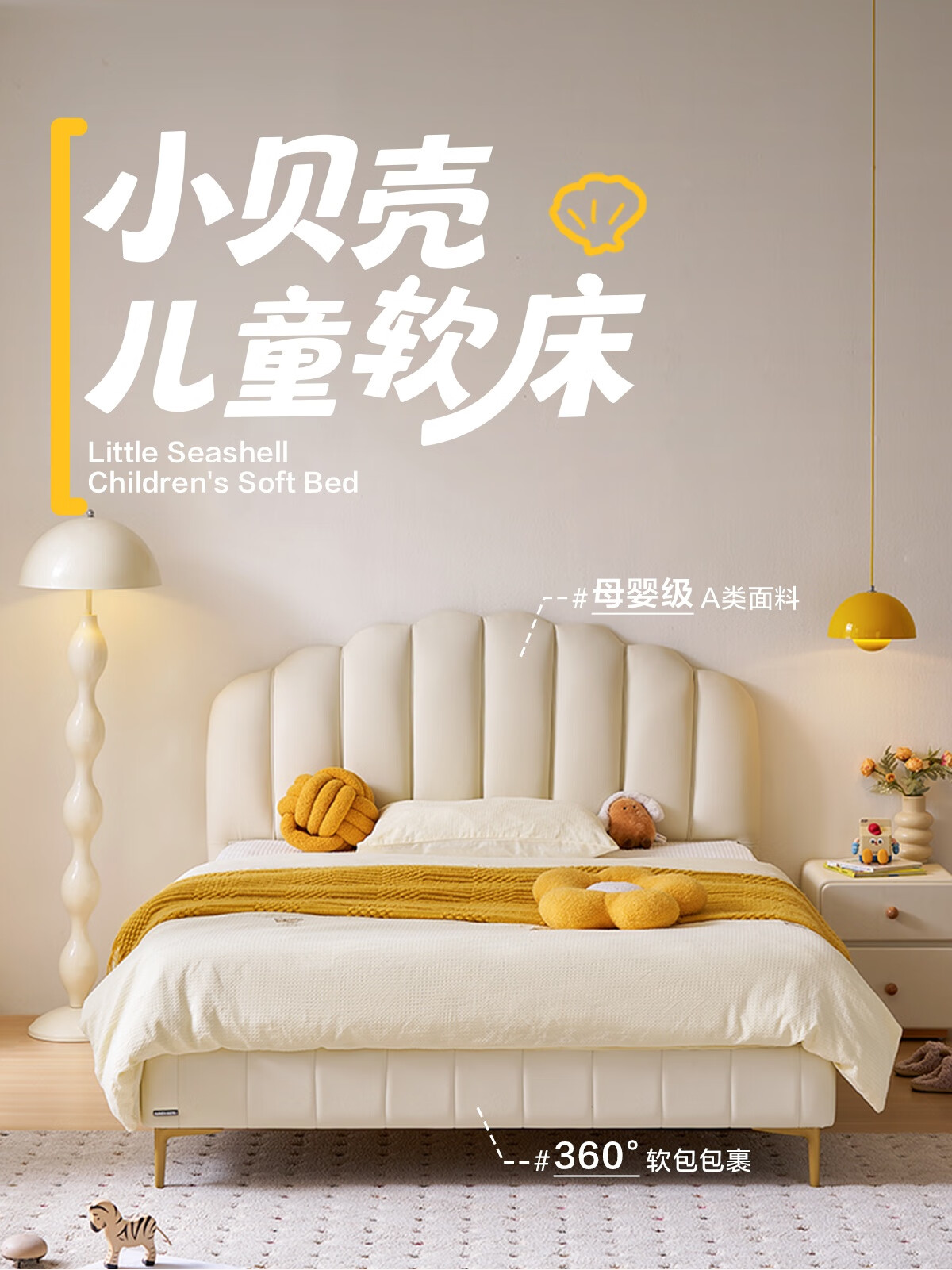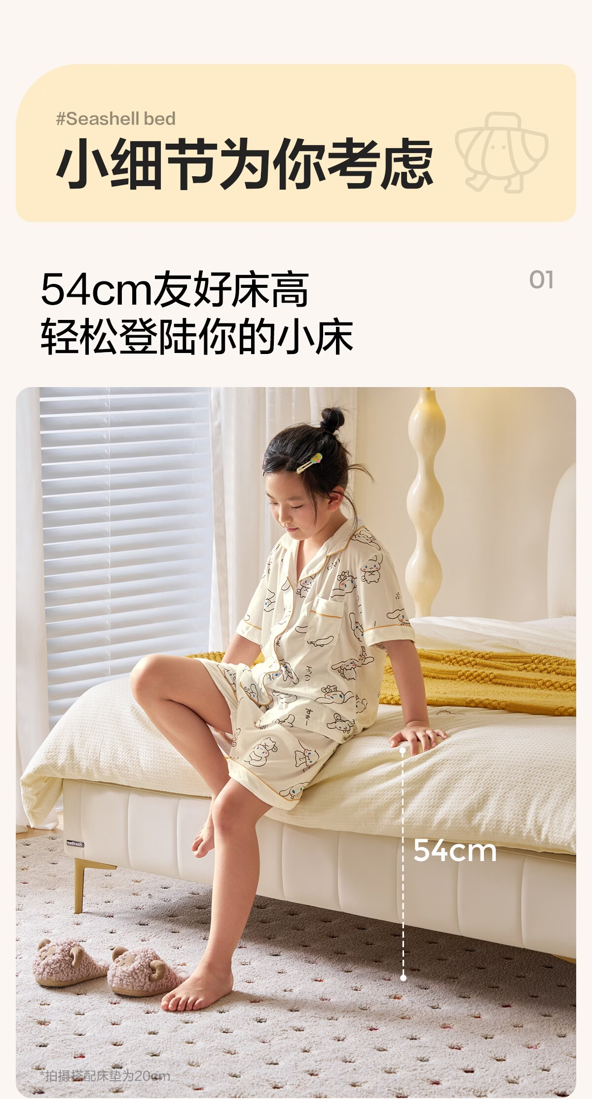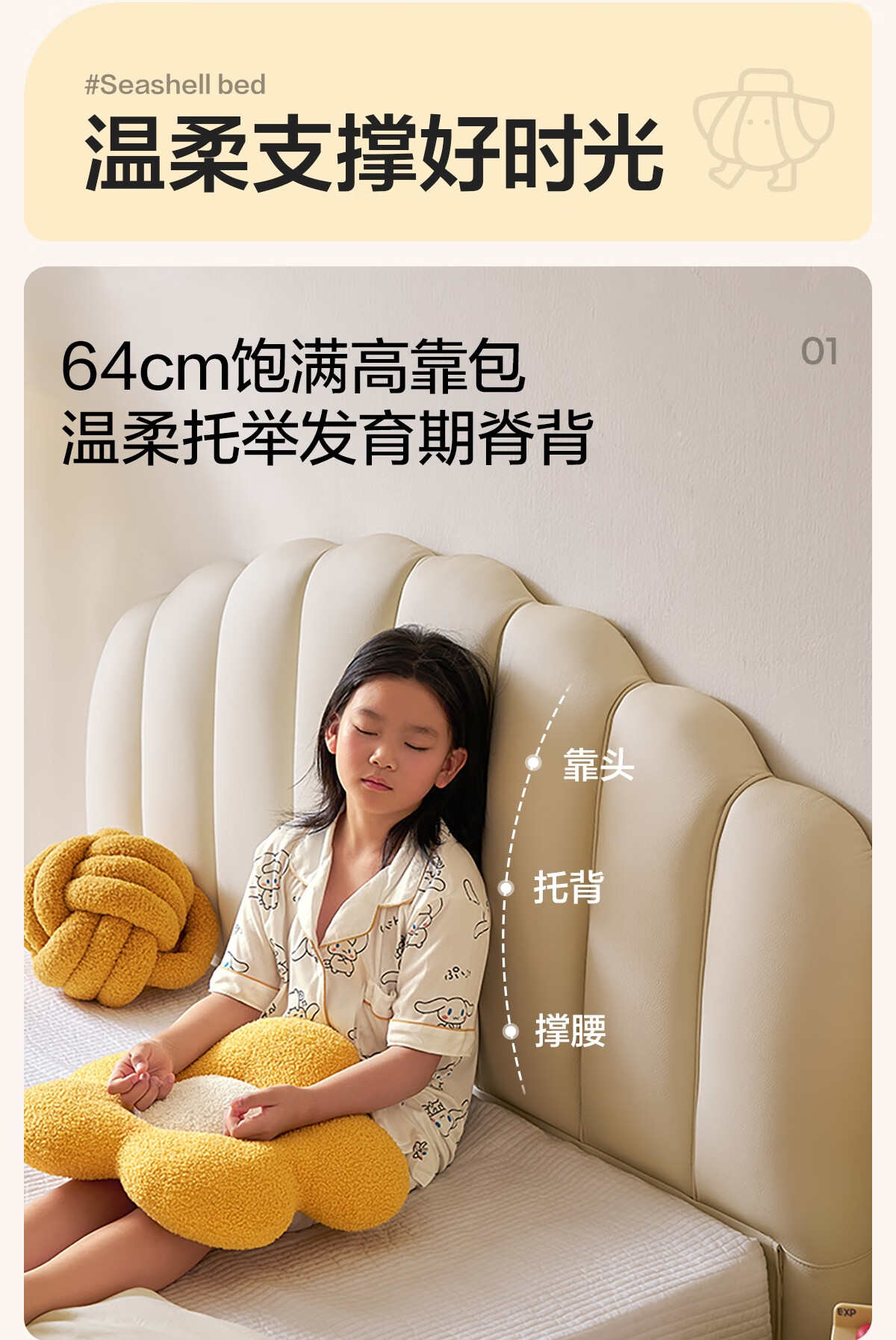 林氏家居贝壳儿童床公主床主卧儿童家具简约家用轻奢PC075 【乳酪白】单床+床垫 1.5米*2米