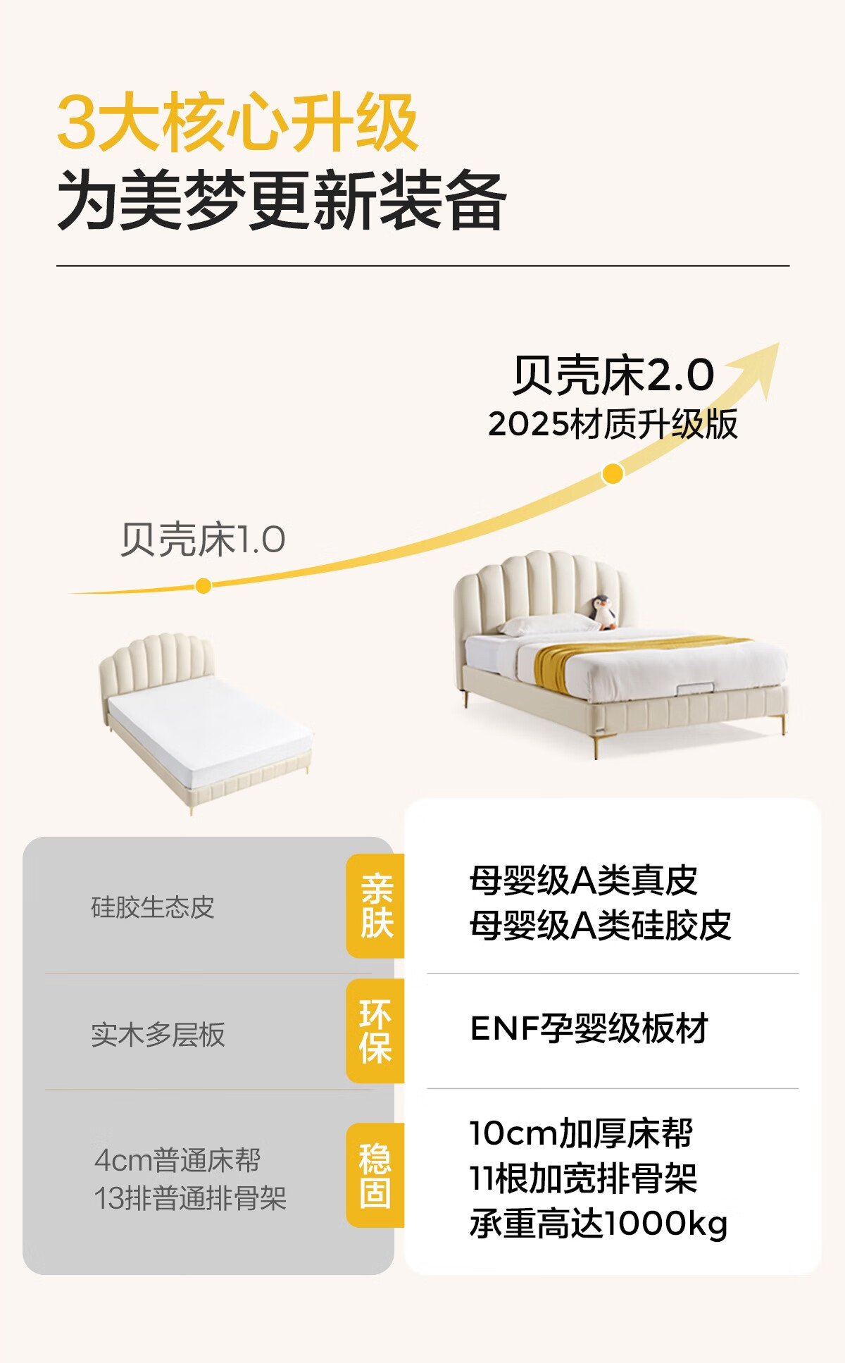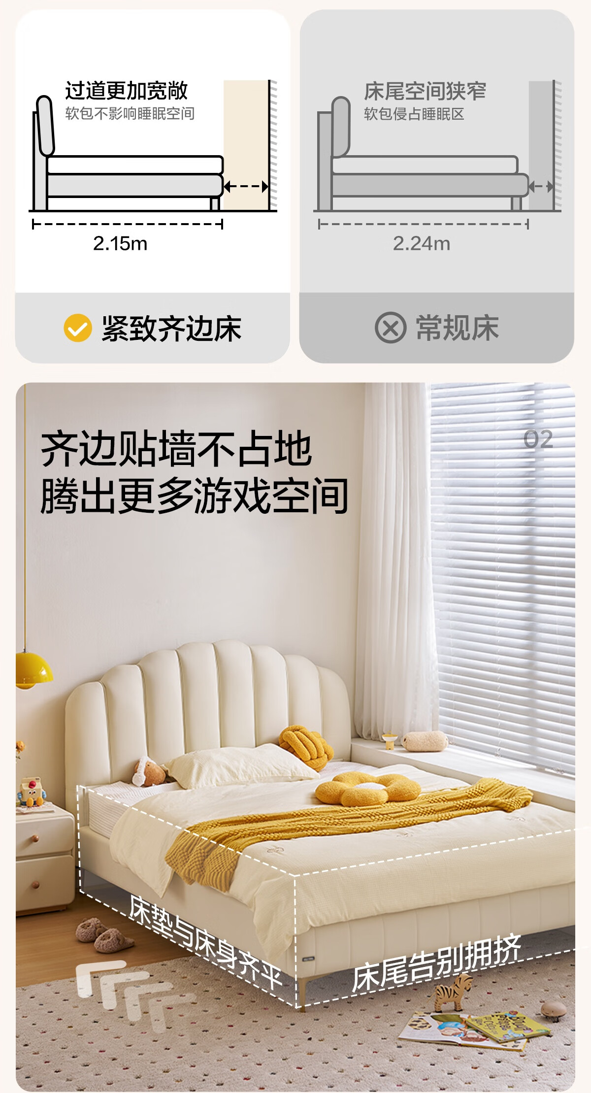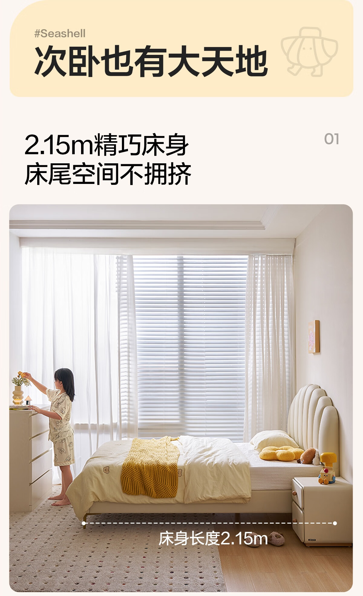 林氏家居贝壳儿童床公主床主卧儿童家具简约家用轻奢PC075 【乳酪白】单床+床垫 1.5米*2米