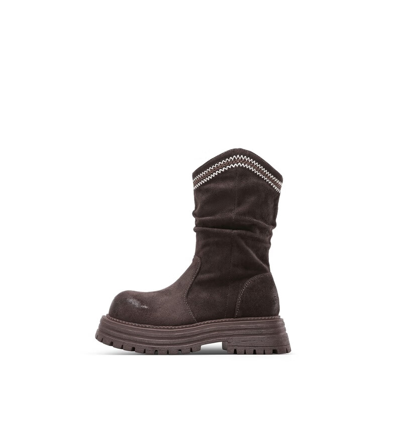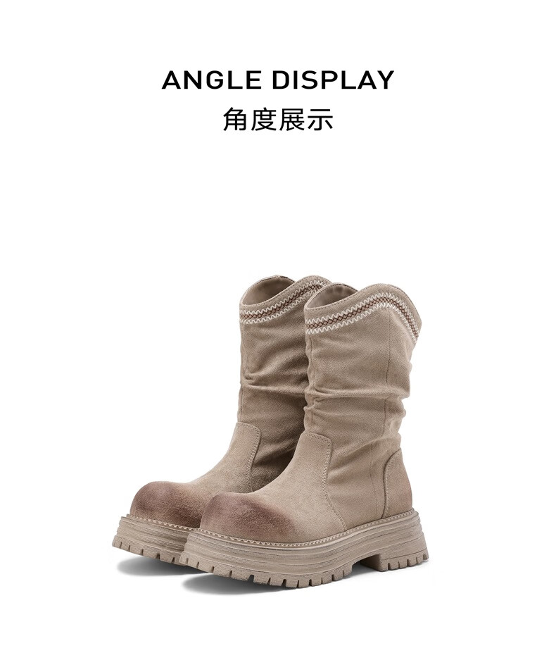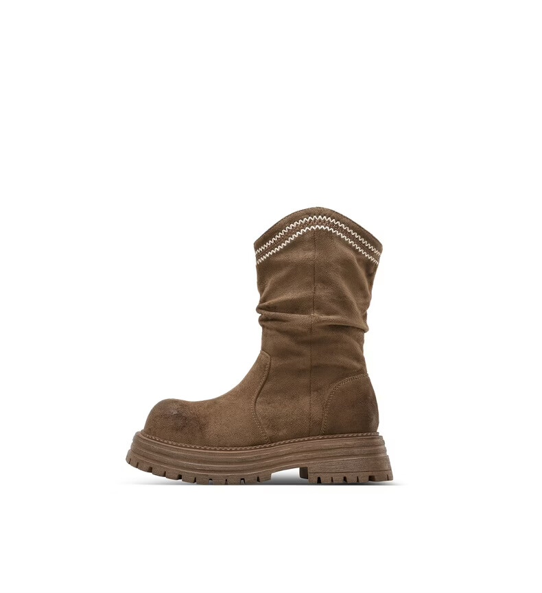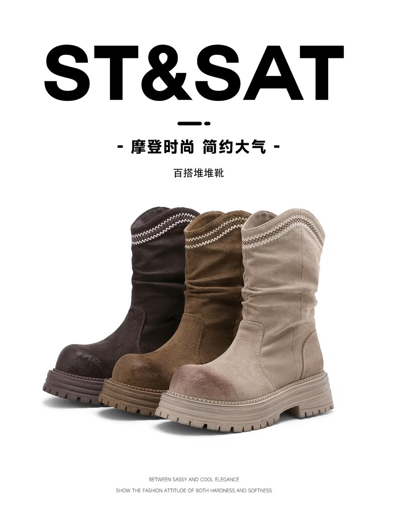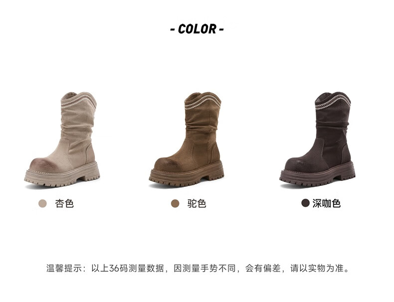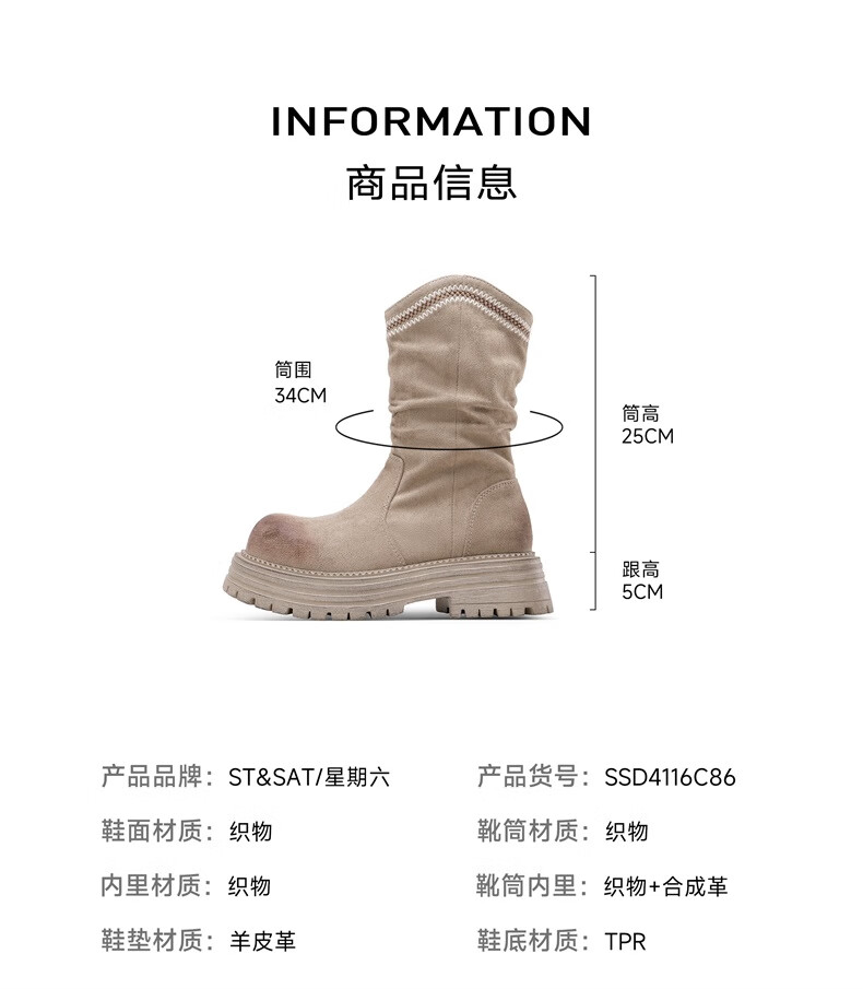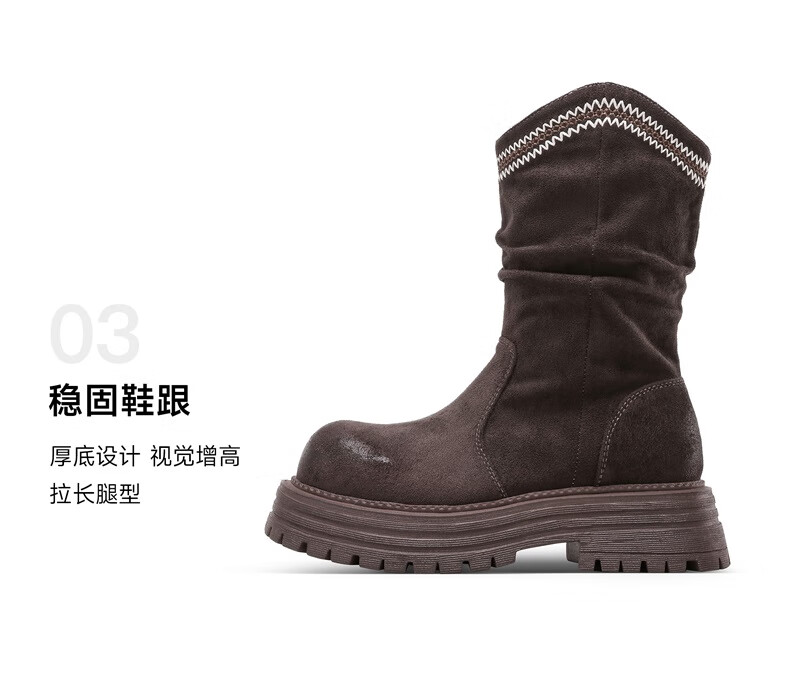 星期六(St&Sat)勃肯短靴女2025新款秋季复古棕色美拉德靴子西部牛仔堆堆靴 卡其色 35 225