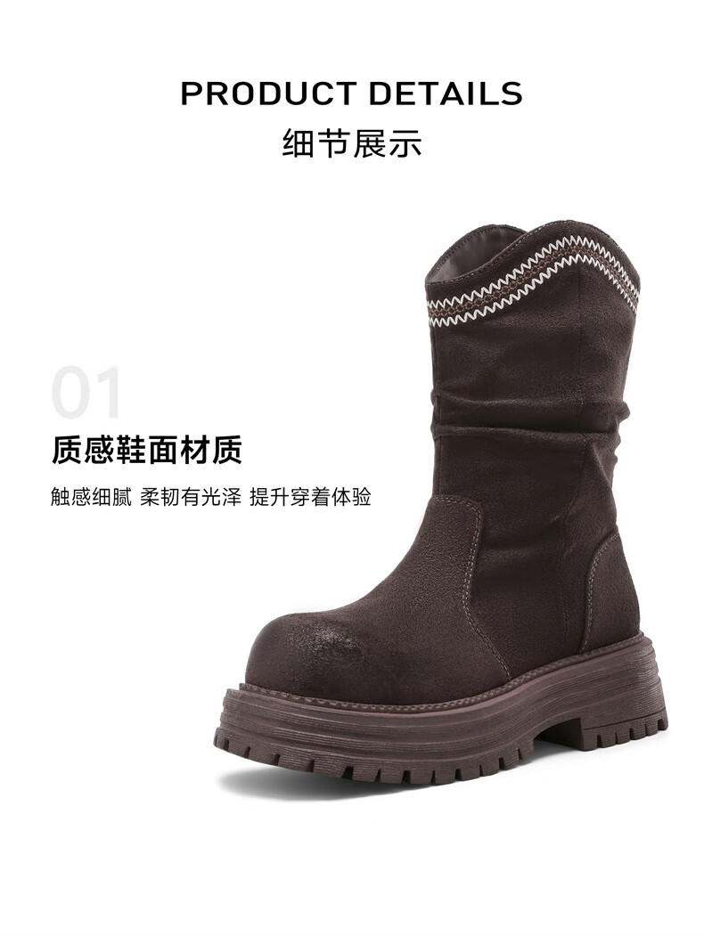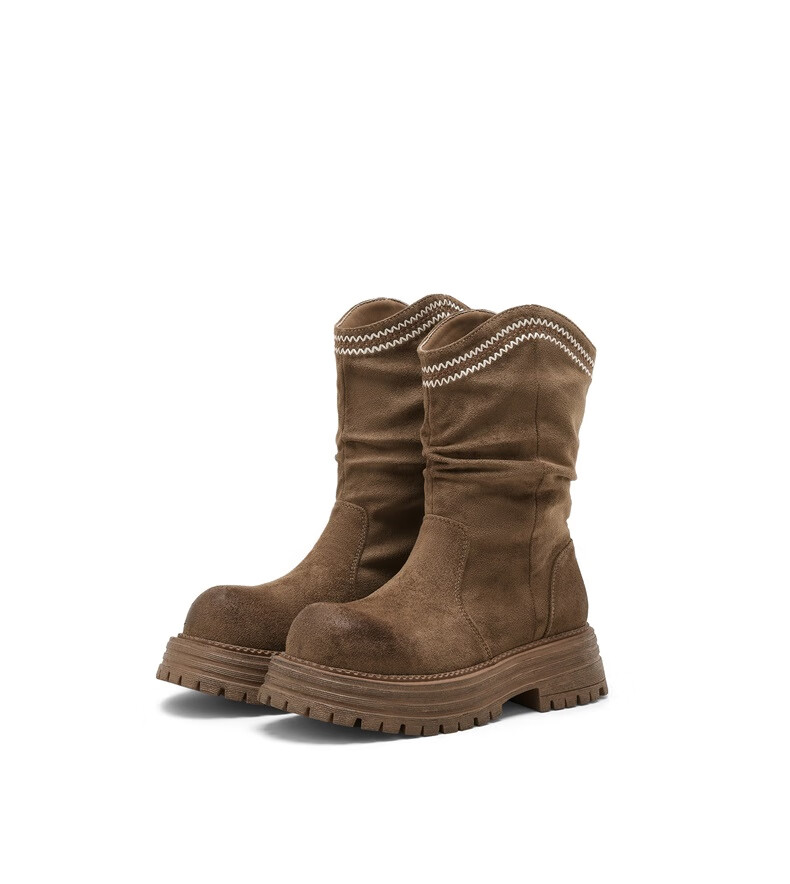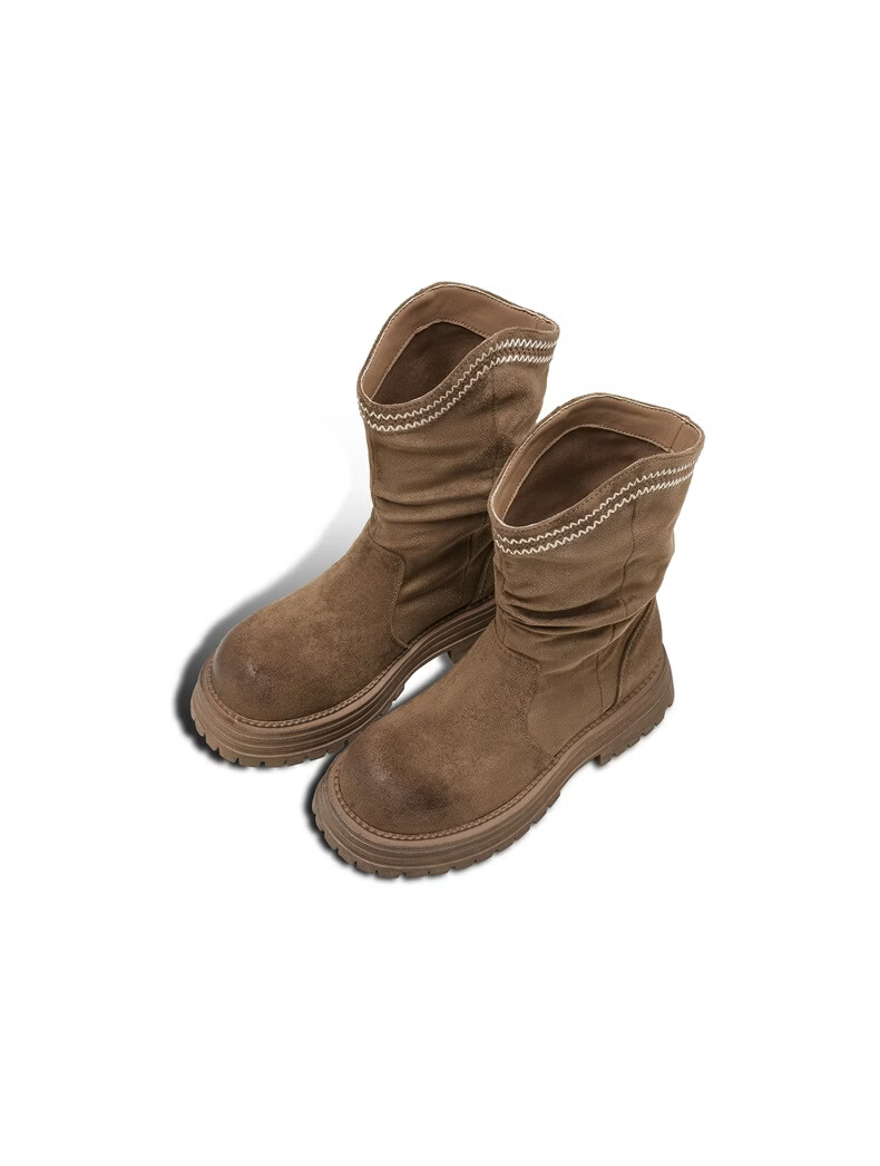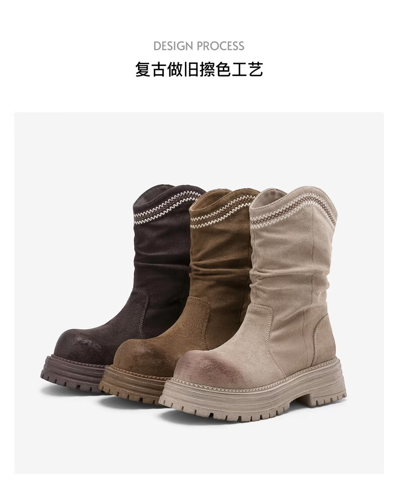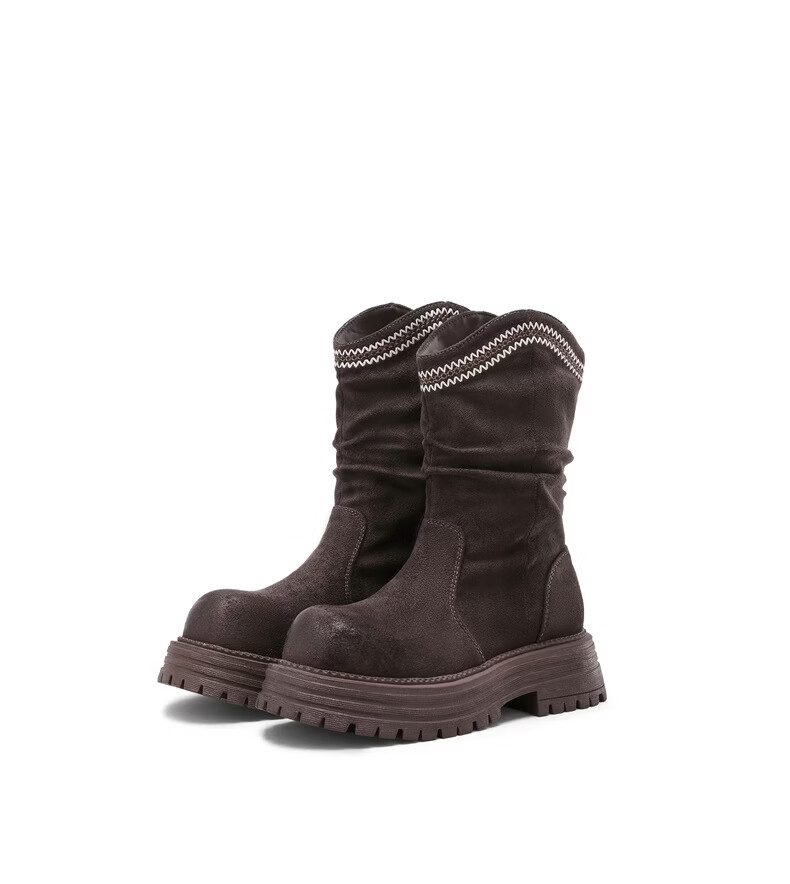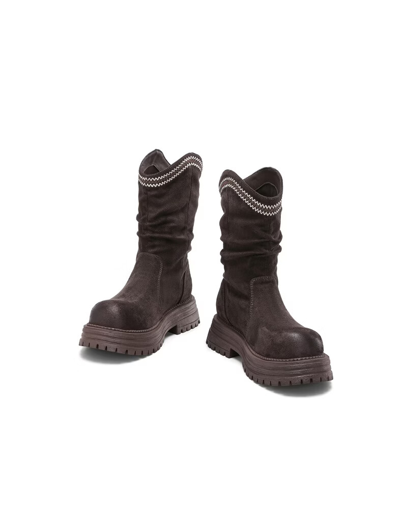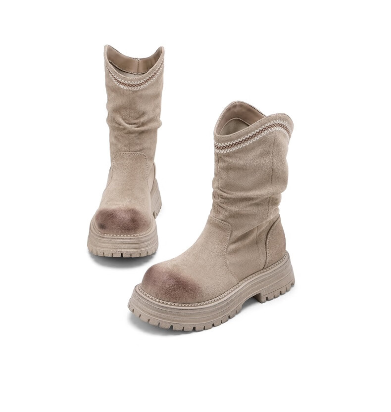 星期六(St&Sat)勃肯短靴女2025新款秋季复古棕色美拉德靴子西部牛仔堆堆靴 卡其色 35 225