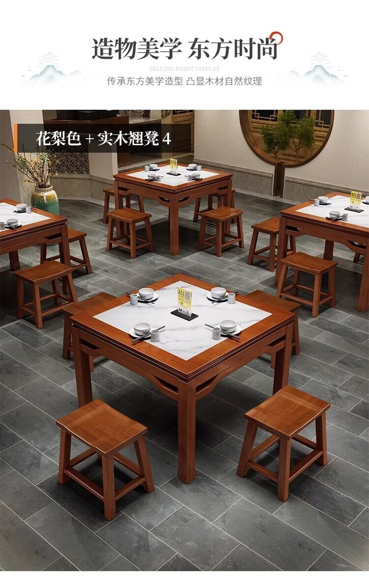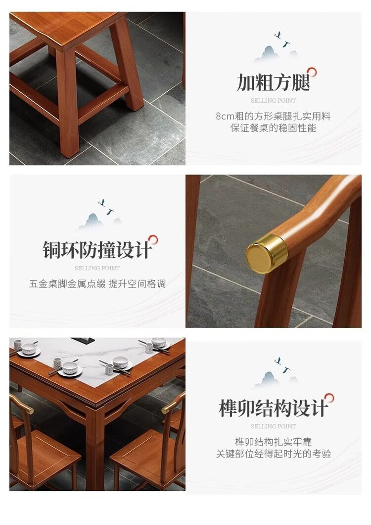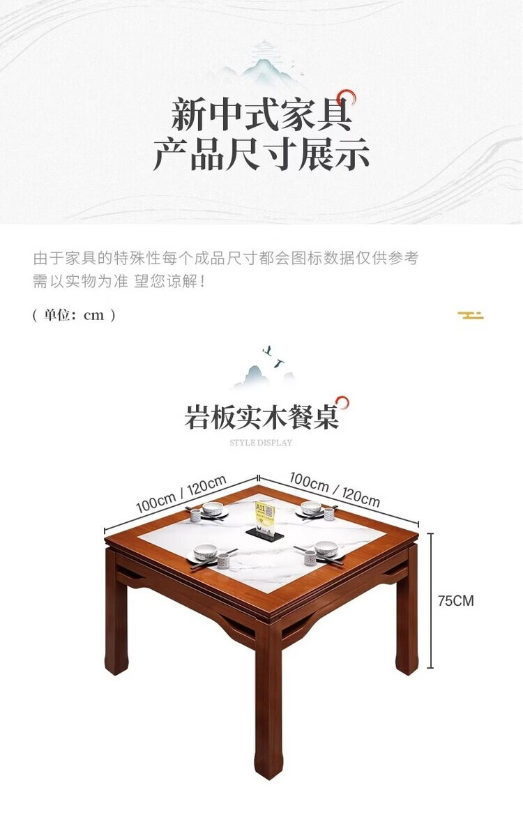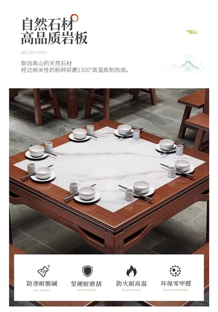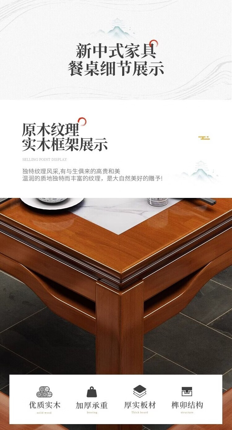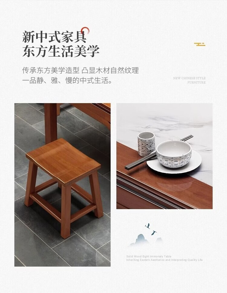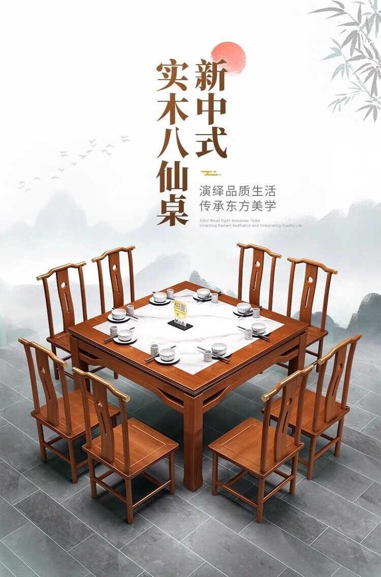 欣慕雅八仙桌实木正方形新中式餐桌饭桌家用餐厅桌椅农村传统岩板方桌子 98cm方桌单桌