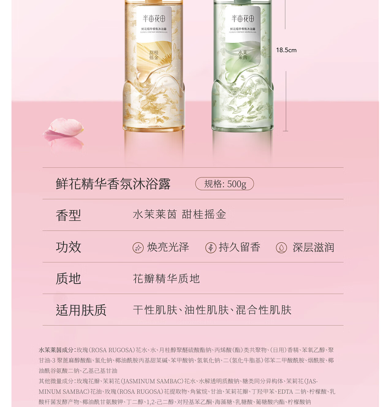 半亩花田田栩宁同款鲜花精华香氛沐浴露焕亮滋润保湿整晚留香体男女士