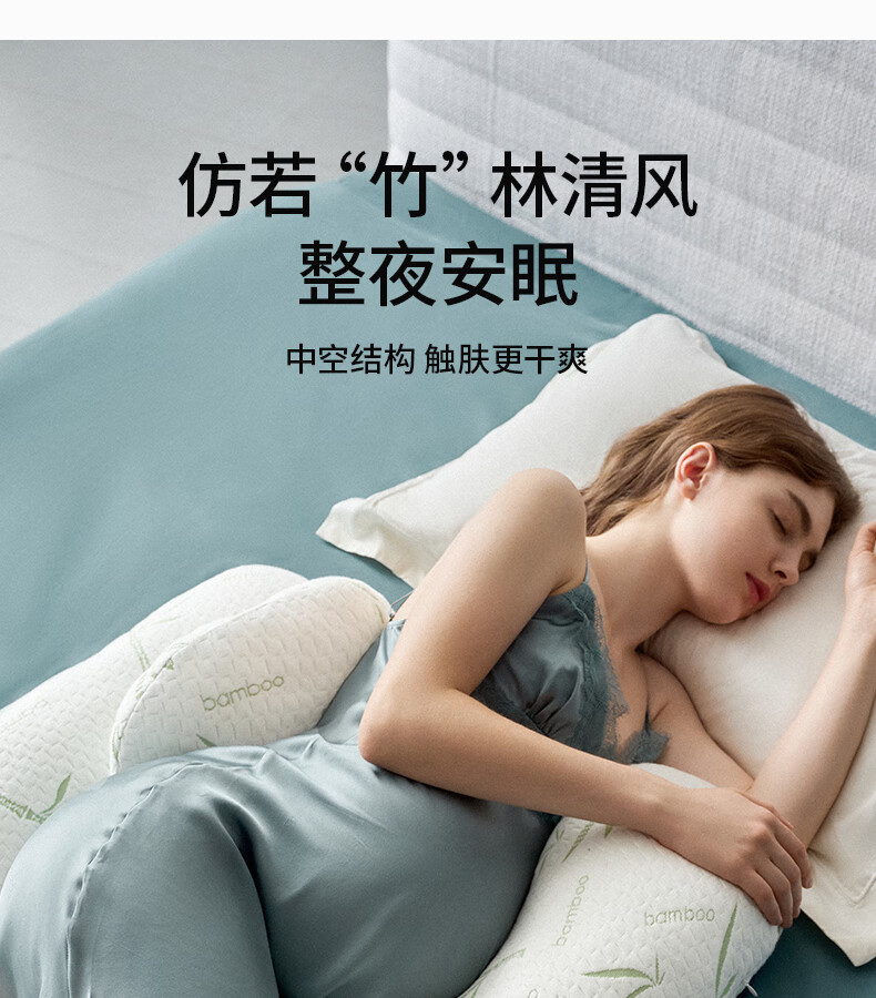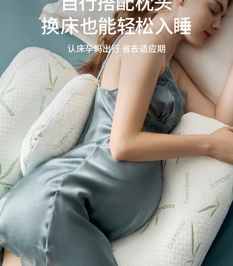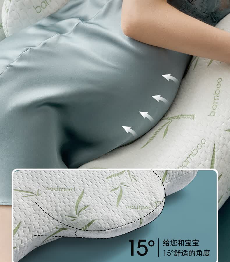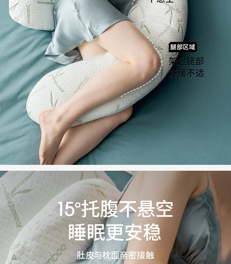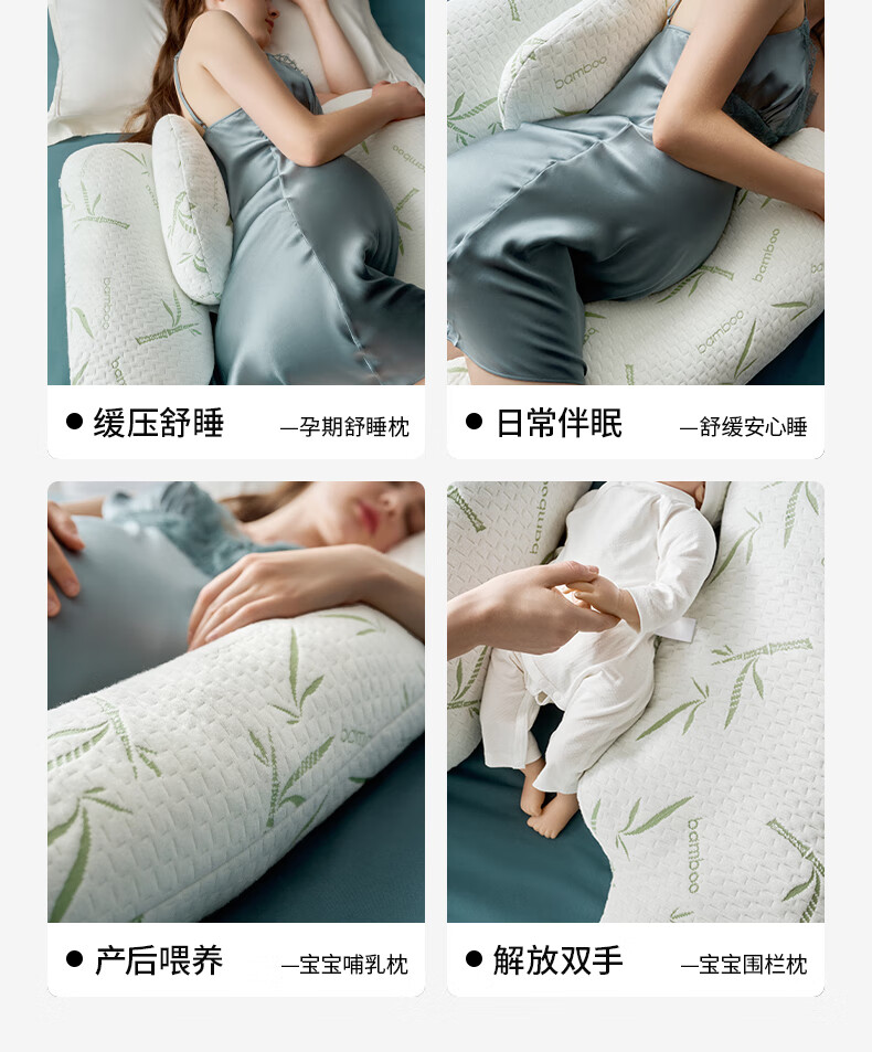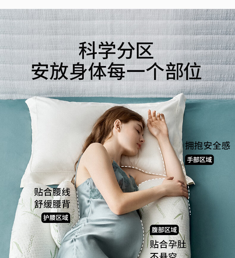 嫚熙(EMXEE)孕妇枕护腰侧睡托腹枕睡觉卧枕孕期专用神器便携式枕头H型竹林白